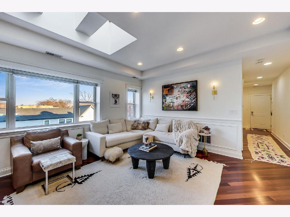 Premier, Pristine, Perfect 2/1 in the heart of Palmer/ Logan Square! Admire the clouds from skylights in your living room as you enjoy this top tier, open concept corner unit. Catch a glimpse of a downtown skyline, walk 3 blocks to the el, skip to dinner or drinks or host and relax in this ideal unit. Meticulously maintained unit with just 1 owner was the first unit to sell in this hot all-brick conversion in 2008. XXL gorgeous granite counter is a great place to pull up and admire the 2020 refresh of this huge kitchen. If you like to cook, there is plenty of room for your tools! Diagonal hardwood floors throughout with high ceilings and coveted skylights make this place airy, open, unique and a place that feels like home. Welcome into a foyer in this preferred tier that offers console and closet space and great flow. Large primary bed with south facing windows and full closet is next to just finished bathroom remodel with brass fixtures and designer finishes. 2nd bed with west window doesnt share a bed wall and has full closet which makes it great for office/ roommate/ nursery/ hobby situations. Huge living room could have a designated dining space, could have many flexible furniture arrangements and should have a content soul appreciating the details. Some favorite touches include: deep window sills, sconce lighting, storm door, Hunter Douglas window treatments, in bathroom laundry that offers hot towels, and outdoor space for grilling and getting some vitamin D. Building offers additional storage closet, bike parking and is working on a community gardening. Professionally managed, well run and well made, the next owner is walking into a creme of the crop unit with new construction around, access to 606, Logan's restaurant row, and access to 2 el stops, 20 minutes to downtown and more. New grocer coming on the corner, walkable boutiques, gyms and everything you need. This move-in ready unit is the best unit in the price point that I have seen for years. Healthy, professionally managed building with $34k in reserves.
