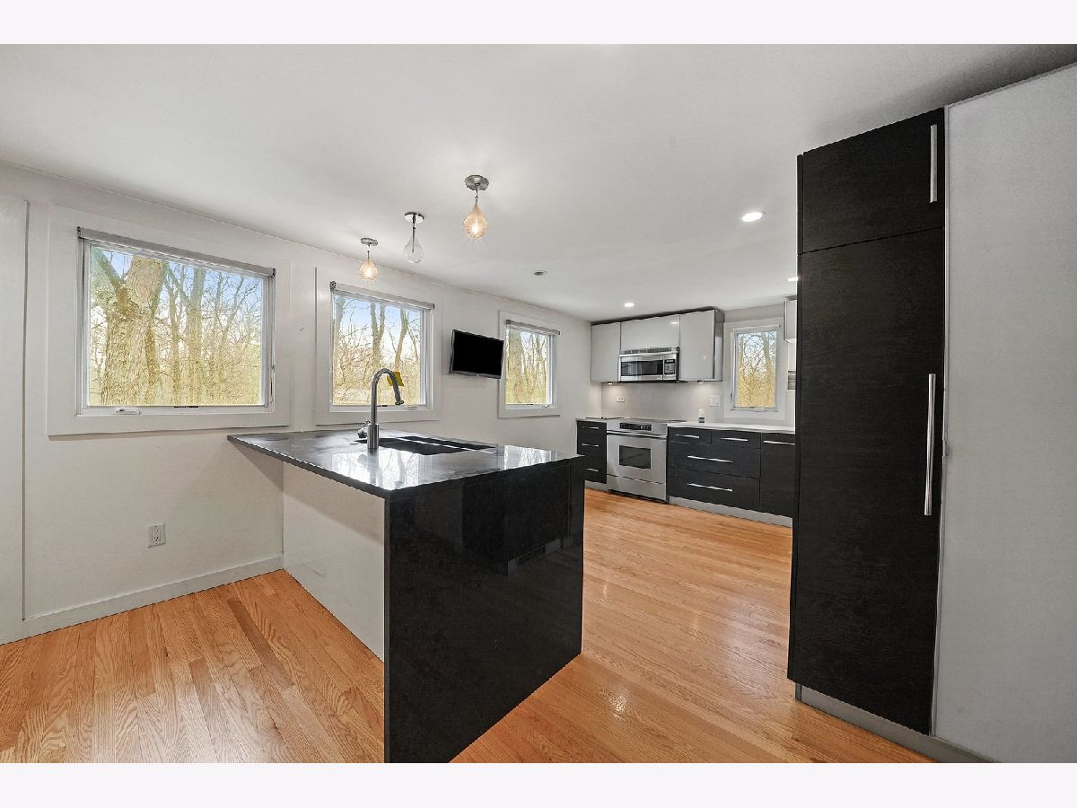 Located in sought after Riverwoods, This modern split level style home offers unprecedented privacy with a majestic wooded setting on just over an acre of land. The home stretch's over 2300 sq feet and features five bedrooms, two modern updated bathrooms, a very state of the art kitchen and a floor plan which is ideal for those who want to entertain but keep their bedrooms and private space secluded from the entertainment/family area of the home! As you enter the home you will appreciate the open layout, hardwood floors line the home along with tons of windows to allow in natural sunlight while still appreciating the tranquil wooded grounds. Both bathrooms offer the high end modern finishes you would expect in a $1M price point, the bedrooms are spacious with hardwood floors, the home also features a 2 car garage and full basement. If privacy, Space, and location are your must haves then this one checks all the boxes. Get inside today to appreciate all this home has to offer!