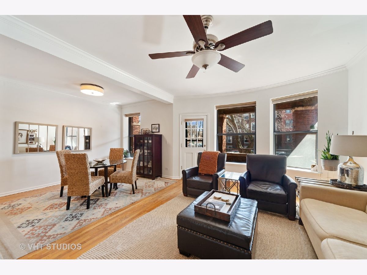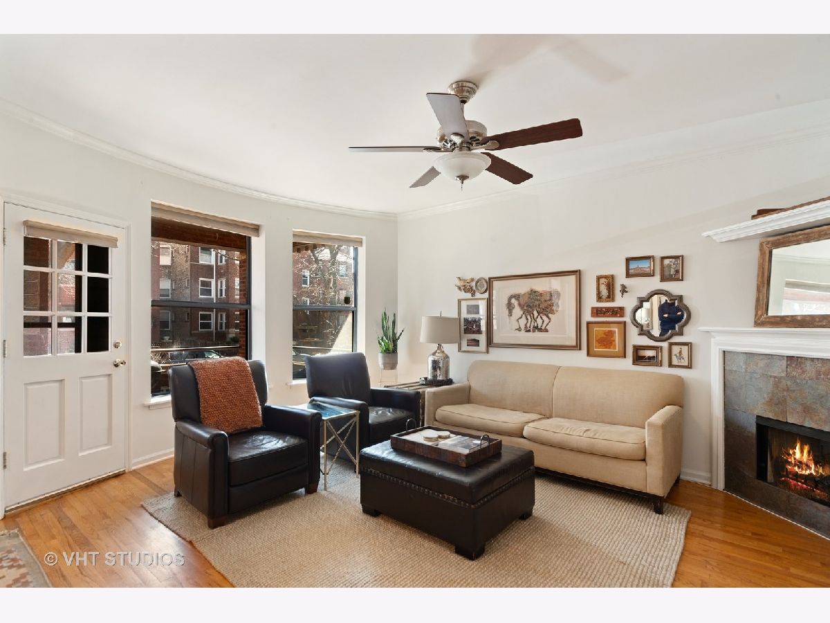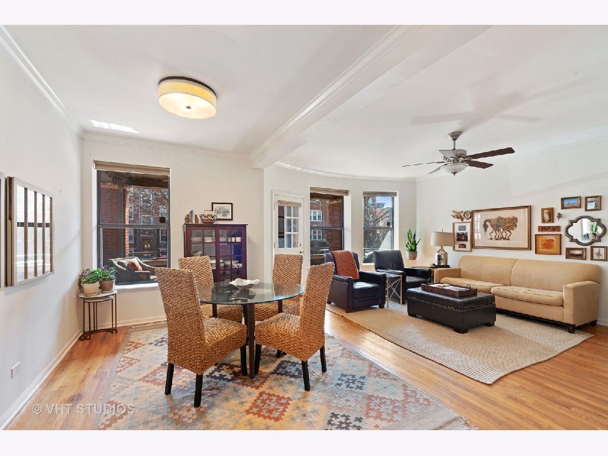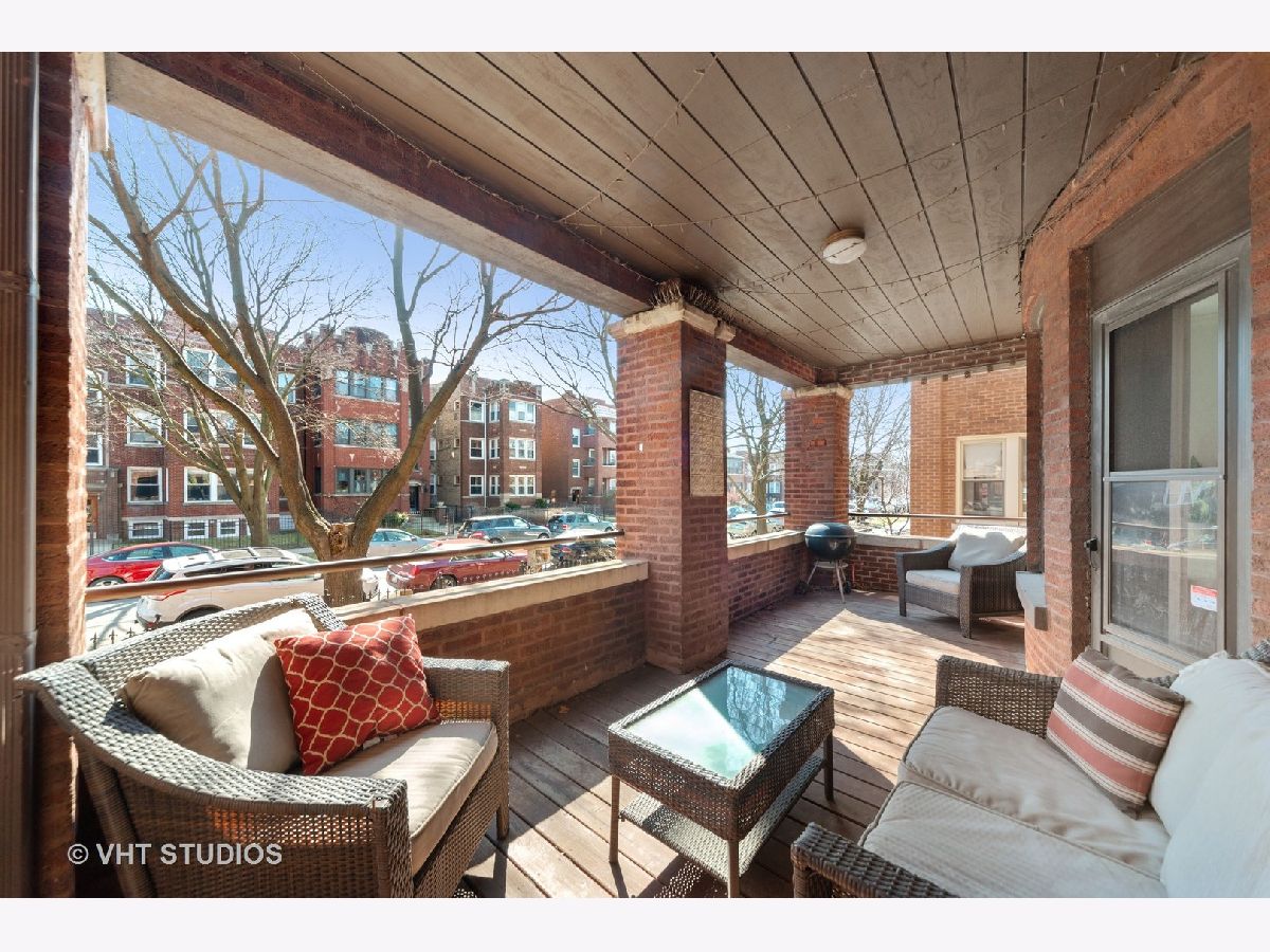 Ideally located on a picturesque street in a beautiful brick building, this renovated 2 bedroom, 1 bath vintage home has much to offer. Expect to be impressed with its sought after floor plan with spacious room sizes, bright exposures & sought after finishes throughout. Updated kitchen with 42" classic white cabinetry, newer stainless steel appliances, quartz countertops & backsplash. Details include a newly renovated bath, walls of windows and hardwood floors throughout. Modern amenities include updated finishes, in unit washer/dryer, and newer central heating & cooling. Outdoor space is outstanding with an enormous south facing deck off of the living areas, as well as a small balcony off of the primary bedroom. Plentiful additional storage completes this home. All of this in the ideal Lincoln Square/Ravenswood Gardens location - just steps from the quaint Rockwell brown line stop, Waters Elementary, retail, nightlife, multiple parks & more.