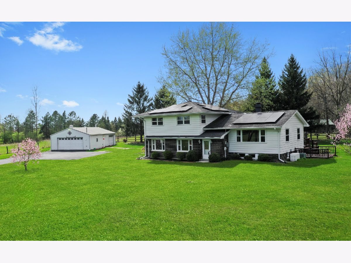 1.5 ACRES - 4 CAR HEATED GARAGE - RELATED LIVING POTENTIAL -ACCESSIBLE - Check out this 4 bedroom 3 full bath home w/ a 4 car tandem HEATED garage on 1.5 acres! Imagine country living in unincorporated Crete, with 21 acres to the north, and 40 acres to the south & your own private 1.5 acre slice of paradise in between! An addition was built in 2011; adding a bonus 4th bedroom on the main level with a fully accessible 3rd bathroom/shower & separate entrance. Featuring both a family room AND a formal living room w/ woodburning fireplace. UPDATED VINYL CLAD WINDOWS throughout in 2015. New water heater in 2020. GRANITE counters in the kitchen; all appliances stay, including the convenient main floor laundry. Basement is unfinished for plenty of storage! Outside, enjoy the privacy with a covered back patio AND a deck w/sliders off the kitchen. HUGE detached 4 car TANDEM HEATED garage; perfect workshop & toy storage!! Solar panels help keep utility costs at bay; transferrable lease; seller currently pays just $95/mo. No water bills here; property on well/septic; softener included; propane on site. Home in good shape; relocating across country; selling strictly AS-IS.