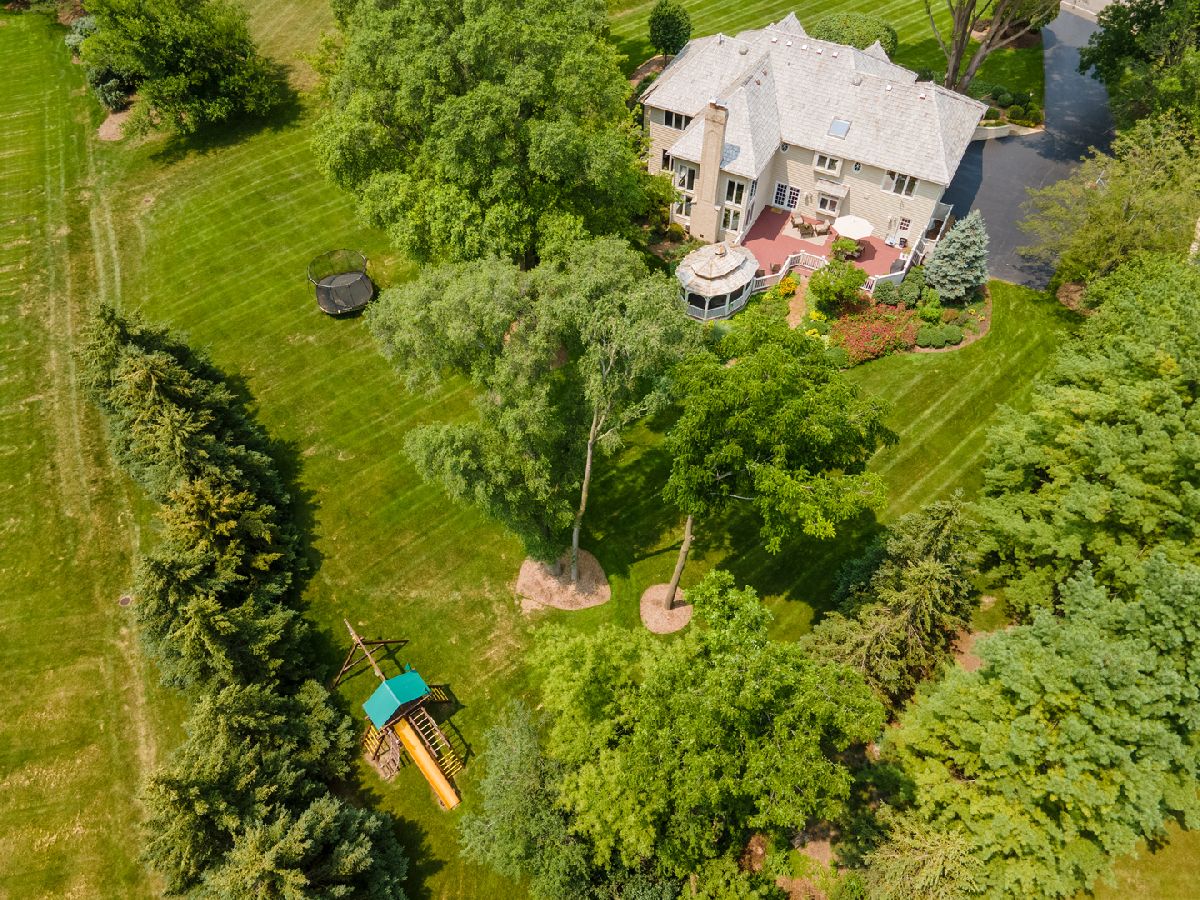 In a time where day-to-day functionality and a level of simplistic convenience plays such a significant role in how and where we live. West Brookside Ridge nails it while being centrally located to the hospital, schools, shopping, entertainment and restaurants. Enjoy this aesthetically pleasing neighborhood and its remarkable sense of community among residents. Upon arrival, it becomes abundantly clear that pride of ownership is not in question, as guests are greeted with a long driveway and extensive landscaping leading the way to a dramatic 2-story foyer, sprawling open floor plan, and gorgeous hardwood floors! Just off the foyer is a vaulted living room with sprawling windows on each side of the room, on the opposing side of the foyer is a remarkable dining room overlooking the stunning garden beds in the front yard while open to an exemplary custom-designed eat-in kitchen. The kitchen is complemented with gorgeous 42" solid custom cabinets, granite, soft close drawers, 5-burner Thermador range, double oven, generous walk-in pantry with custom organizers, sprawling breakfast bar, and access to the newly refinished fenced-in deck and gazebo with outlets and a fan. Open to the kitchen is a magnificent 2-story family room with floor-to-ceiling windows, incredible views of the yard, and a wet bar that makes entertaining an absolute pleasure. The main floor also features a 5th bedroom with incredible views of the yard, a spacious walk-in closet complete with custom organizers, a full bathroom adjacent to the guest bedroom, and a mud/laundry room with generous closets complete with custom organizers. The second floor is equally as impressive with a wide hallway leading to 4 spectacular size bedrooms each with custom organizers in the closets and 2 full bathrooms. The master suite is exceptionally large in size while offering views of the incredible yard, 2 massively separate walk-in closets with custom organizers, and a luxurious spa-like master bathroom. The master bathroom features double vanities, a Jacuzzi tub, and a phenomenal shower! The 3 remaining bedrooms share the full hall bathroom designed to accommodate 2 people getting ready in separate private spaces with the double vanity sectioned off from the washroom and shower. Fully finished lower level with 18" porcelain tile leading the way to an office that is separated by French doors from the recreational room and media area that is complete with a stunning fireplace accented with custom built-in bookshelves and a wet bar. The lower level also offers a gym and full med spa bathroom with steam shower, sauna and built-in cubbies for guest towels. Plenty of storage! 3.5 car attached garage all trimmed out and finished with epoxy floors, protective shield on walls for hosing down cars and garage along with plenty of windows. Around back is an exclusive retreat with natural privacy created by immaculate landscaping and mature trees on 1.1 acres. Decompress on the newly refinished fenced-in deck and gazebo or entertain guests in the yard with a fire pit, swing set, or any other activities desired. Minutes to Good Shepherd Hospital, Stonehenge Golf Club, Flint Creek Nature Preserve, Trader Joe's, Target, downtown Barrington, Metra station, restaurants, and shopping! New amenities are as follows: Well pump was replaced in 2019, pressure tank new as of 2019, Iron removal system replaced in 2018, chlorinator replaced in 2018, both water heaters were replaced in 2017, 2 new A/C units in 2019, Furnace heat exchanger replaced in 2019, new sump pump in 2021, New battery backup for the sump pump in 2017, New septic tank lift in 2017, Septic maintenance ( every 2 years)-most recently in 2020, New Gorilla Raskin gym floors in 2017, various windows replaced in 2019 and 2020, most of the home was painted in 2018 and 2019, garage doors were replaced in 2018, the roof was serviced in 2020, washer was replaced in 2020 and whole house Generac Generator serviced in 2020.