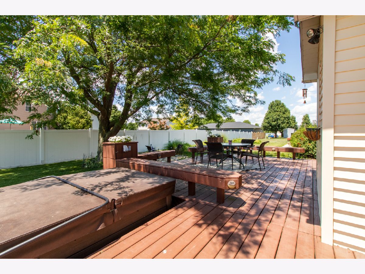 Beautifully decorated and immaculate, this custom ranch home has a neutral color palette with lots of hardwood flooring! Oversized eat-in kitchen features white cabinets, subway tile backsplash and bay window with sliding glass doors opening out onto a beautiful deck with built-in seating and planters. Enjoy your flagstone patio with firepit on one side and the perfect place for a hot tub on the other (the one pictured is negotiable!). First floor master has large walk in shower and walk - in closet. Huge basement gives you endless possibilities for future expansion. Backs up to Fox Creek. Truly a move-in ready gem!