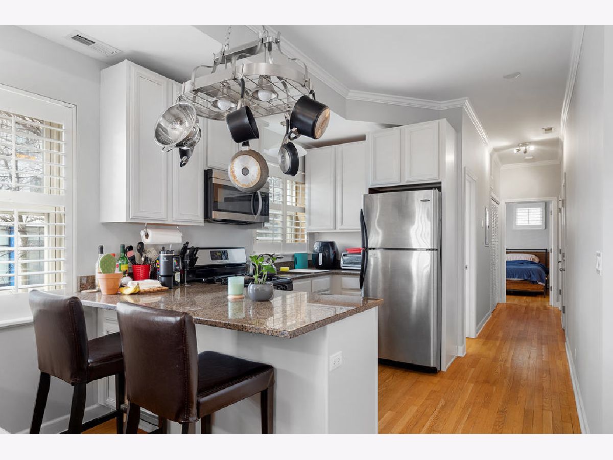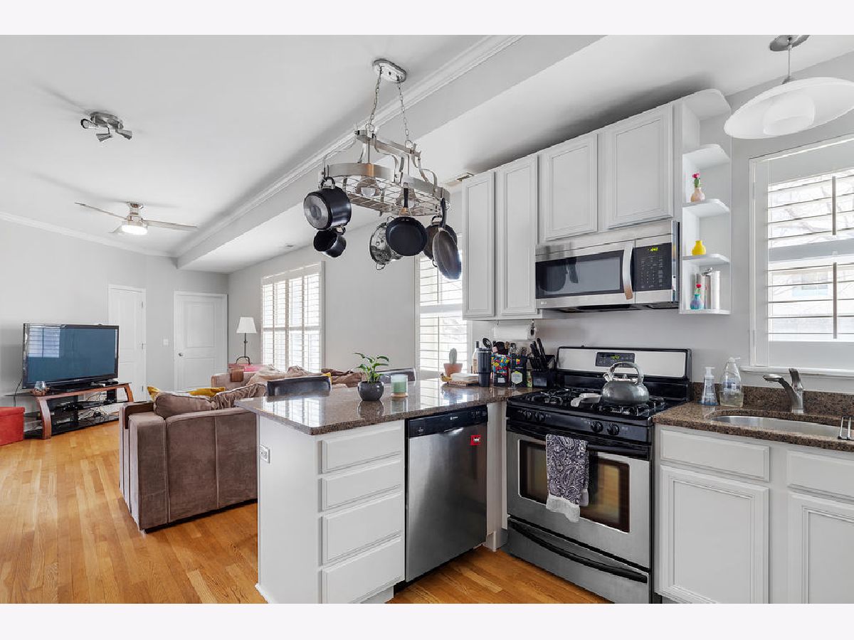 Enjoy the best that Logan Square has to offer in this highly sought after 3 bed, 2 bath home in an unbeatable location! Walk in to enjoy a uniquely situated home that is absolutely filled with natural light and an open layout perfect for entertaining. Your guests will be impressed with the crown molding and extra-tall windows. The kitchen features stainless steel appliances, granite countertops and breakfast bar. Sleep soundly in the king-sized master bedroom with en-suite master bath which includes a double sink vanity. Two additional queen-sized bedrooms are perfect for guests or home office. Additional bath is located near the kitchen and adds privacy for your guests. Additional features include hardwood floors throughout, in-unit washer/dryer and separate back entrance. Steps away from the El train, shopping, dining, nightlife and Logan Square!