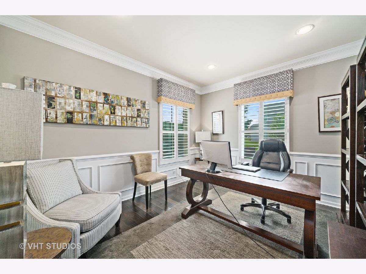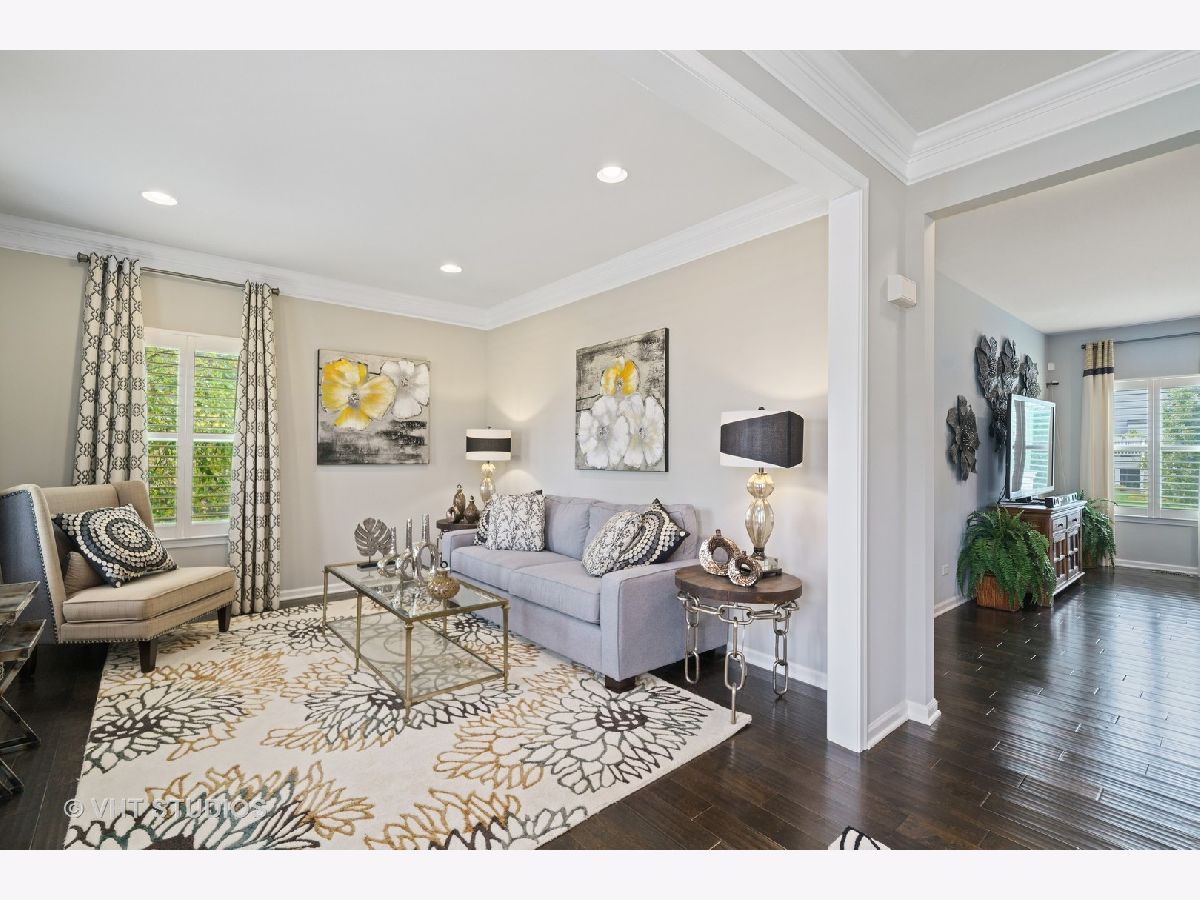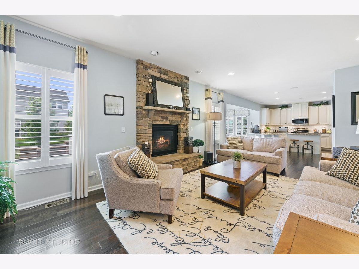 Introducing the Verona... an incredible floor plan that's been upgraded to perfection. Beautiful dark hardwood floors extend throughout the main level, while wainscoting in the dining room and study add just the right amount of elegance. In the family room, an impressive stone fireplace warms the space and is open to the kitchen and morning room. Natural sunlight from the morning room filters into the large chef's kitchen with dual island/breakfast bars, upgraded cabinetry, and a walk-in pantry. If you need multiple family spaces, this home has a jaw dropping 2nd floor playroom or teen retreat with custom built-ins, beadboard walls, and crown molding. The finished basement has beautiful millwork that wraps the walls, and is a unique feature that defines the space. The basement is well designed with room to hang out or watch a movie, a gaming area (games are included) plus an incredible wet bar with mini fridge that's perfect for entertaining. Also in the finished basement, there is a full bathroom and space for extra storage or an exercise room. As you make your way upstairs, the bedrooms are ready for the kids, all are good sized rooms and professionally decorated with walk-in closets. A well appointed owner's suite is what you'd expect in this home, and the Verona floor plan delivers with room to curl up in your favorite chair and a large walk-in closet. The private bathroom has a counter height vanity with dual sinks, relaxing soaker tub, separate shower, and water closet. Convenient 2nd floor laundry room has extra storage and a lovely oval window that brightens the space. Being a former builder's model, this home has the upgrades and details to impress. Features include; California closet system in the owner's suite, crown molding, recessed lights, built-in sound system, plantation shutters, custom coat nook, sprinkler system and 3 car garage with service door. A newer brick paver patio expands the outdoor entertainment space and is a nice addition to the large deck. Highly rated Elementary and Middle Schools are just minutes away in this family friendly subdivision. Grande Park is a clubhouse and pool community with various parks, trails, sledding hills, basketball & tennis courts. This home is simply stunning, with lots of extra features and great curb appeal... HURRY!