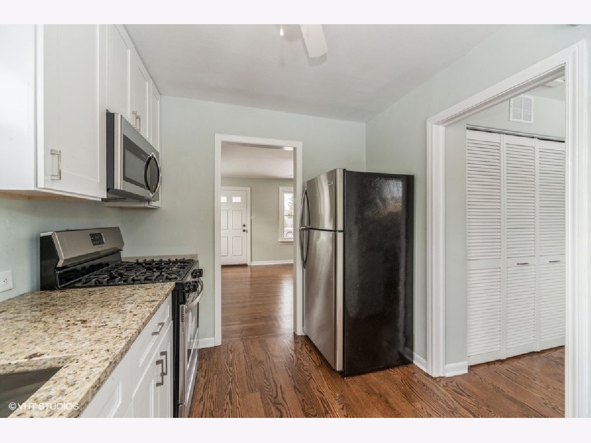 Beautifully remodeled and updated solid brick ranch on large lot in fantastic location! Bright and sunny living room with newly finished hardwood floors! Kitchen features brand new 42" cabinets, granite countertops, all new stainless steel appliances, new hardwood floor and table space with lovely backyard view. Laundry room has new hardwood floor, utility sink plus extra cabinets for storage with granite countertop. Bedrooms have newly finished hardwood floors!! New 6 panel interior doors with new handles and hardware. Whole house freshly painted in neutral tones, updated lighting throughout plus updated bath. Windows, front and back exterior doors replaced in 2009. New gutters in 2020. Newly sealed driveway leads to one car garage. Large patio and fenced yard on huge back yard! Excellent location, close to schools, parks, shopping, dining, expressways, Blue Line, Metra and O'Hare airport. Move in ready!!