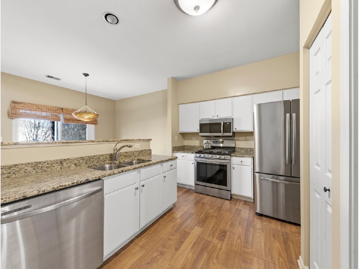 Rarely available ~ light & bright 2bd, 2.1, bath, 2 car garage home in sought after Kingspointe! Superb Naperville location near I-88 & RT 59, Metra, shopping, dining and award winning District 204 schools. Step inside to the sun-filled spacious home with great flow! Updated kitchen with white cabinets, stainless appliances and granite countertops. Master bedroom boasts volume ceilings, dual closets and private bath. Fabulous back yard with concrete patio backing to green space, trees and nearby pond. A perfect 10!