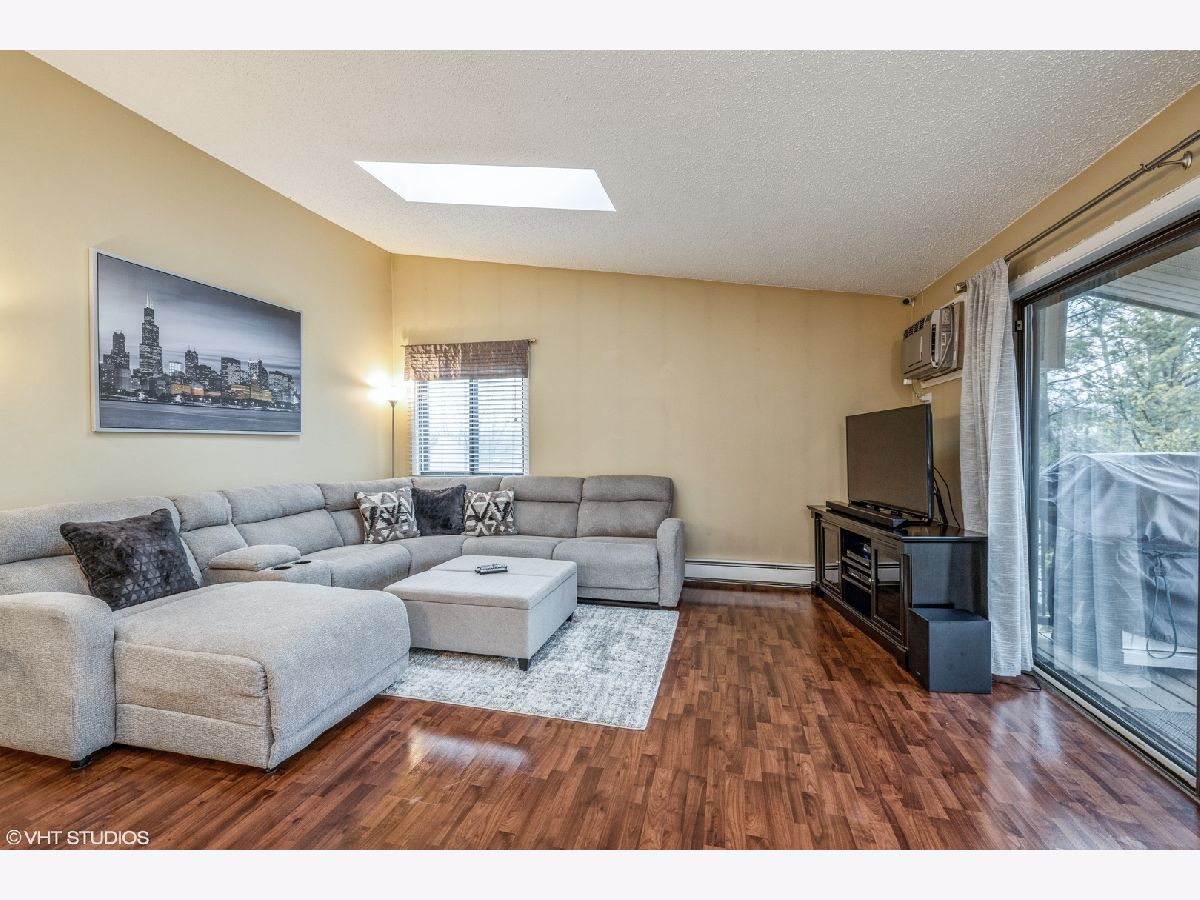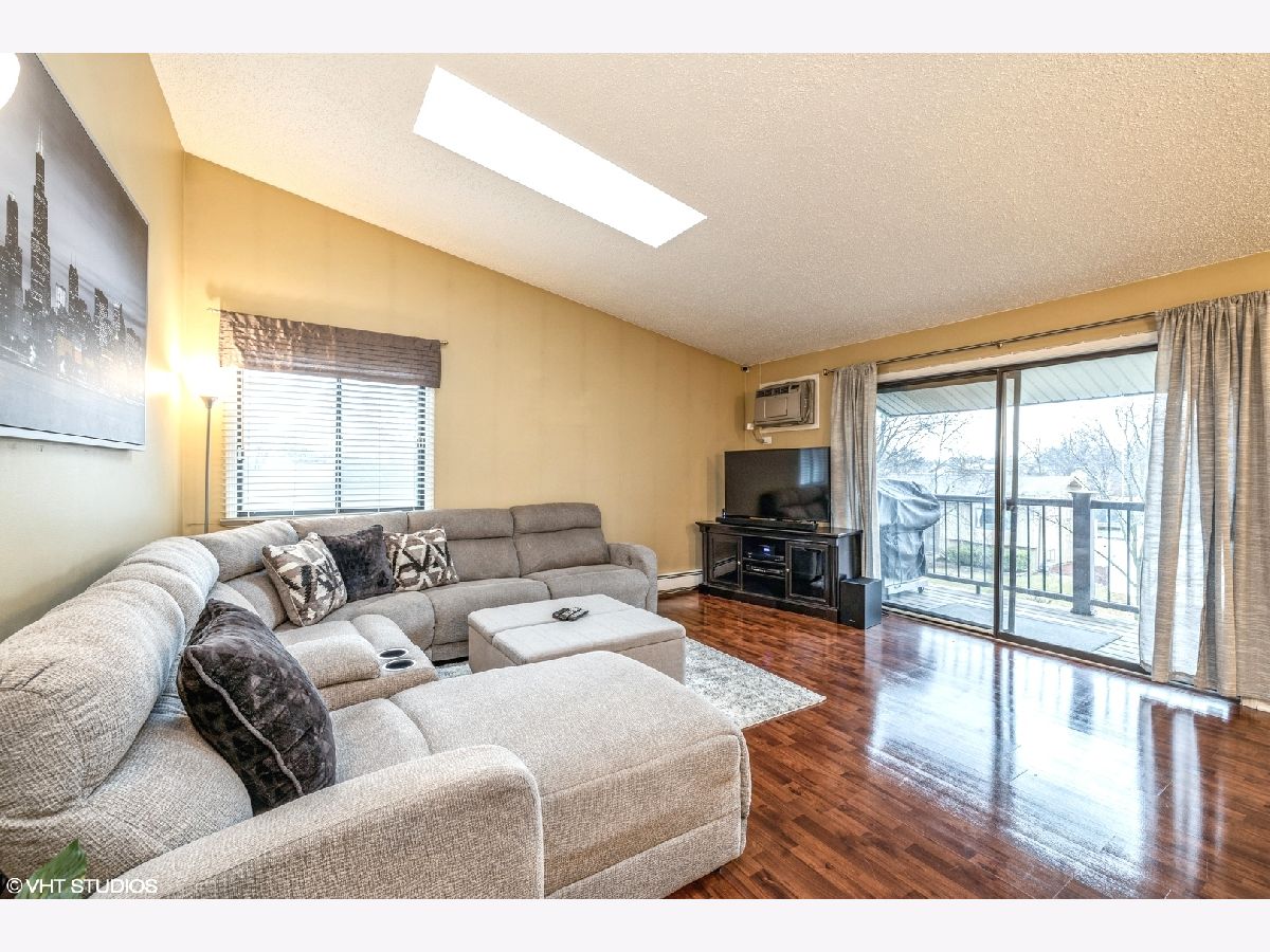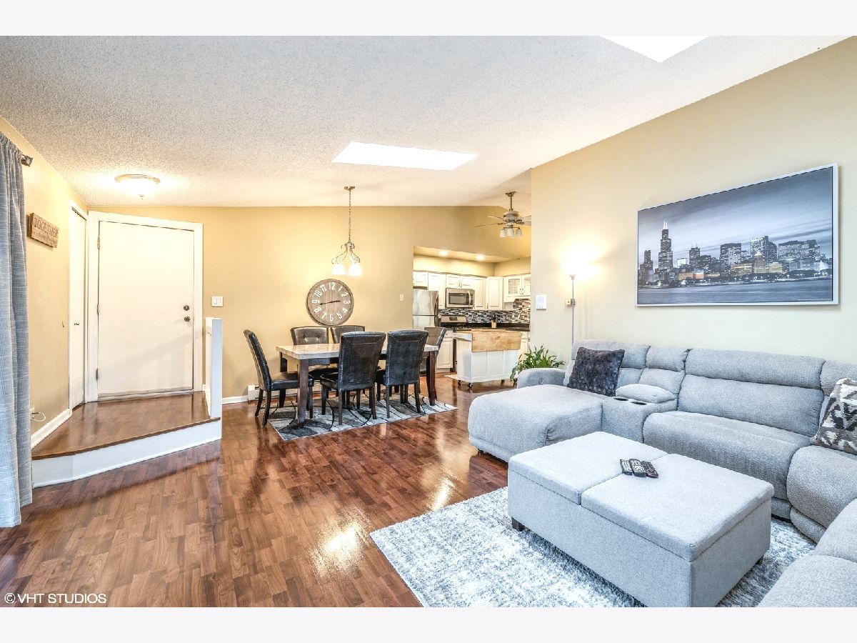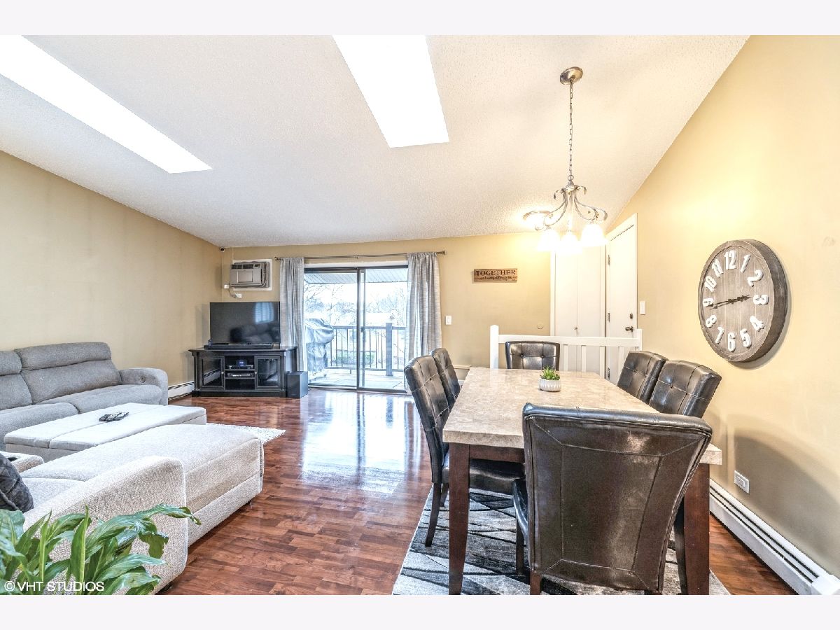Beautiful 2 Bedroom, 1.5 Bath Condo with in unit laundry and garage!!! Light and bright top floor with ample natural light vaulted ceilings. Extra deep Garage plus one parking spot. Updated white kitchen with movable island, skylights, beautiful wood laminate flooring. Master bedroom with large walk in closet. Enjoy evenings on the private balcony, or entertain inside as well. Close to shopping, commuter bus service and expressways. Association dues include gas, heat, water & garbage. Rentals allowed, pets allowed. Not FHA approved.