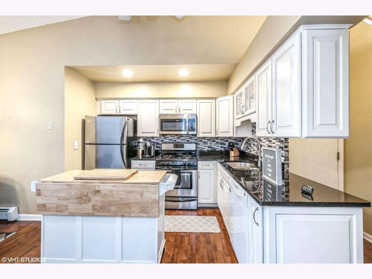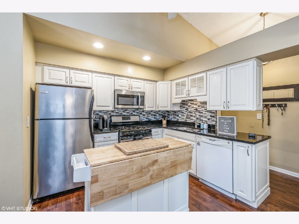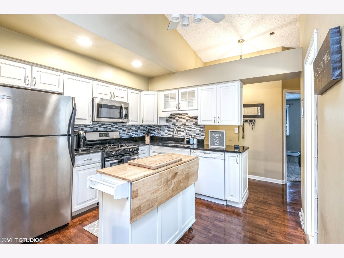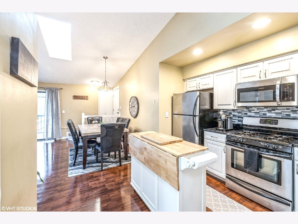 Beautiful 2 Bedroom, 1.5 Bath Condo with in unit laundry and garage!!! Light and bright top floor with ample natural light vaulted ceilings. Extra deep Garage plus one parking spot. Updated white kitchen with movable island, skylights, beautiful wood laminate flooring. Master bedroom with large walk in closet. Enjoy evenings on the private balcony, or entertain inside as well. Close to shopping, commuter bus service and expressways. Association dues include gas, heat, water & garbage. Rentals allowed, pets allowed. Not FHA approved.