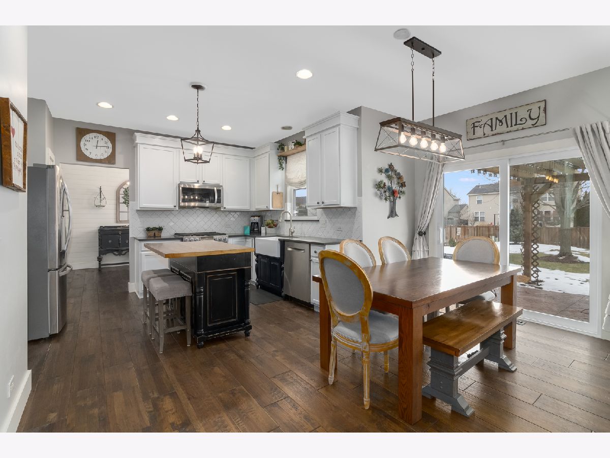 Amazing Amber Fields home that has all the bells & whistles. These homeowners have thought of every detail and it shows. The updated Pella front door opens into the 2 story foyer with custom 100 year old barnwood wall. New 2018 hardwood floors lead you throughout the 1st floor that also features newly installed 5 inch white trim & window molding. 2018 kitchen refresh includes Caesarstone counters, white refinished cabinets, new lighting, custom island with butcher block & beautiful farmhouse sink. All newer stainless steel kitchen appliances stay with the home. The kitchen also has a large eat in space that can accommodate a table for 6, updated lighting and a new 2019 Pella sliding glass door leading to the patio. The family room features large windows overlooking the beautifully landscaped backyard and brick front, wood burning fireplace. An updated powder room, spacious living room and dining room with shiplap finishes & updated lighting complete the first floor. The master bedroom has a walk in closet, ceiling fan with light and a barn door opening to the brand new master bathroom. This is the bathroom you have dreamed about. From the heated floors, to the double sink & vanity with storage, to the updated lighting to the tiled walk in shower...it is all amazing!! Three more generously sized spare bedrooms and convenient laundry room finish the 2nd floor. The basement has an unfinished storage room, and a finished space that is perfect for a kids play area, rec room or additional office space with built in shelving. Carpet is brand new (2020) in the basement. You'll enjoy many summer nights on the covered stamped concrete patio in the fenced in backyard. This meticulously maintained yard is low maintence yard with its in-ground irrigation system. New roof, furnace, and A/C all new as of 2017!! This wonderful home is located near neighborhood ponds, walking trails, & children's playground. Shopping, restaurants & the highly rated Oswego district schools are all nearby. **MULTIPLE OFFERS RECEIVED. HIGHEST & BEST DUE AT THE END OF DAY THURSDAY JANUARY 28TH, 2021**