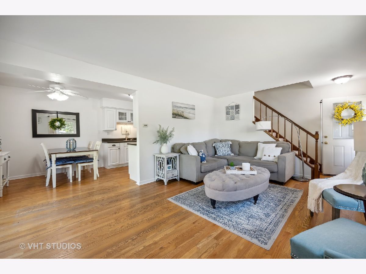 Looking for a townhome with a single family home feel! This is it! Desirable white kitchen and oak hardwood floors on entire 1st level. Sliding glass doors off eating area to over sized private deck (resealed in 2020). Renovated 1st floor powder room. White painted trim throughout. Master bedroom has walk-in closet. Finished basement with storage/work room. So much storage between unfinished area in basement, garage, and bedroom closets. Views of mature trees from every room. Attached 1 car garage plus 1 car parking space in driveway. Carpeting (2022) furnace (2016), water heater (2016), carpeting, newer sliding glass doors and newer windows! In-unit laundry. So many community amenities: Highpoint pool, Green Trails renowned 26 miles of bike/walking paths, tennis courts and 12 parks~Walk to Kennedy Jr High & Steeple Run Grade School~Close to I-88, I-355, Downtown Naperville, restaurants/shopping & train station~Award winning Naperville School District 203! Must see! AS-IS sale.