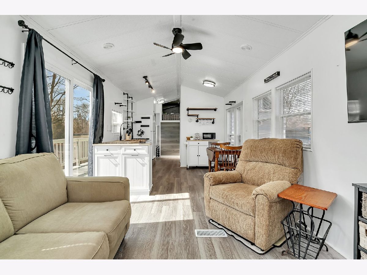 SO MANY UPDATES! Such a great location. Your own private retreat on Hawk Lake, must see location in person to fully enjoy. Relax on your deck or concrete patio overlooking a tree line view across the water, which makes for a very private setting. Such an amazing location! 159x51x151x50 oversized lot. Fully furnished with a coastal farmhouse feel. 2023 remodeled kitchen with new appliances, offers plenty of cabinets, 2023 remodeled bath with walk-in shower, 2023 flooring, 2023 light fixtures, 2022 A/C, 2022 windows (including sliding glass door) & 2020 roof. Large fenced-in-yard (2022) with Trex boat dock, perfect for those family gatherings & BBQ's. Oversized parking area, plenty of parking for all of your guests. Enjoy incredible fishing (spring fed stocked lakes), boating, swimming, kayaking, in this gated community w/club house, pool, beach, volleyball, basketball, miles of nature trails & much more. Make this perfect escape your weekend retreat or year-round residence! Less than an hour from Chicago & just minutes off I-55. Call for your showing today. THIS ONE WILL NOT LAST!