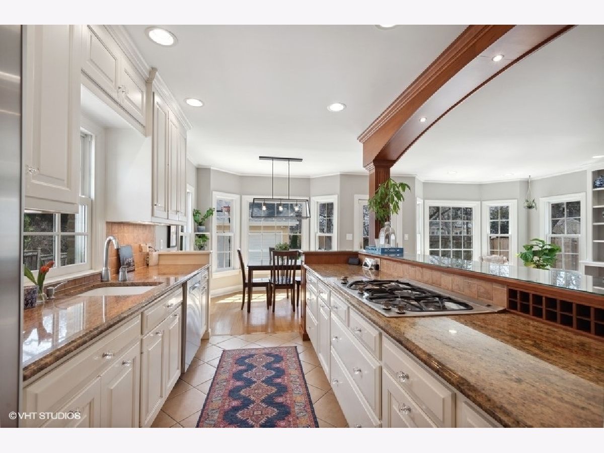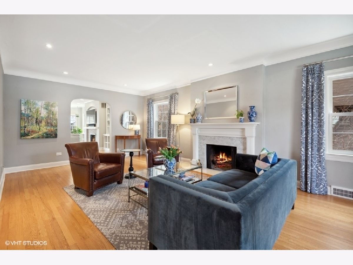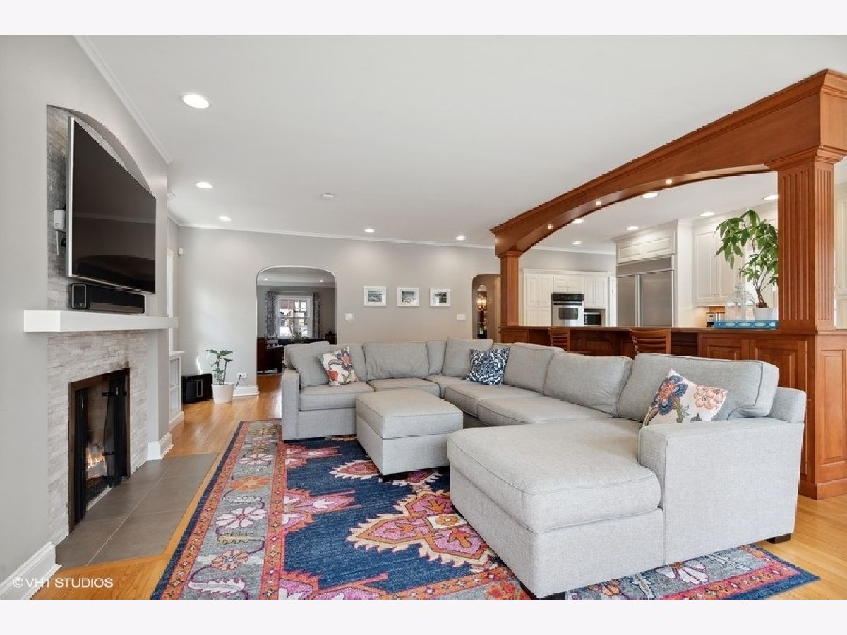 Fabulous updated and expanded brick Colonial on a quiet street with a fantastic floor plan! Off the foyer entry you'll find the large living room with wood burning fireplace and big windows bringing in lots of warm natural light plus the separate formal dining room. Sitting at the rear of the home is the highly desirable kitchen + family room open combo. The chef's kitchen has white cabinets and granite counter tops, stainless steel appliances a double oven and a breakfast bar. The casual dining area is open to the kitchen and overlooks the lush yard. The family room is loaded with light and features a gas fireplace plus views of the yard. A mudroom entry off the back door and a full bathroom completes the 1st floor. On the 2nd floor there are 3 guest bedrooms, all good size rooms with great closet storage, a hall bath and the gorgeous primary suite with fireplace #3 (gas) massive walk-in closet, a bathroom with double sink, tub and separate shower plus enough space in the bedroom for your reading lounge or office! The finished basement has a TV/Rec room area and a space for your exercise equipment. Thoughtful expansion & renovation has maintained the original architectural details with cove ceilings, arched doorways, deep baseboards, hardwood floors and more. Zoned central air, pull down stairs to huge attic storage space, surprisingly large yard nicely landscaped and a 2-car garage. Near parks and Lincolnwood School. Nothing to do here but move in and LOVE IT!