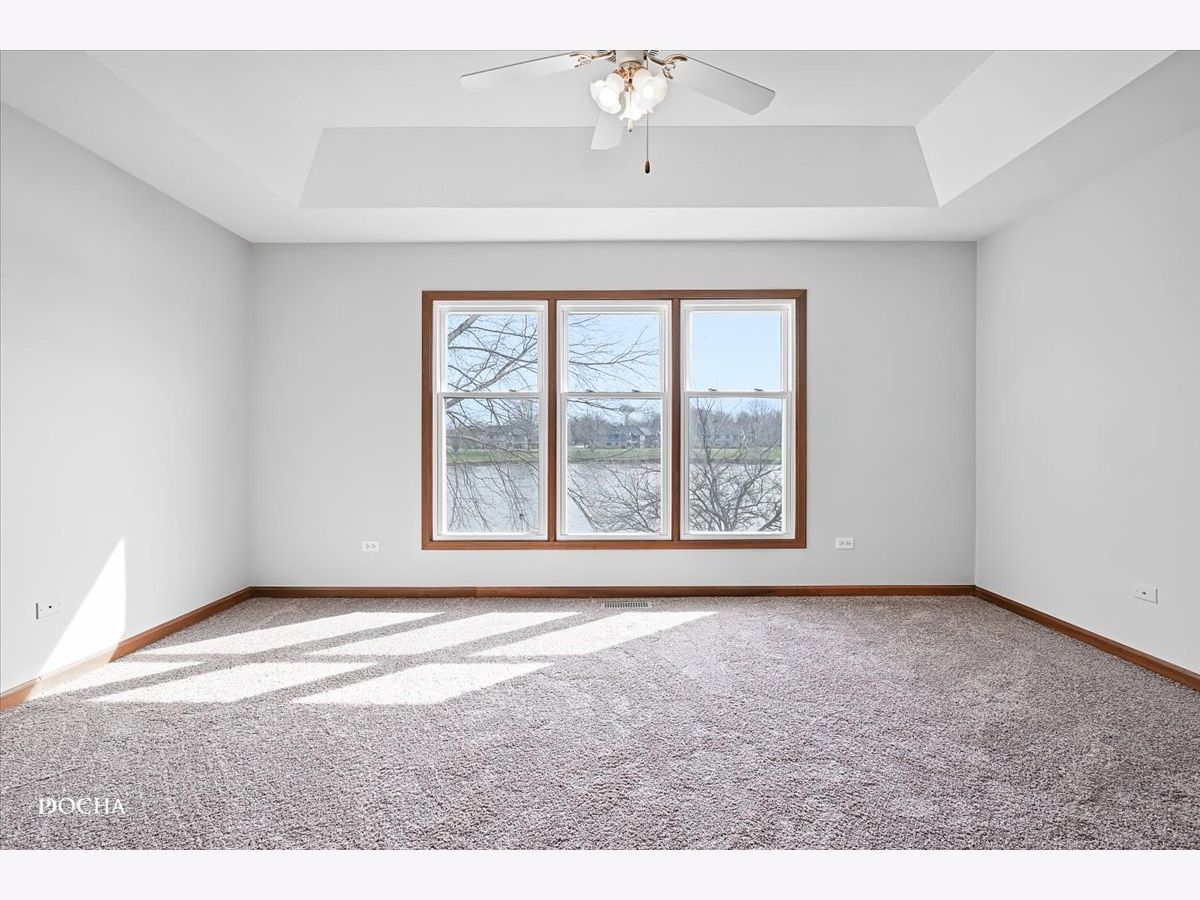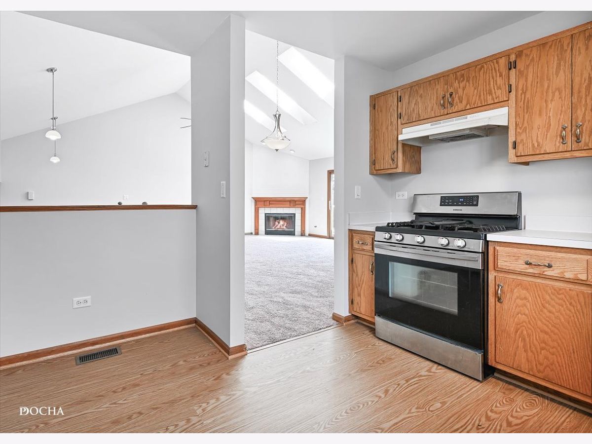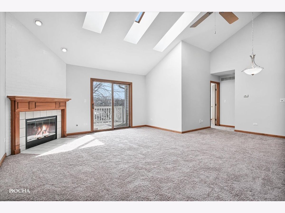 Lake view living! Freshly painted 3 bedroom, 2.5 bath open concept end unit townhome with gorgeous lake views in the "Townhomes on the Lake" subdivision. Living room with new carpet offers cozy fireplace, vaulted ceilings, and sky lights for tons of natural light. Freshly painted deck just off of family room offers serene lake views while enjoying your morning coffee as the sun rises. Open kitchen with countertop space aplenty has dining area, oven/range with new range hood! Primary bedroom offers incredible views of the lake and features ensuite with spacious full bath and walk in closet on the main level. Lower level features family room and covered deck with beautiful lake views, second and third bedrooms, full bath, and laundry. Additional lower level basement storage as well. Two car attached garage. Furnace 2023, upstairs carpet 2024, fresh paint 2024, kitchen flooring 2024, windows 2019. Desirable Plainfield School District 202. Steps from Joliet Mall, Rt 30 and I-55!