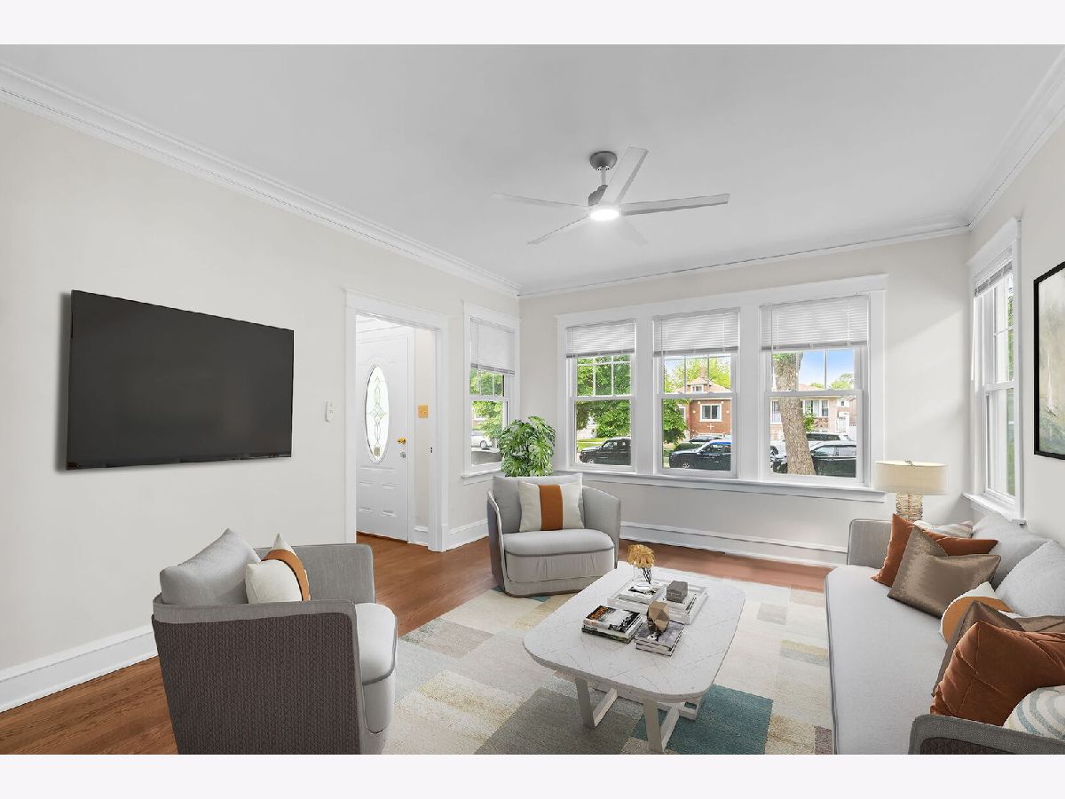 Welcome to this beautifully maintained and recently renovated home featuring a total of 5 bedrooms-3 on the main level and 2 additional rooms in the attic, ideal for extra bedrooms, office space, or a play area. The main level offers a spacious living room, formal dining room, and a bright, updated kitchen with new white cabinets, quartz countertops, and a cozy island perfect for casual meals. The home also includes 2 full bathrooms, central air conditioning, and a large unfinished basement with endless potential for extra living space or storage. Enjoy outdoor living with a spacious backyard-perfect for summer BBQs, gardening, or making lasting family memories. Prime location close to schools, parks, and shopping centers in the desirable Montclare neighborhood. This move-in ready home offers comfort, space, and convenience-schedule your private showing today!