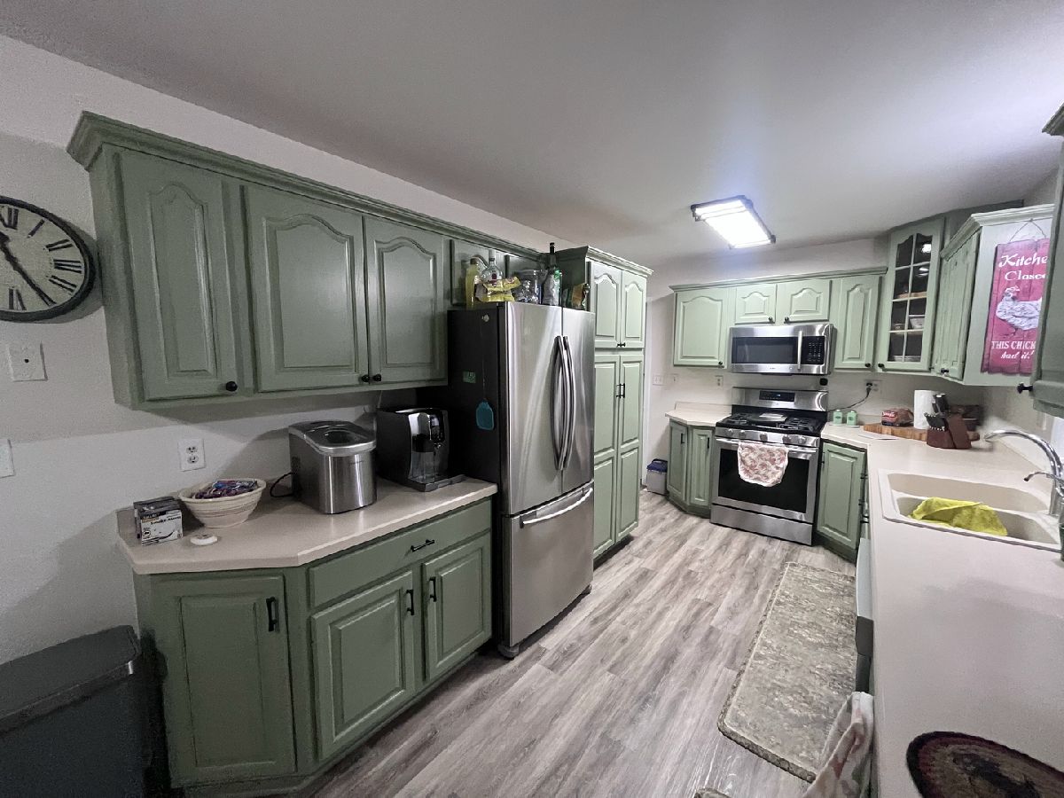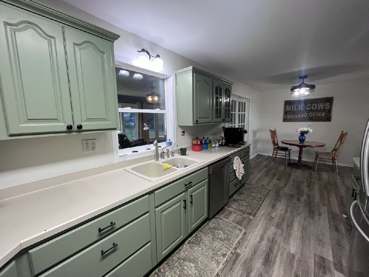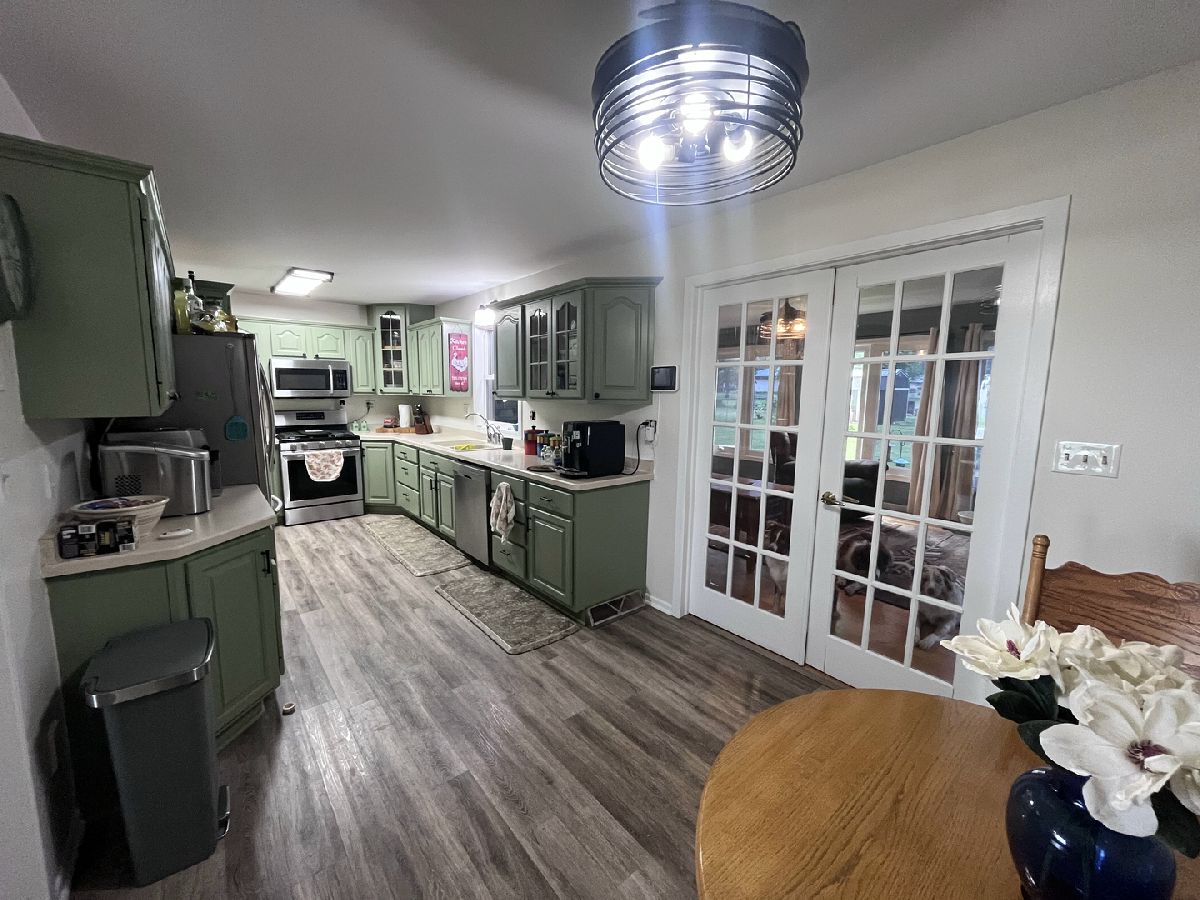 Great updated ranch on over 1/2 acre fenced-in yard. Large living room and 3 nice-sized bedrooms with newer vinyl plank flooring. Updated kitchen with newer stainless steel appliances and room for kitchen table. Peek-a-boo window into the family room; an addition put on in 2001. This room has newer windows (2021) overlooking the huge backyard and french doors out to nice concrete patio. 2 car garage has an addition (2001) with large 14x24 workshop area or room enough for a3rd car, motorcycles, toys etc.... Large unfinished basement; great for storage or your finishing touches