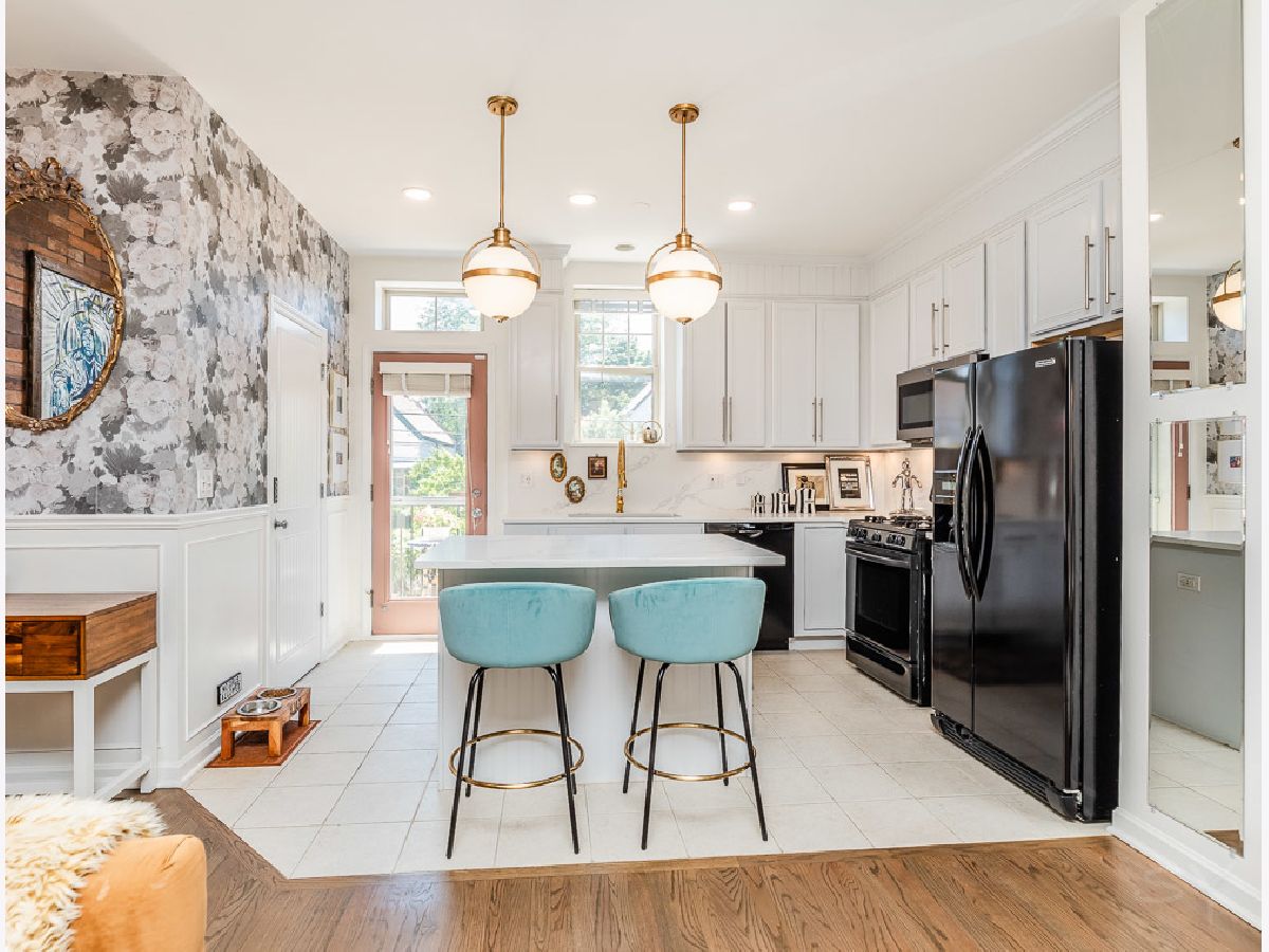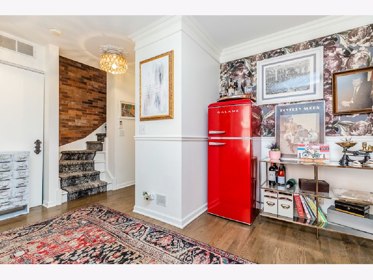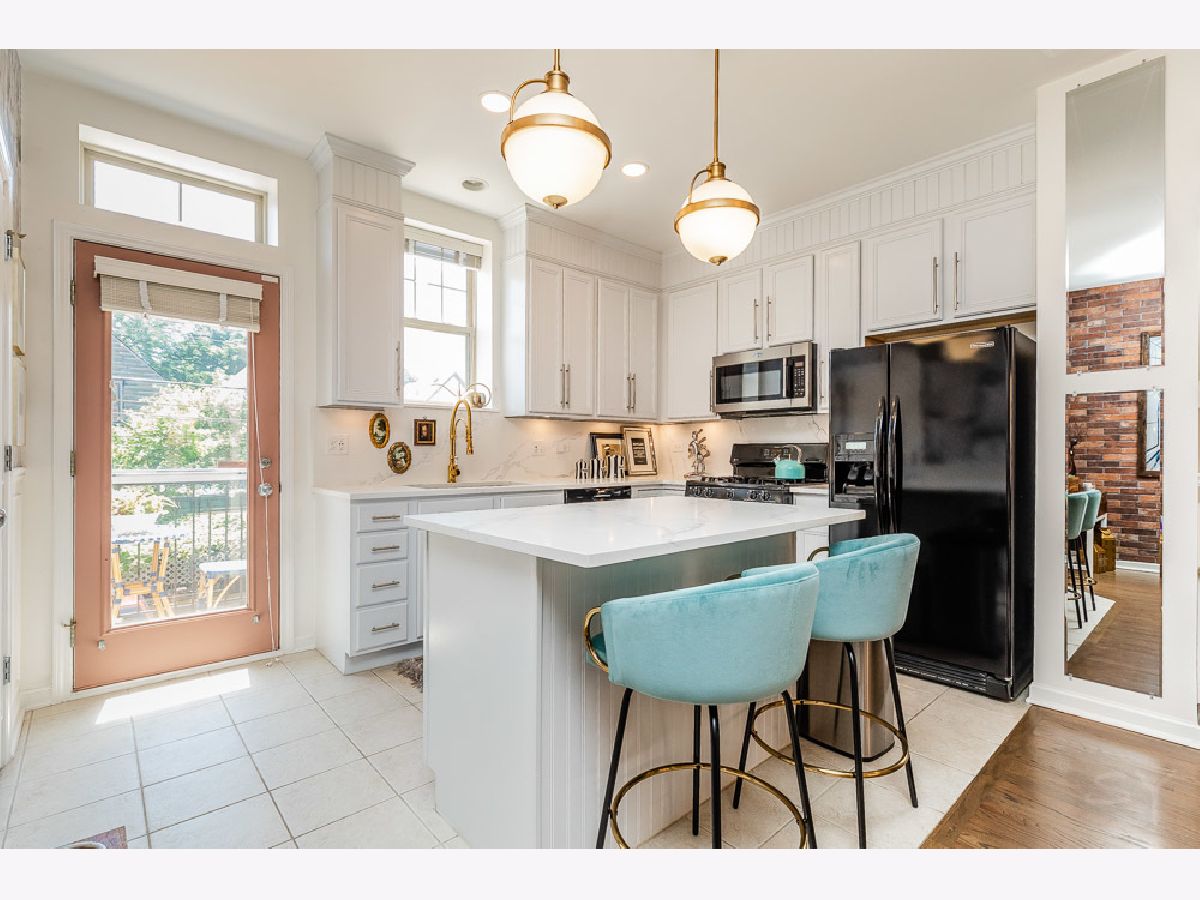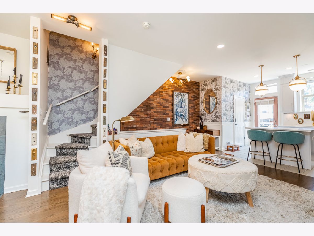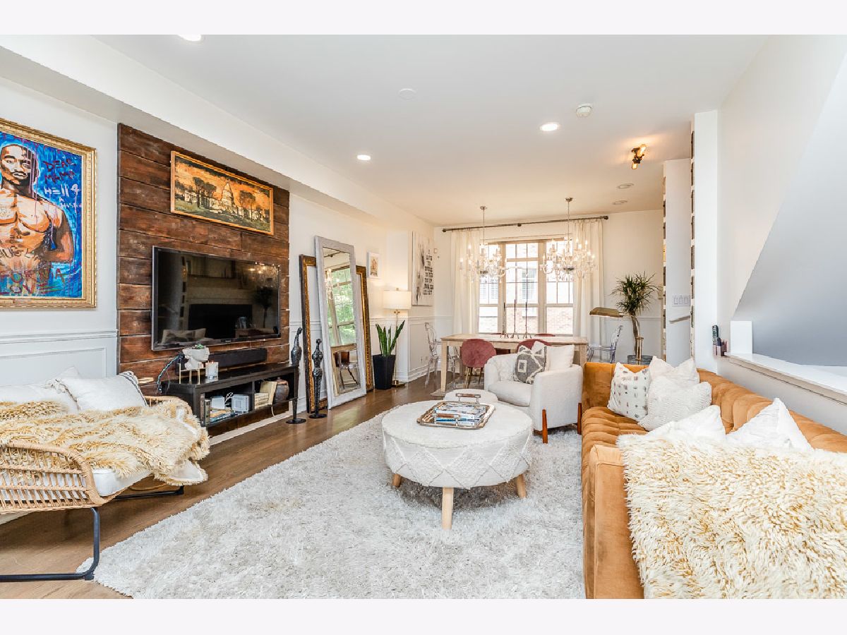Designer quality updates in this spacious 3 bedroom, 2.5 bathroom Townhome with a 2-car attached heated garage in Belmont River Club! New Furnace in 2020 and Air Conditioning Unit in 2021 (with Nest thermostat). Updated hardwood flooring throughout the home. First floor den/office space completed updated with new trim work and shelving. Stairs redone with custom runners lead up to main level. Elegant brick accent wall leads to a chef's open kitchen with 42 inch white cabinets, quartz countertops, deep stainless sink, gold fixtures, under cabinet lighting and large island. Updated balcony off of the kitchen is one of two outdoor spaces in this unit. Custom wall paper and wood accent wall for the television make the main level feel like you are in a Restoration Hardware showroom. Custom lighting throughout home, two Swarovski crystal chandeliers installed over large dining room space, bluetooth speakers installed in the ceiling above the fireplace. Third floor has an in unit side by side washer dryer. Large Master Bedroom suite with vaulted ceilings, master bath with custom wall paper and large shower. Second large bedroom with walk in closet and updated hall bathroom. Top floor third bedroom used as lofted space currently with a bar, and custom wall paneling leads out to another deck with composite decking. Many additional custom and designer details make this home not just unique but almost impossible to replicate. Belmont River Club sits around beautiful outdoor space, walking paths along the River and truly gives you the feeling that you are not in a big city while still being steps to everything the City has to offer. Close to Mariano's, Kuma's, the CTA, Roscoe Village and so much more. Additional upgrade list available.
