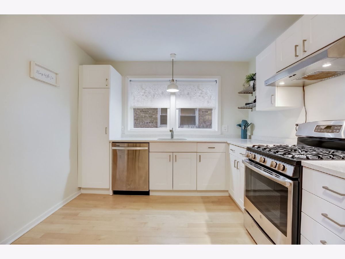 Immaculate move-in ready 2-bed plus den condo in Budlong Woods/Lincoln Square. Recently remodeled with new kitchen cabinets, SS appliances (2014), new maple flooring, and also updated bathroom. Unit features central HVAC, updated electrical panel, private laundry, ample private storage, and 1 exterior parking. Building has a nice shared backyard and also new tear off Roof (2021). 100% Owner occupied. Must live for 3 years before renting. Reserves: $8,782 as Nov 17 2023. HOA $200. Conveniently located near Galter/Swedish Hospital, North Park University, and Lincoln Square shopping.