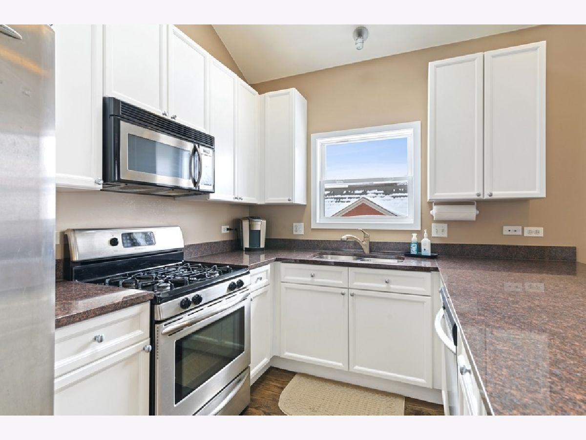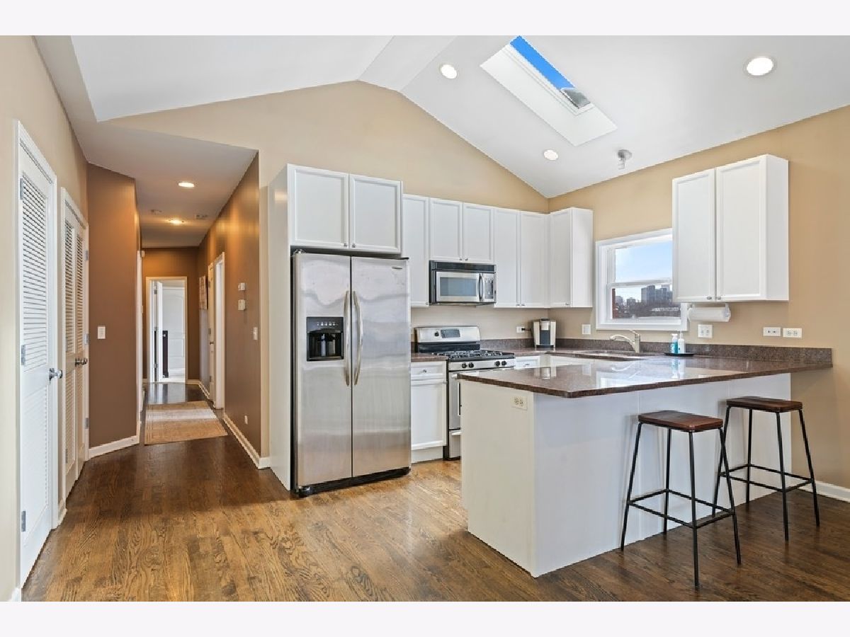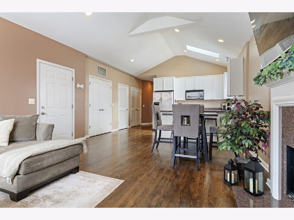Beautiful, sunny, top-floor, all-brick, extra wide 2 bed/2 bath in fantastic Lincoln Park location! Vaulted ceilings, hardwood floors and generous main living space make for an amazing home. The large combined living and dining room is anchored by an inviting fireplace, plus access to the balcony for grilling and chilling! The kitchen is chef-friendly with lots of granite counters, stainless steel appliances and breakfast bar. The primary en-suite has a wall of closets and nicely sized bath, featuring double vanity with lots of storage. Garage parking and large extra storage included. Awesome location with quick access to CTA, parks, Wiggly field (dog park), and restaurants. Don't miss this one!