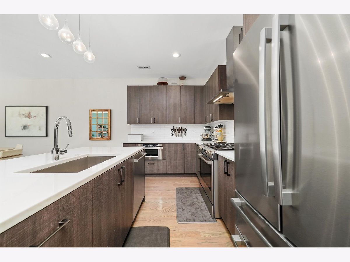 Welcome to this STUNNING 2019 build in the heart of trendy Logan Square! This spacious condo features 3 large bedrooms and 2 full bathrooms with over 1700 sq ft of living space. Extremely wide and open floor plan includes natural oak hardwood floors throughout and a modern chef's kitchen with textured cabinetry, Bosch appliances, and quartz countertops. Make your way down the wide hallway to the primary suite that boasts an extremely large walk-in closet and a spa-like ensuite bathroom with a gorgeous double vanity and rain shower. The 2nd and 3rd bedrooms are large with ample closet space. Side by side W/D with storage and MANY EXTRAS. Enjoy grilling and entertaining on your 8' x 20' private terrace steps off of the primary suite. Take it up a notch and head to your private roof deck space where you can soak up the sun with skyline views. Garage parking included. Steps to the CTA Blue Line, restaurants and shopping, and everything hip Logan Square has to offer. * Please see Agent Remarks before scheduling a showing
