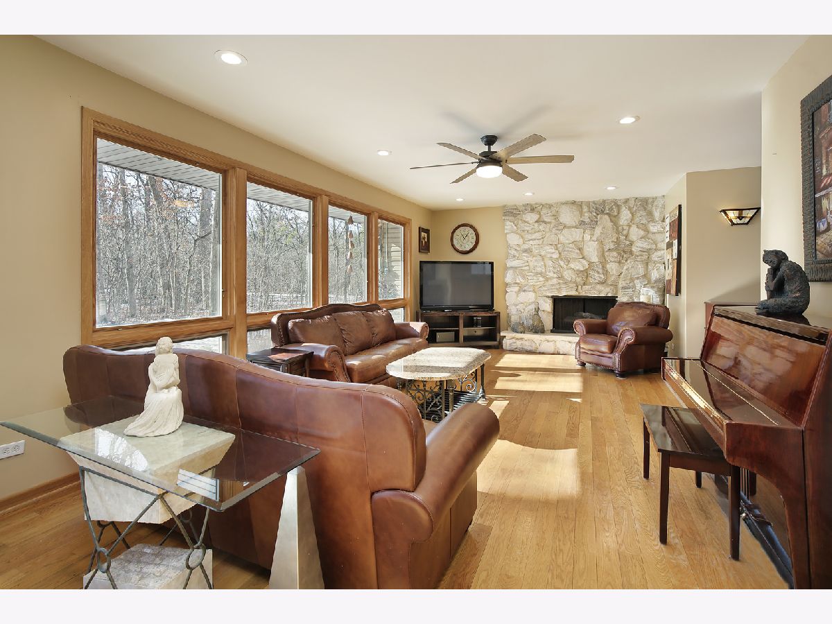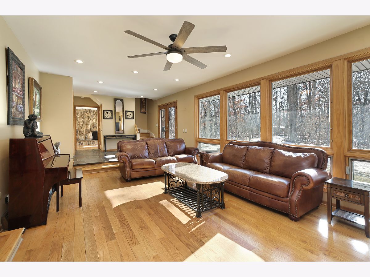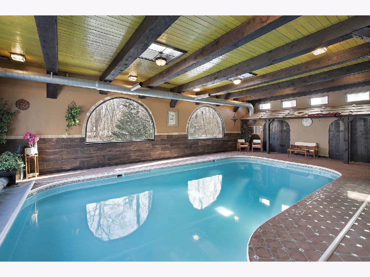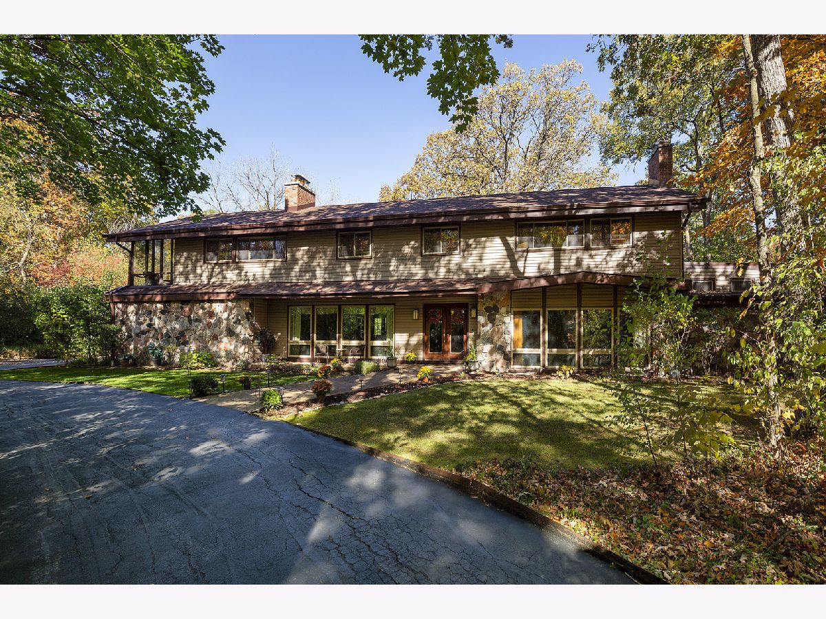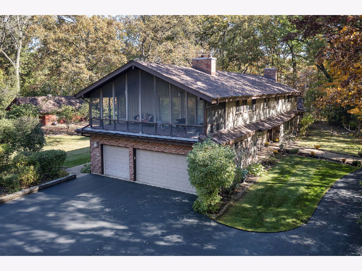 Nestled in a beautiful, completely private setting, this home offers a unique combination of space, comfort, and functionality. The expansive lot and secluded yard provide serene views and ample space for outdoor activities, while the hardwood floors and top-of-the-line windows throughout the main living areas highlight the natural light and beauty of the surroundings. The primary bedroom includes a sitting room, an extra-large walk-in closet complete with built-ins, and a screened-in porch. With six bedrooms, the home provides flexibility for family, guests, or home offices. A mostly finished basement offers additional living or entertainment space, and the large barn complements the three-car garage with even more outdoor storage options. The home is also equipped with two sets of washers and dryers and three refrigerators, ensuring convenience for larger households or entertaining needs. An indoor pool allows for year-round enjoyment. Nationally ranked Stevenson High School district. With plenty of parking and spacious living areas, this property is ideal for those seeking privacy, versatility, and a welcoming atmosphere. List of improvements can be found in additional information.