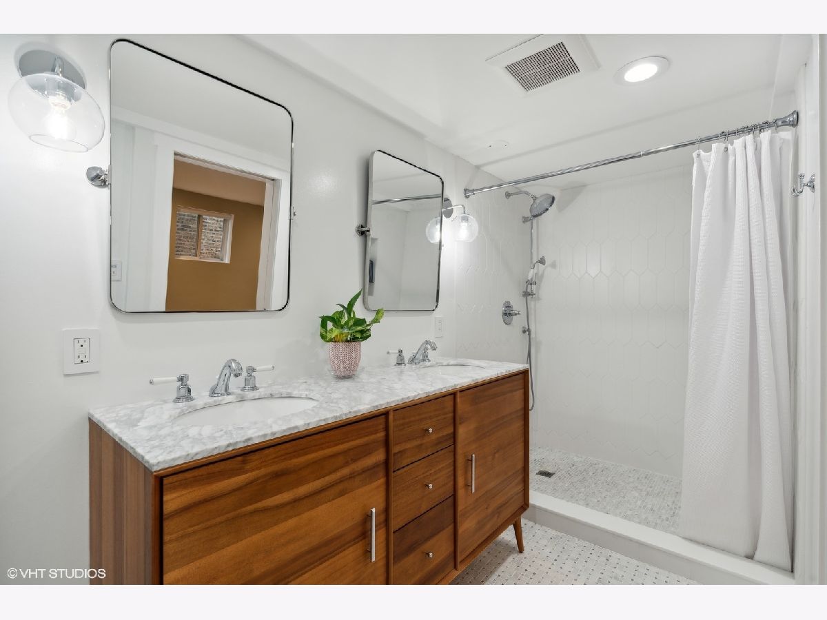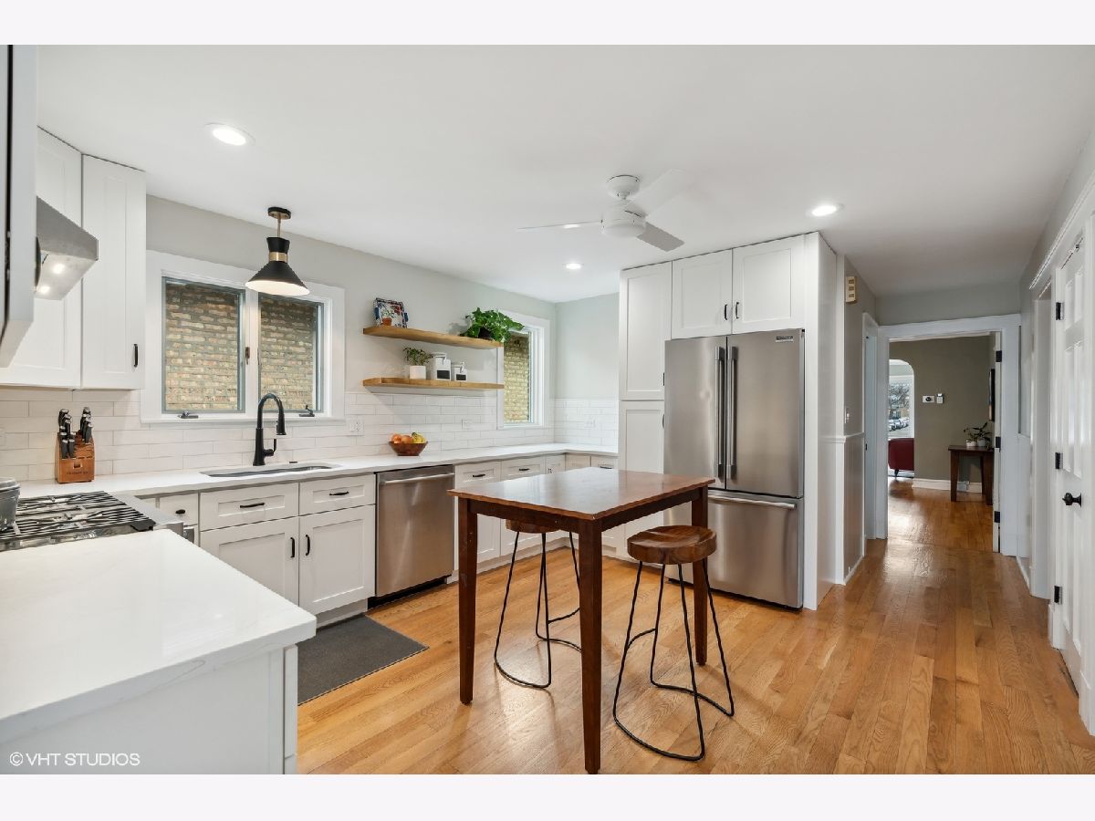 Beautifully renovated brick bungalow situated on an oversized 33x160 lot in Lincoln Square! Sunny south facing home features a large living room with gorgeous stained glass windows, separate formal dining room w/ built in cabinets, 3 bedrooms on the main level, a NEW fully renovated bath w/ white hexagon and subway tile. Brand NEW gorgeous white kitchen w/ custom backsplash, white quartz countertops, stainless steel appliances, & beautiful lighting. Stunning Lower Level was completely gut renovated and includes a convenient Mud Room right off the exterior entrance to the home. Large Family Room with area for office, playroom, flex space. Spacious Primary bedroom and all NEW bathroom featuring white and gray marble, double vanity and huge shower. The lower level also includes laundry and an abundance of extra storage. Deep lot provides a very large backyard perfect for entertaining. There is additional potential living space with interior staircase to an unfinished attic. One way tree lined street walking distance to the heart of Lincoln Square, public transportation, restaurants & shopping. Beautiful home that's move-in ready!