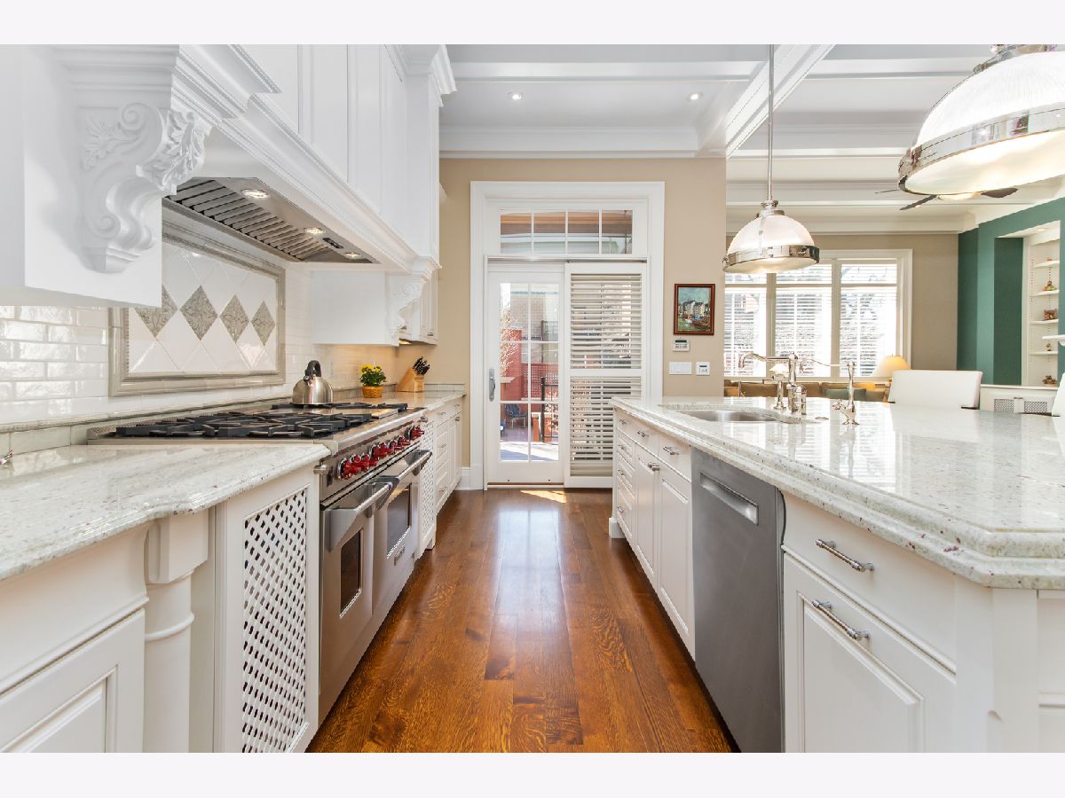 Exquisitely designed custom Lincoln Park home perfectly situated on beautiful tree-lined Mildred street. This all brick and limestone residence stands tall on an extra-wide lot allowing for an expansive 7,300 square feet of living space. Equipped with an elevator covering all four stories for convenience. Exceptional and pristine millwork is showcased throughout, complementing the rich hardwood floors. The main level includes a gorgeous foyer upon entry, a large ensuite bedroom with walk-in closet, a powder room and a beautiful mahogany den. The gourmet chef's kitchen boasts two Sub-Zero fridge/freezers with cabinet panels, Wolf 48" six burner pro-series range with two ovens + high volume hood, two dishwashers, a butlers pantry and sizable walk-in pantry. Quality cabinetry by Wood-Mode and elegant stone countertops with custom edges make this kitchen a true masterpiece. The kitchen opens to family room with a wood burning fireplace plus an eating area. In addition, access from the kitchen leads you to a vast garage rooftop deck with pergola and fireplace. It's the perfect setting for entertaining. Enjoy more outdoor space with a private garden patio on ground level. The expansive living room with wood burning fireplace and colossal sized windows letting in an abundance of natural light. The third floor greets you with a spacious primary suite, fireplace and private terrace spanning the width of the home. Two guest bedrooms, full bathroom and laundry room round out this level. The fourth floor features a wet bar and access to large rooftop. Enjoy city skyline views from the BRAND NEW deck that was just installed! Lower level consists of a second family room, ensuite guest bedroom, temperature controlled wine cellar and theater room. A huge bonus is the breezeway leading to a 3 car heated garage.
