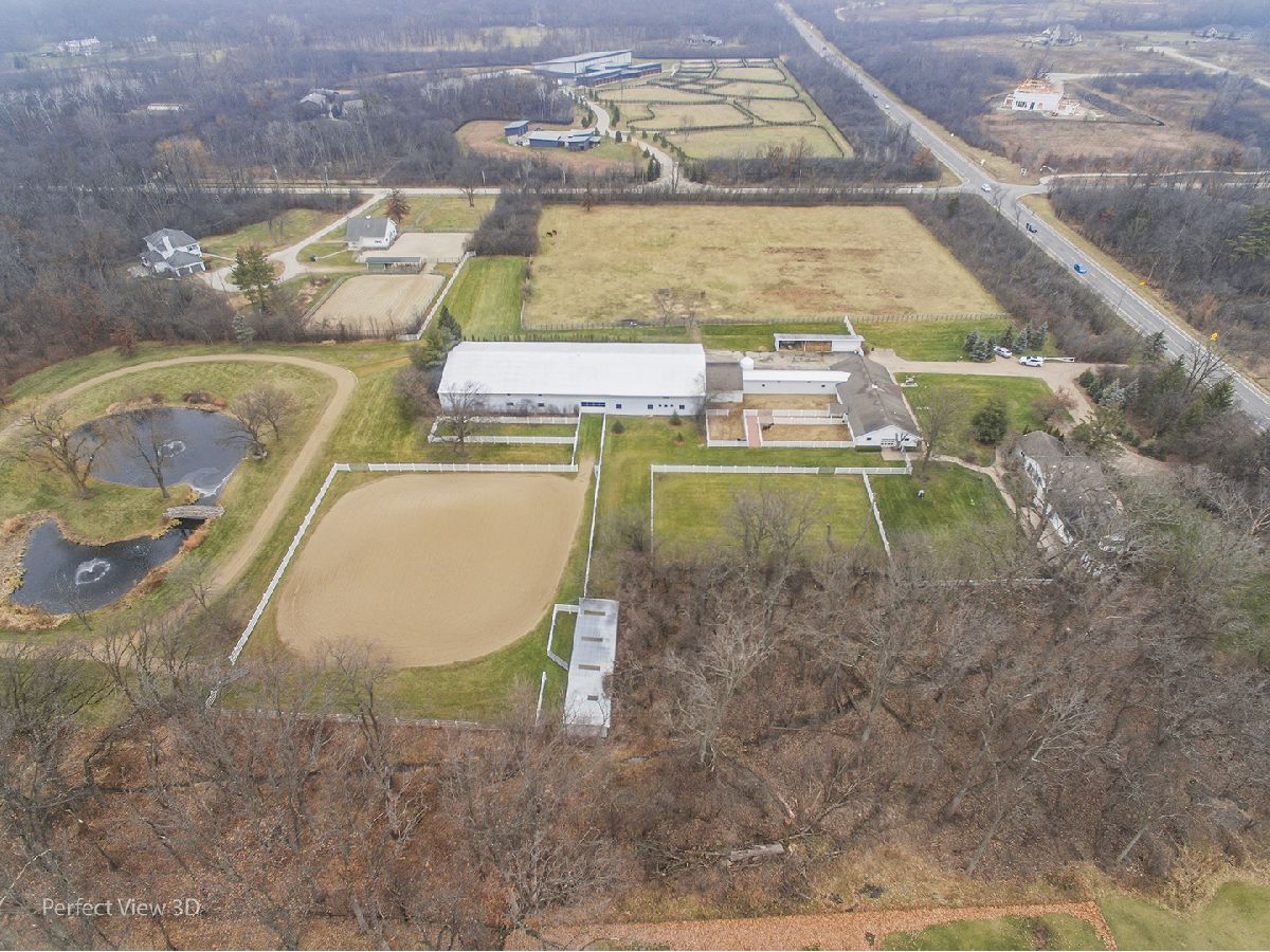 One of a Kind property featuring 8 beautiful acres of property and buildings to enjoy living on your own ranch. The property features a custom home with 4 bedrooms, stable barn, and beautiful indoor arena plus plenty of outside paddocks and equine trail around a pond with bridge and fountain. The custom home features 4 bedrooms plus a lower level in-law arrangement, 2 car heated garage with epoxy flooring. The Stable Barn is approximately 3,168SF and is set up for 12 horses and includes a bathroom and lounge area. The Stable barn is connected by an interior walkway to the indoor riding Arena approximately 70x180 (12,600SF). Additional storage buildings along with outside paddocks make this the perfect ranch. Located minutes from 294 with easy access to City and O'hare while only being minutes away from Lake Forest, Libertyville and Vernon Hills. Many Lake County Forest Preserve trails located minutes away too. All driveways are brick pavers. Municipal Water nearby. Addt 4.5 acres vacant available for $550,000