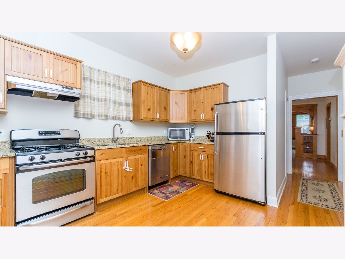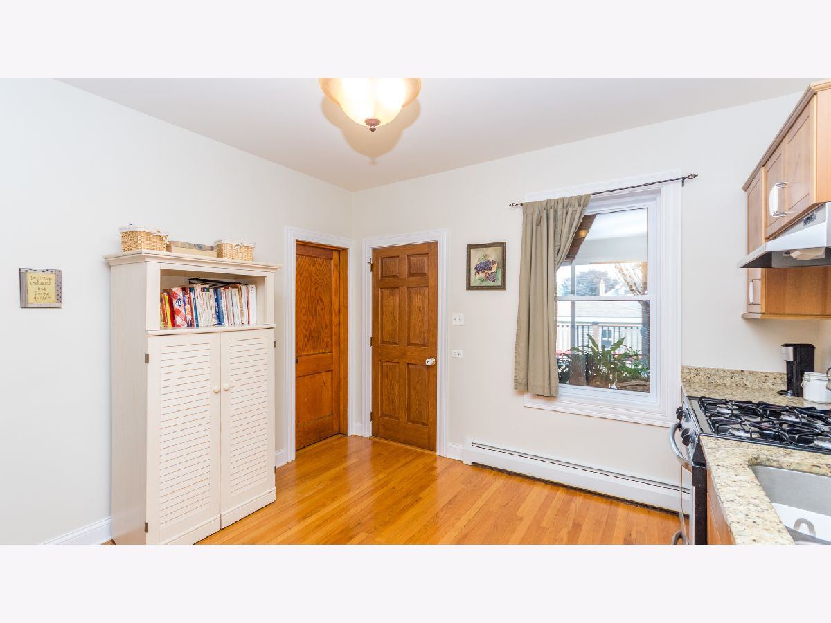 Welcome to this surprisingly spacious brick bungalow w/three full levels of living space. Brimming with charm and character, the home was rehabbed in 2009/2010 and features beautiful original woodwork, doors and built-ins. The remodeled kitchen features granite counters & stainless steel appliances, double stainless sink & walk-in pantry. Updated full bath with vanity, newly tiled floor and paint. Enclosed, heated back porch w/sliding glass door leads to deck. Second floor features large 3rd bedroom and office. Tall, partially finished basement was waterproofed in 2014 (w/transferable warranty to new owners). Updated electric and plumbing, replacement windows too. The fenced backyard includes green space and a two-car garage w/party door. Short walk to Metra, pool, park and schools! Don't miss this well-maintained home!