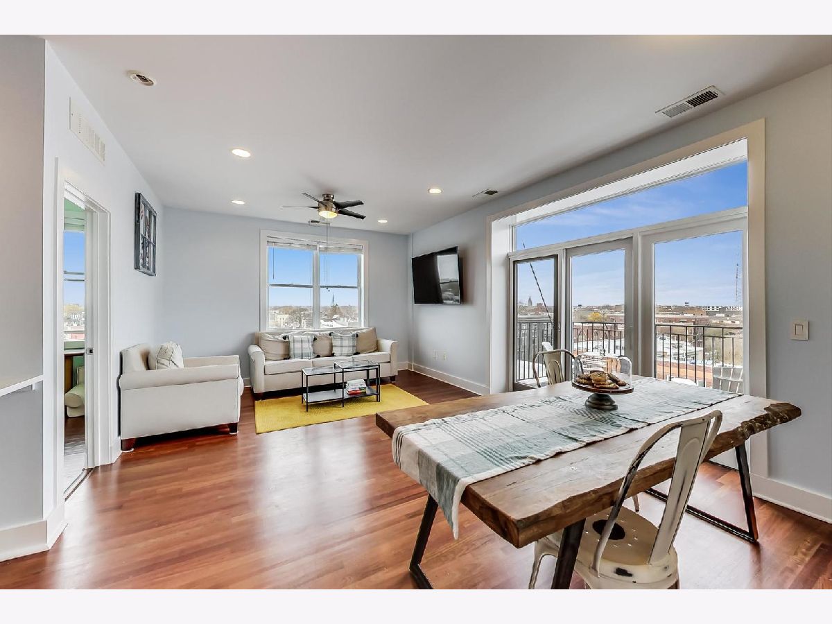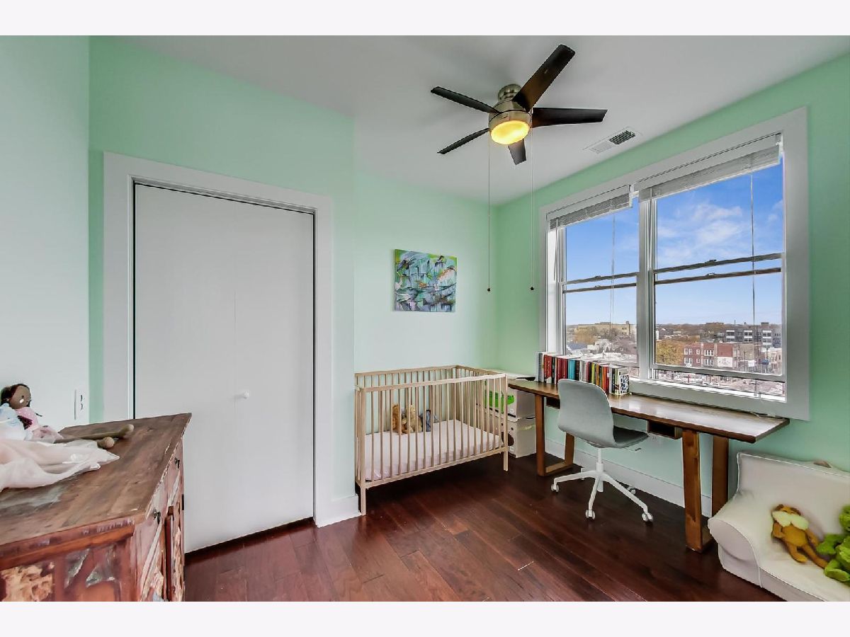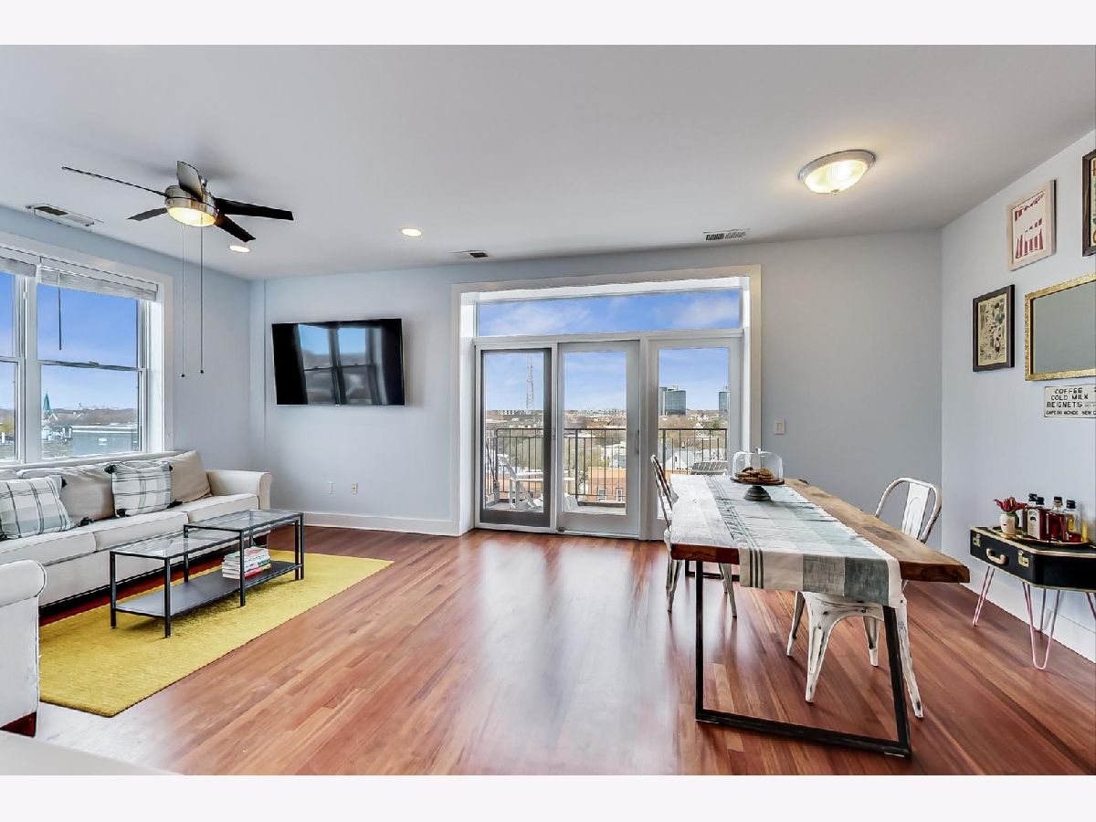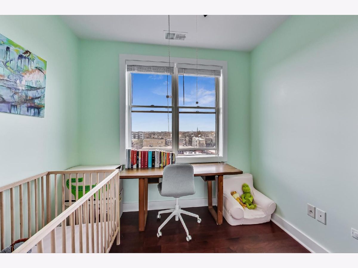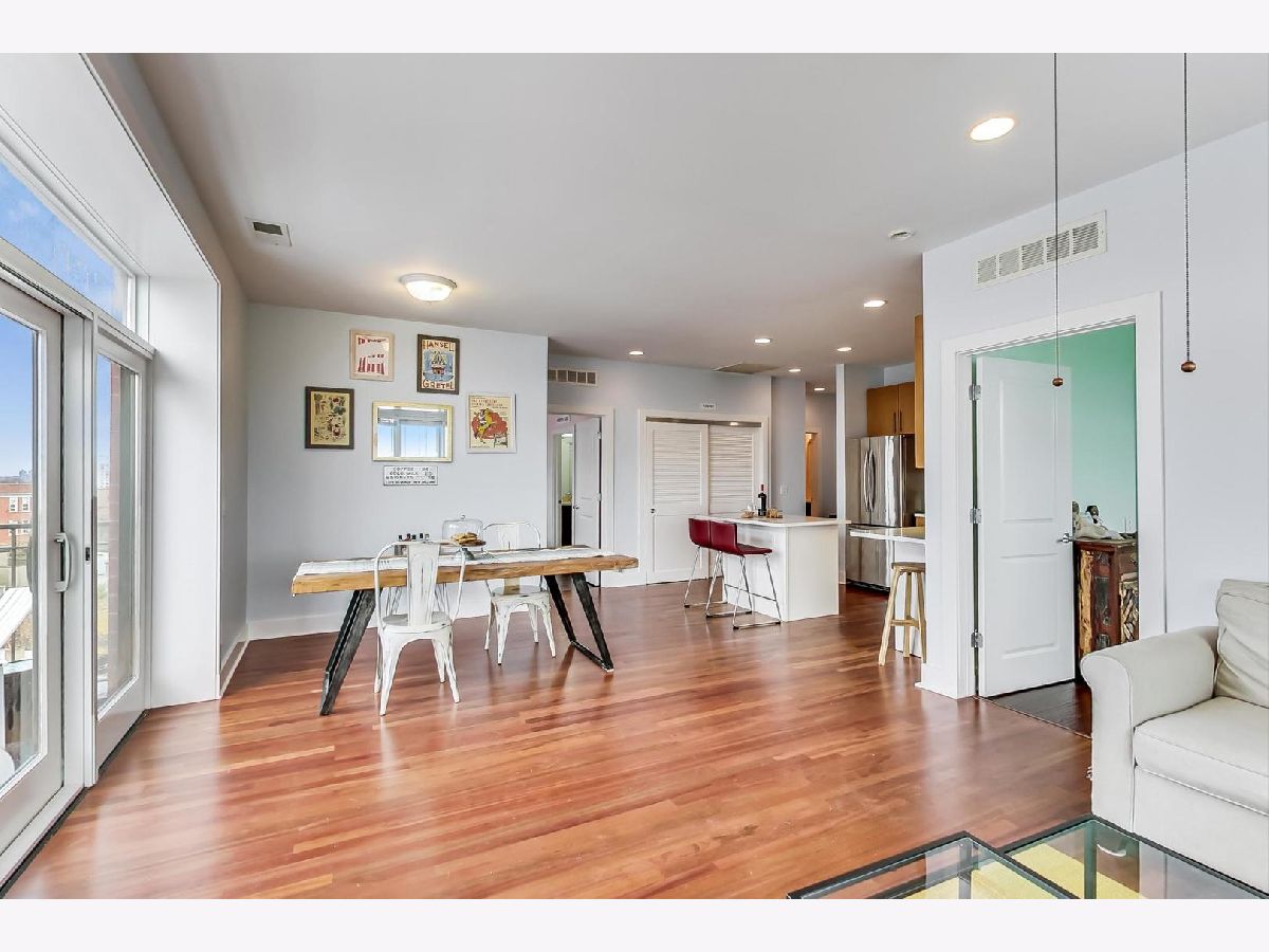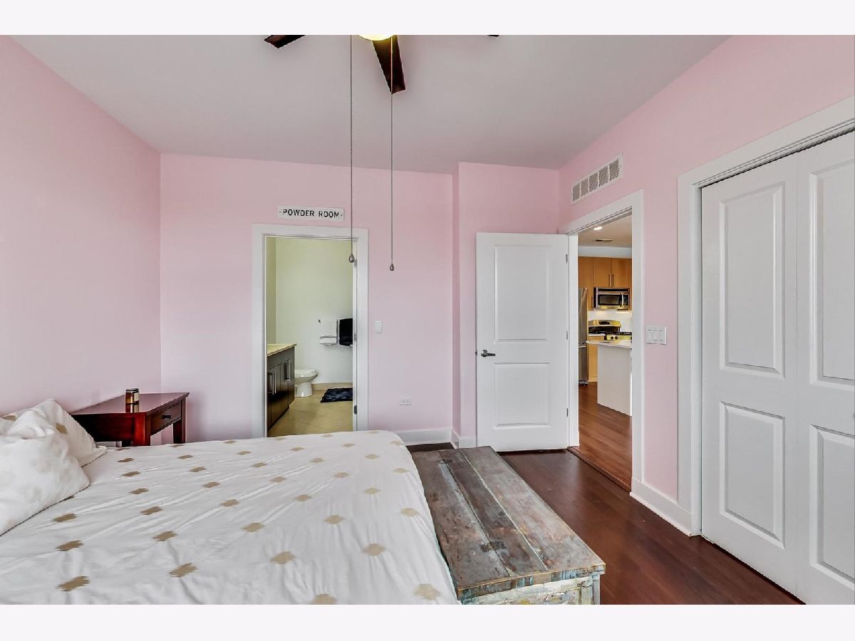 Penthouse corner unit in boutique Logan Square elevator building. This condo is truly unique in the building and gets amazing light above the rooftops with northern AND western exposure. 2020 kitchen remodeling includes brand-new: kitchen pantry, large kitchen island, quartz countertops, subway tile backsplash, fireclay farmhouse sink, brushed gold faucet, soap dispenser, and cabinet handles, and Samsung Dishwasher with third rack for utensils. Classic finishes include maple cabinets and a French-door stainless steel fridge with pullout freezer. Master bathroom suite has double vanity sink, linen closet and brand-new LG Smart W/D with steam technology. Brand-new dark chestnut hardwood flooring in bedrooms, and recently refinished cherry hardwood flooring in the living room, dining room and kitchen. Unit upgraded with ceiling fans, Ecobee Wireless Thermostat and Lutron Caseta Wireless light control. Included in price is extra-wide (largest in the building!) heated garage spot, which can fit both a car and a motorcycle. Brand-new garage shelving makes it perfect for extra storage. Access to massive common deck and party room. Walking distance to California Blue Line and the 606. Best location in Logan Square, close to loads of popular shops, bars and restaurants on Armitage and California.