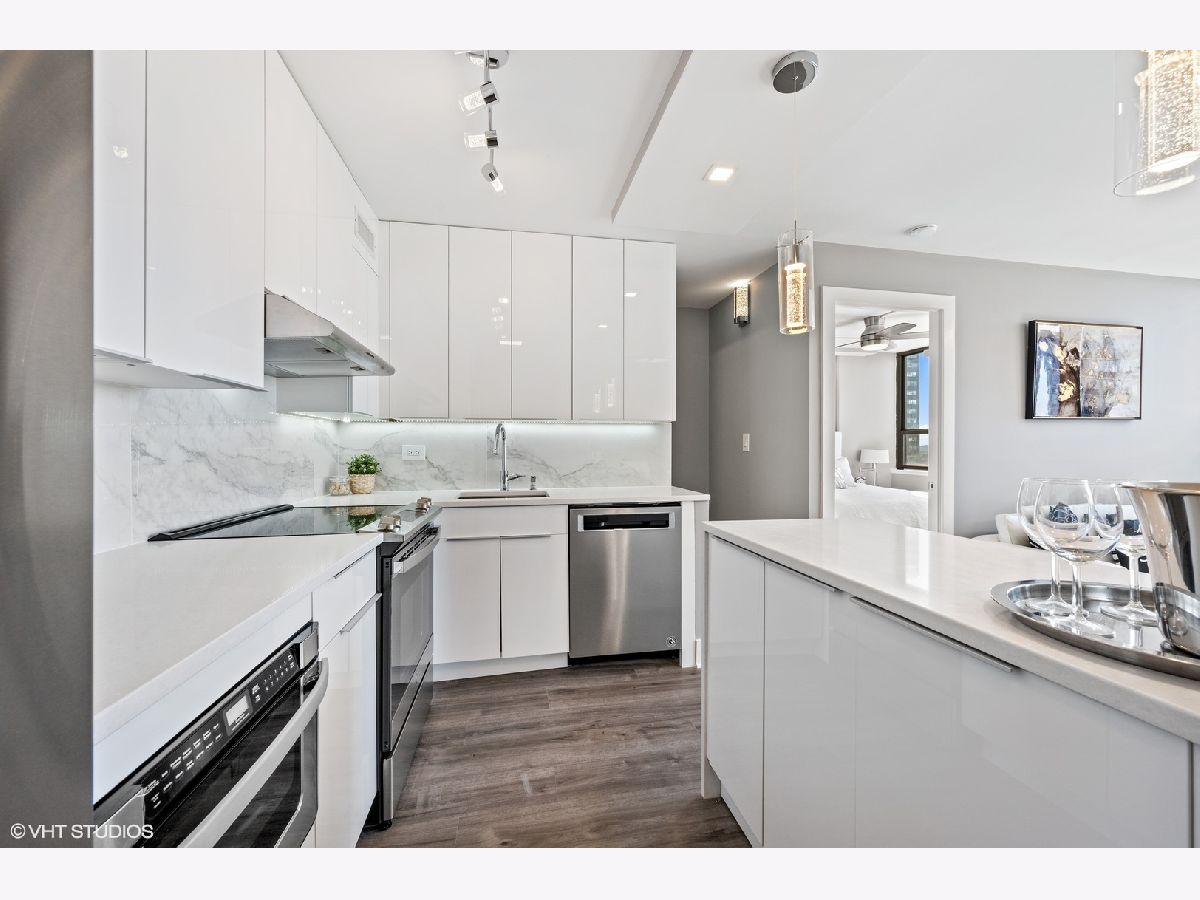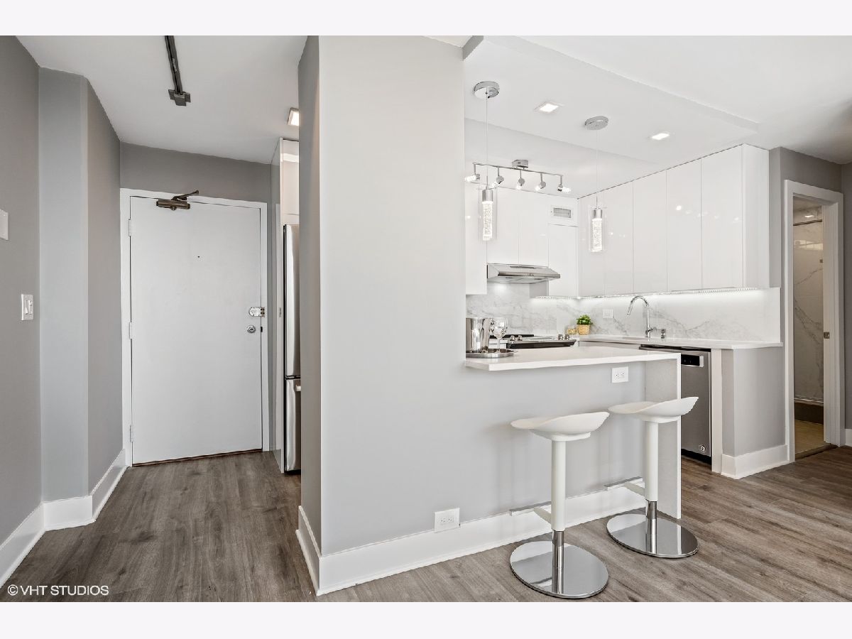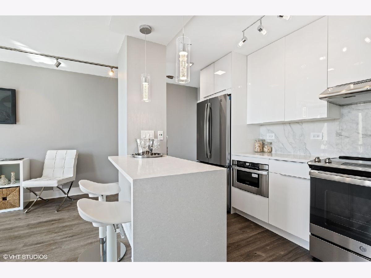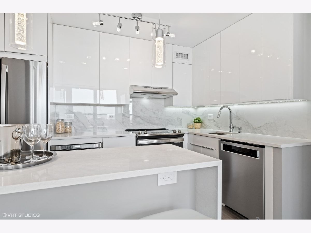 Stunning one bedroom unit with balcony. Be the first to live in this brand new unit renovated to exquisite standards, all in a wonderful Lincoln Park location. This unit has a new open floor-plan that takes advantage of the spectacular westerly views. The workmanship and finishes are top class. Enjoy cooking and entertaining in an open kitchen. The custom cabinets are white gloss flat panel with under-cabinet LED lighting, full marble backsplash, High-end appliances - French-door refrigerator, dishwasher, microwave drawer, slide-in range (with hood) Quartz counters and peninsula with breakfast bar & waterfall edge. The bedroom has the same westerly views, it has recessed lighting and professionally organized closet. The bathroom has walk-in shower with sliding glass doors finished with marble tiles, vanity cabinet has gloss flat panel and a quartz counter. There is wide plank hardwood flooring throughout the unit. New electrical and plumbing. Specialized paint used with sanitizing technology throughout the unit. Abundant closet space that is all professionally organized and has automated lighting. Relax on your private balcony enjoying the view of the city and beautiful sunsets. Well run building with good reserves. Enjoy all attractions of the Lincoln Park neighborhood - restaurants, nightlife, shopping, Lakefront trail, beach, parks. In Alcott school district. Convenient public transport. Garage parking only $155 p/m. Investor friendly building (no rental cap) Pets allowed.