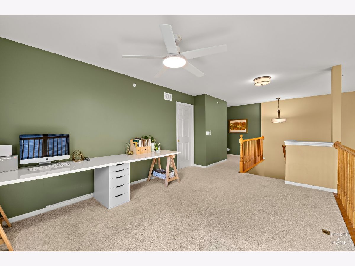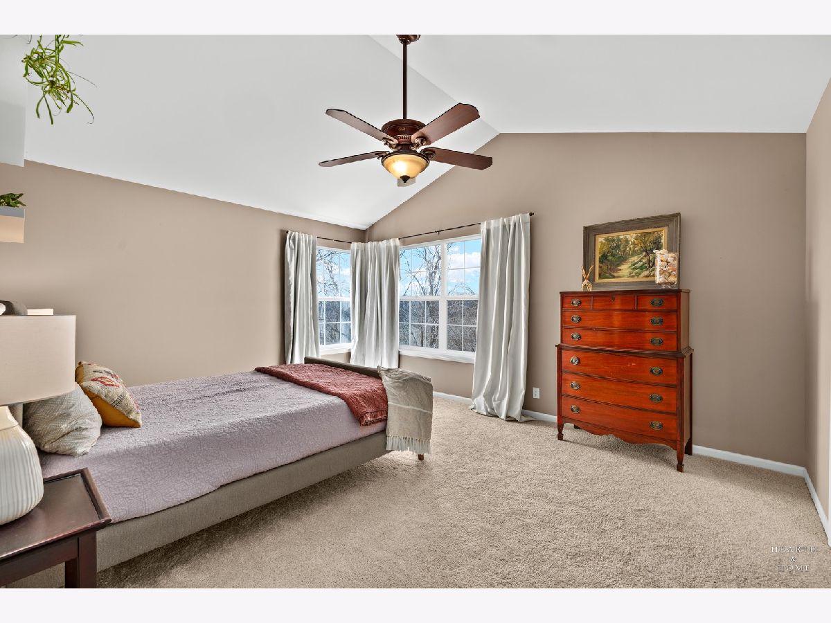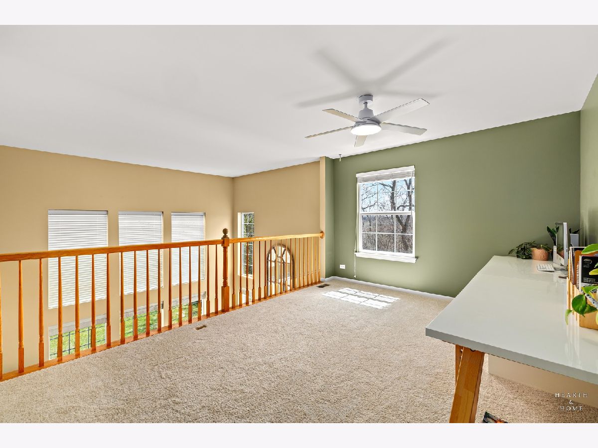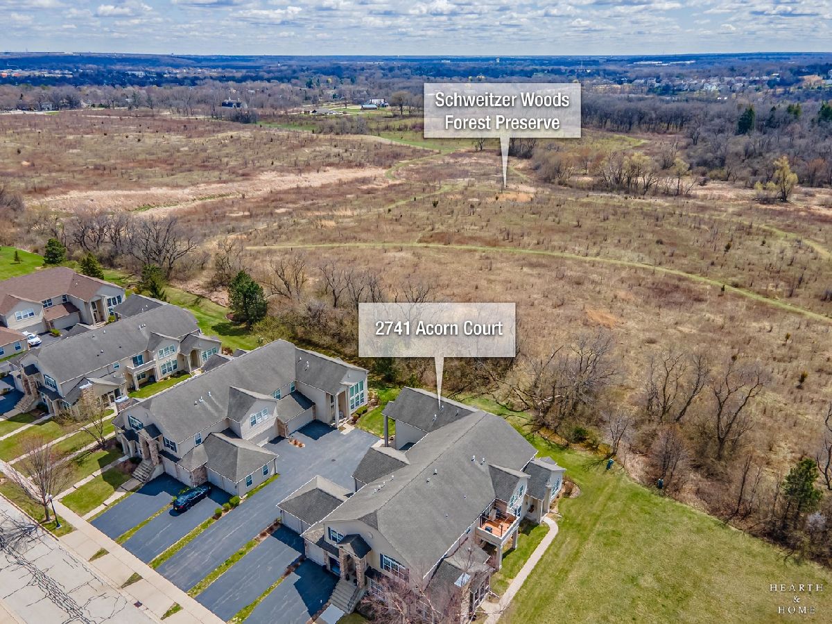 NEW Carpet (2025), Furnace (2024) & Roof (Spring 2025)! Calling all nature lovers! Welcome to your peaceful retreat in the best location of the neighborhood-tucked away at the end of a quiet, no-outlet street and backing directly to the scenic trails and dog park of Schweizer Woods. Nature abounds! Step inside and imagine the warmth of the cozy fireplace, accented with a large mirror that stays with the home, while sitting in the living area. The soaring two-story living room and windows welcome you with an abundance of natural light. A pass-through opening highlights the dining room with a nature view, ideal for hosting friends and family. Enter the spacious kitchen offering abundant counter space, a breakfast bar, and a sunny eat-in area with a French door leading to your private patio-perfect for morning coffee or evening unwinding while enjoying tranquil views of the forest preserve. Feel the warmth of BRAND NEW, just installed carpet welcoming you upstairs, flowing throughout the entire second floor. A large open loft overlooks the living space, ideal for a home office or second living area. Enjoy beautiful sunsets from the primary bedroom, it further impresses with vaulted ceilings, a generous walk-in closet, and an ensuite bath featuring a walk-in shower and long vanity countertop. A second full bath with a newer tub and an additional bedroom round out the upper level. Behind the scenes, enjoy peace of mind with major updates including a brand-new furnace and humidifier (2024) and a new roof (paid and scheduled for installation in spring 2025). The spacious two-car garage features a large shelving unit that will stay. Plus, the seller is including a one-year ACHOSA Home Warranty for added peace of mind. All of this, just minutes to Raceway Woods, I-90 and the Randall Road corridor with an abundance of shopping and dining experiences. Move-in ready and thoughtfully maintained-this one has it all. Come experience it today!