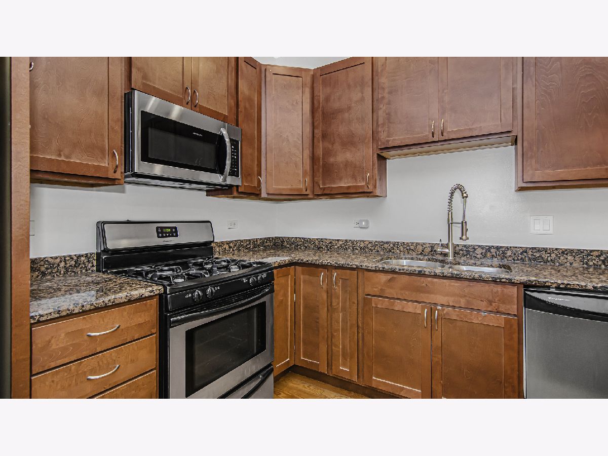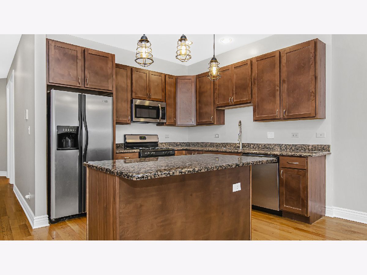 Welcome home to this immaculate 2 bed/2 bath unit on a quiet cul-de-sac street near some of the hottest restaurants and bars in the city. Located in the heart of the California/Augusta corridor, this beautiful home features hardwood floors throughout, an updated kitchen with all stainless appliances, a spa-quality primary bath, and two private outdoor spaces. The open kitchen layout features an island/breakfast bar, 42" walnut cabinetry and granite countertops. The living/dining area has plenty of space for a dining table and opens to an inviting front terrace. The primary en suite master bedroom features a whirlpool bath and separate glass shower with body sprays and access to a peaceful back deck. All this plus a brand new front-loading washer/dryer, Nest thermostat, one garage parking space included and common garage rooftop deck. Close proximity to great local restaurants, The California Clipper, Spinning J, The Hi-Lo and gorgeous Humboldt Park.