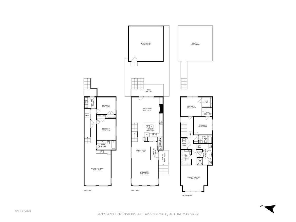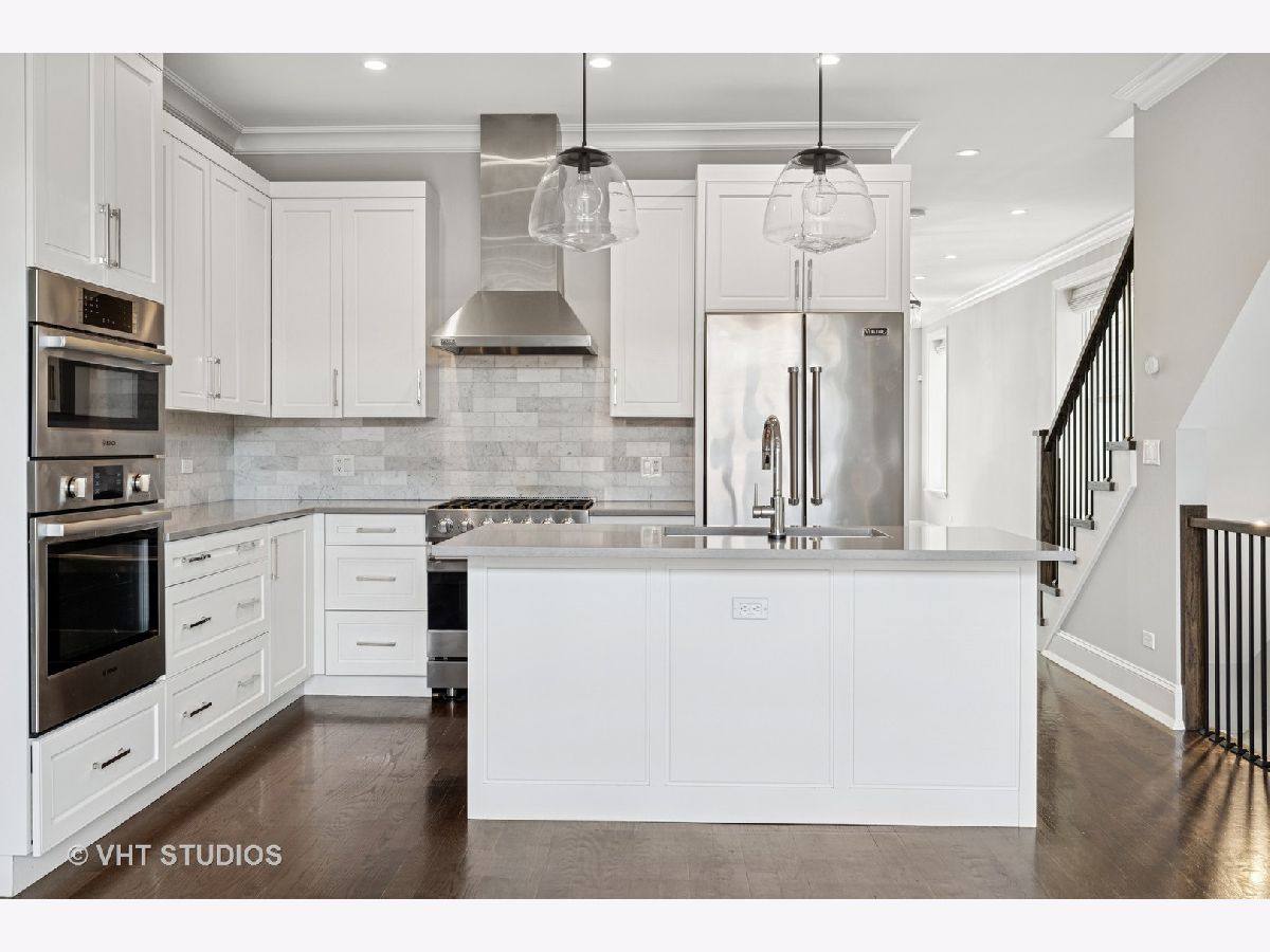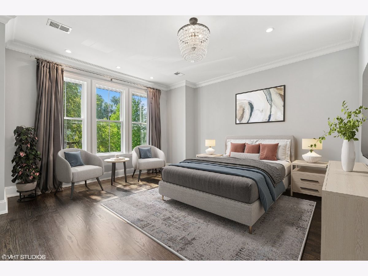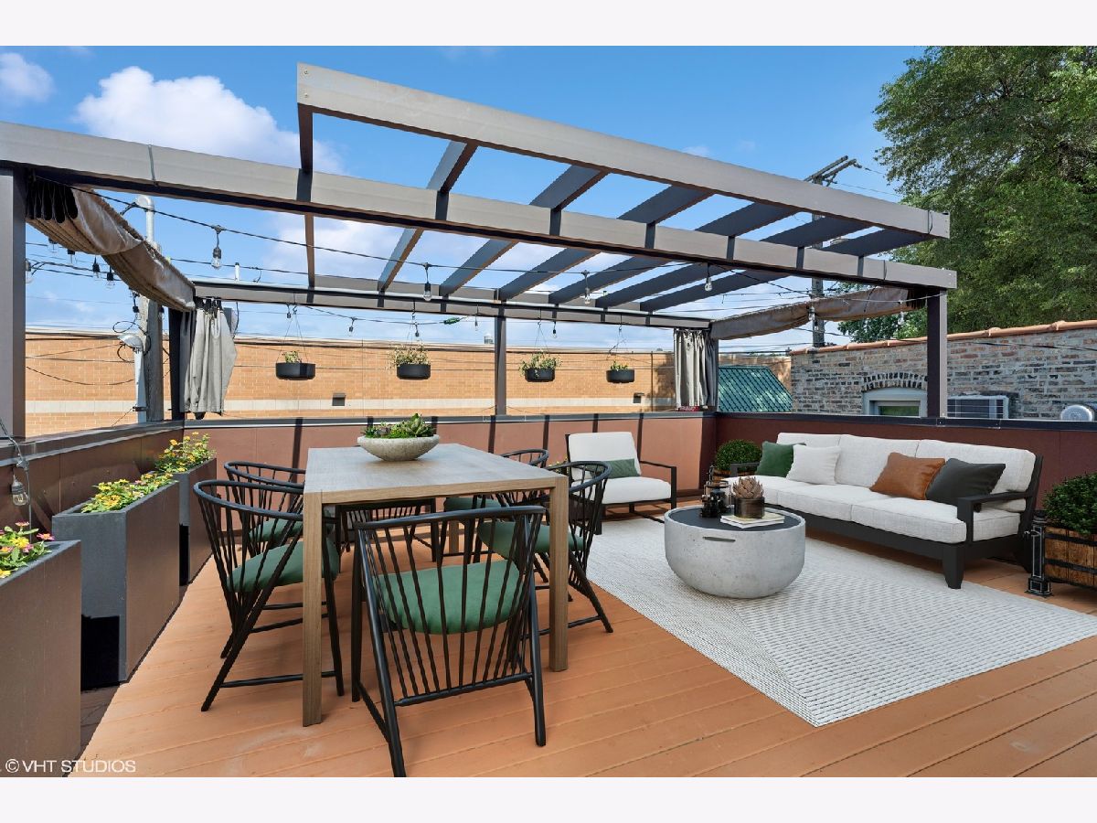 This stunning 5-bedroom, 3.5-bathroom brick home showcases exceptional craftsmanship and luxurious finishes throughout, offering an ideal layout on one of Logan Square's best blocks. Thoughtful construction features high ceilings, designer lighting, and custom window treatments. The set-back entry leads into a spacious, wide front living room with views of the beautiful front yard, creating a warm and inviting atmosphere. The chef's kitchen is a standout with custom cabinetry, commercial-grade appliances, quartz countertops, a pantry, and ample space for cooking and entertaining. It seamlessly flows into the beautifully appointed family room with a gas fireplace, built-ins, and access to three outdoor spaces, including a deck perfect for grilling. On the second level, you'll find three generously sized bedrooms, two bathrooms, and a convenient laundry closet. The spacious primary suite offers a walk-in closet and a luxurious en-suite bathroom with dual vanities, a large marble shower, a separate soaking tub, and heated marble floors. The lower level features radiant heated tile floors, a massive family room with a wet bar, two additional bedrooms, a full bathroom, and a mudroom with a second laundry room. Abundant outdoor spaces include a front yard, a deck off the family room, a large patio with turf in the backyard, and a fabulous garage rooftop deck with a pergola and custom shades. The garage is equipped with an EV charger and has a hook-up for outdoor speakers and a TV, making it the perfect space for outdoor entertainment. Additional features include permanent baby gates installed for safety, as well as a stair runner for added comfort and style. Located just steps from Logan Boulevard, the Farmer's Market, Starbucks, and some of the finest restaurants Logan Square has to offer, this home is the epitome of comfort and convenience.