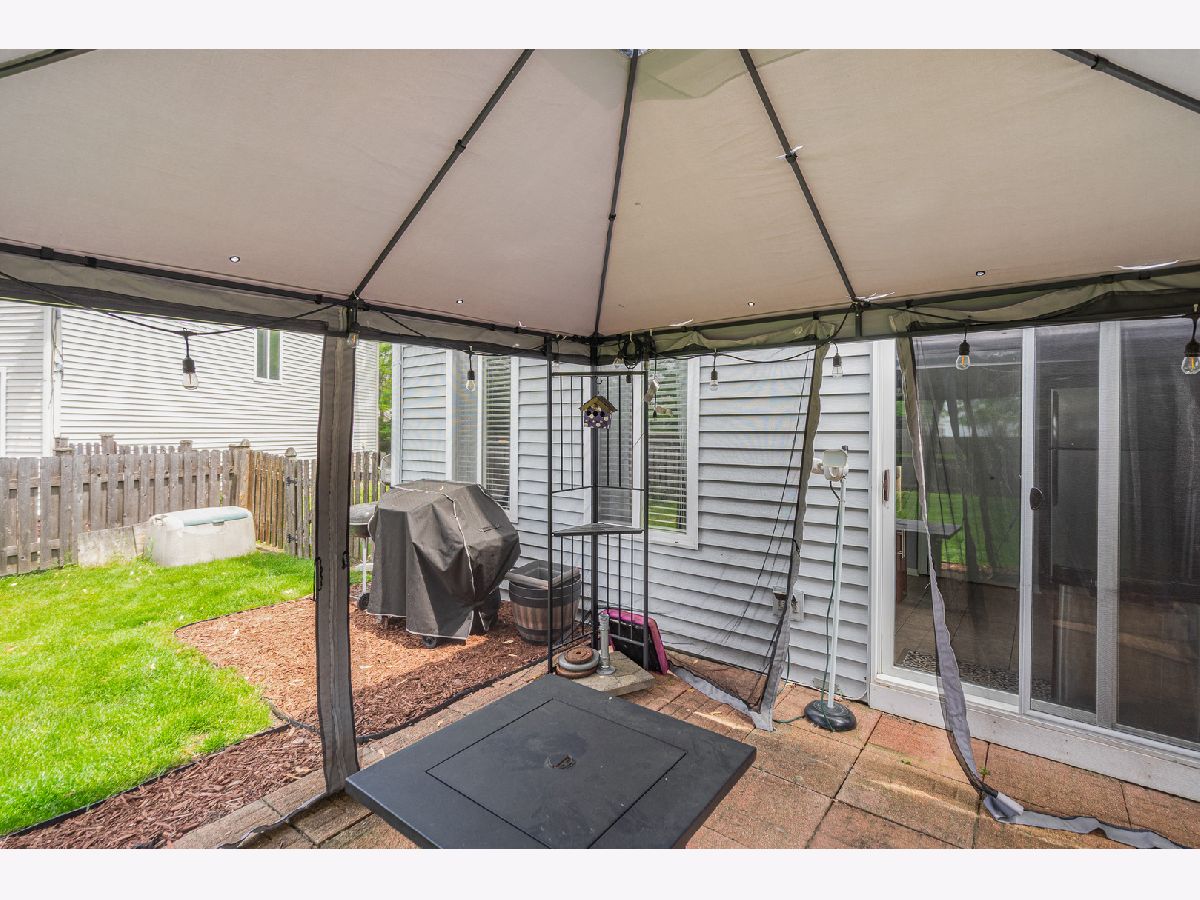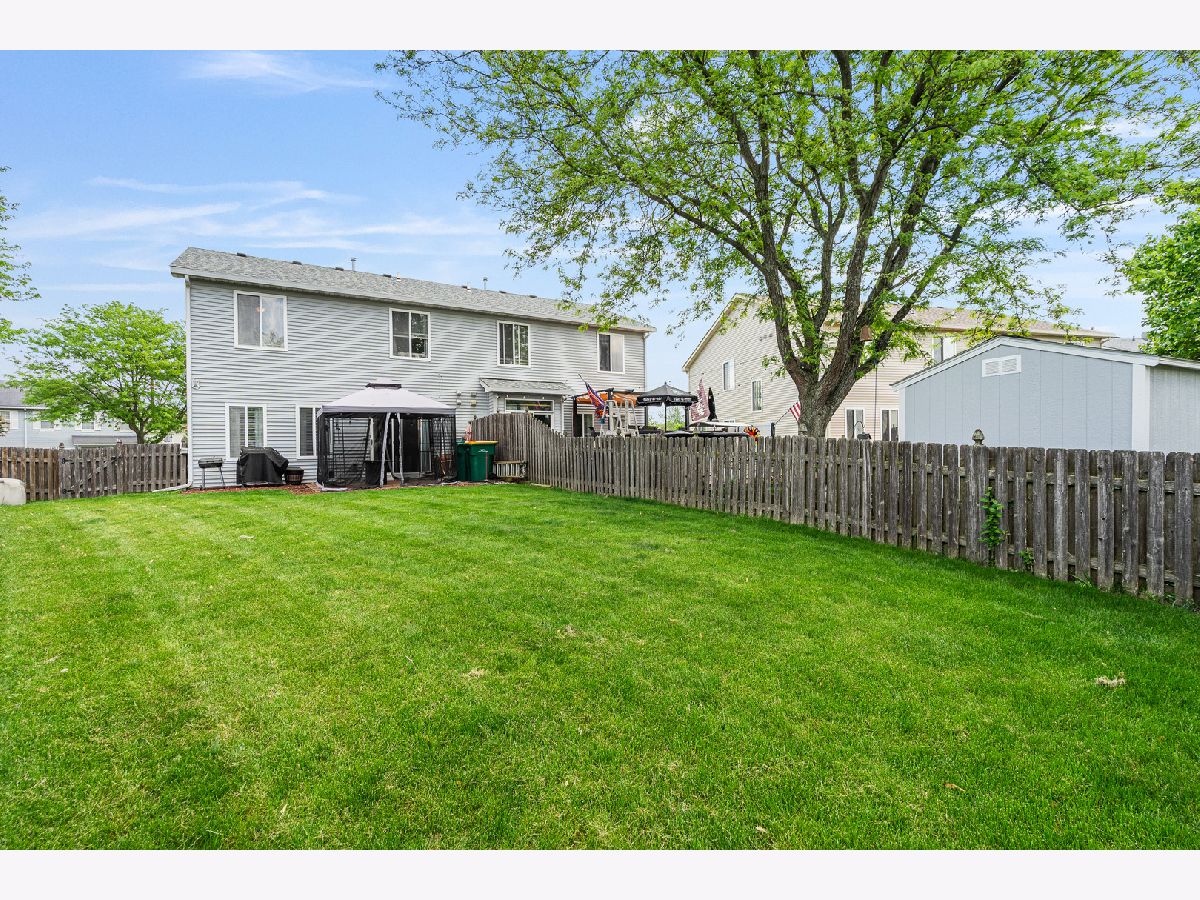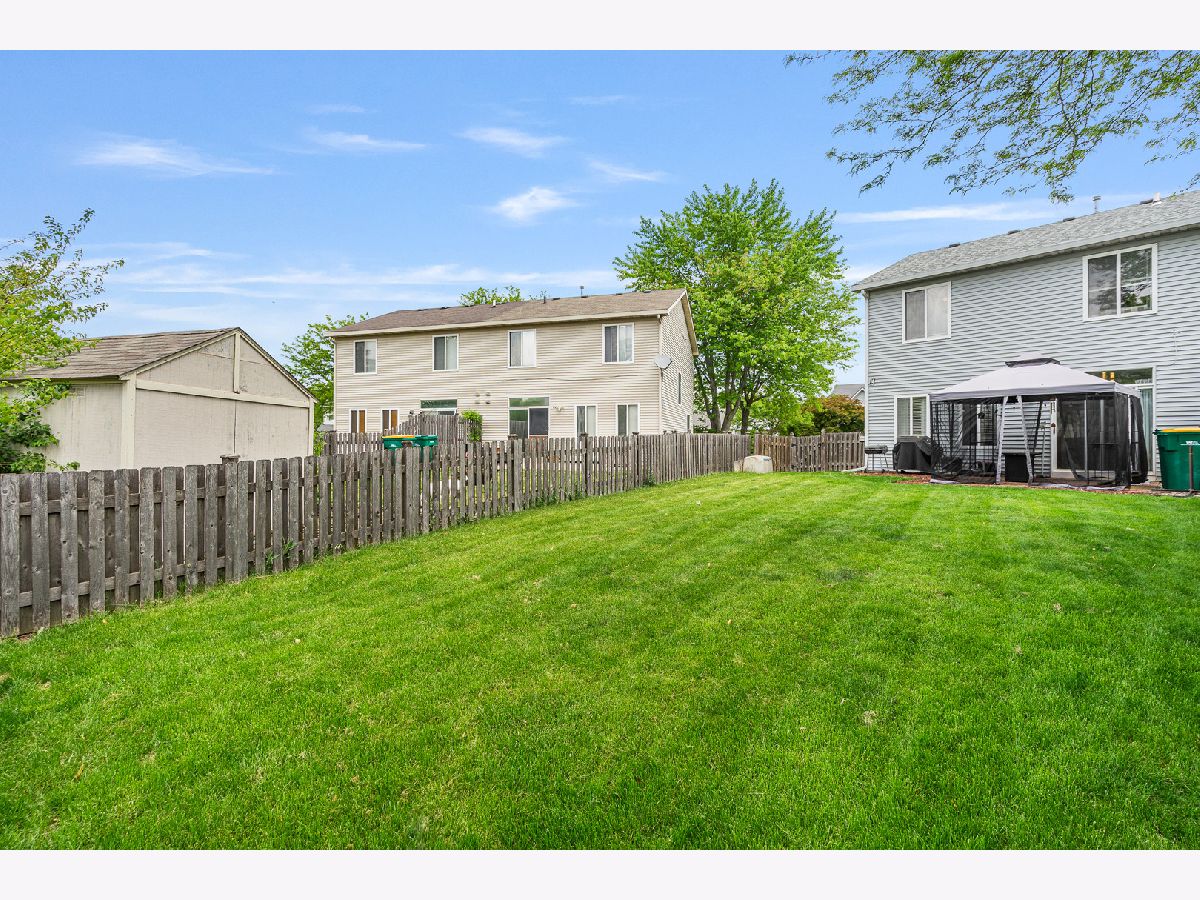 Welcome to this beautifully updated duplex that perfectly blends comfort and style! The heart of the home is the stunning kitchen featuring rich cherry cabinets, granite countertops, a custom tile backsplash, stainless steel appliances, a spacious granite island/breakfast bar-ideal for entertaining or casual meals. Adjacent to the kitchen is a large dining area with a cozy electric fireplace, and a sliding door leading to a charming paver patio with a gazebo overlooking the expansive, fully fenced yard-perfect for outdoor living. The sun-filled living room showcases wood laminate flooring and includes a mounted TV that stays with the home. An updated powder room with a sleek quartz vanity adds a touch of elegance to the main level. Upstairs, a generous loft offers flexible living space and includes another mounted TV. The luxurious master suite features a walk-in closet, and a private, fully updated bath with a quartz vanity and an oversized walk-in shower accented with detailed tile work. This home is move-in ready and full of thoughtful upgrades-don't miss your chance to own this impressive property!