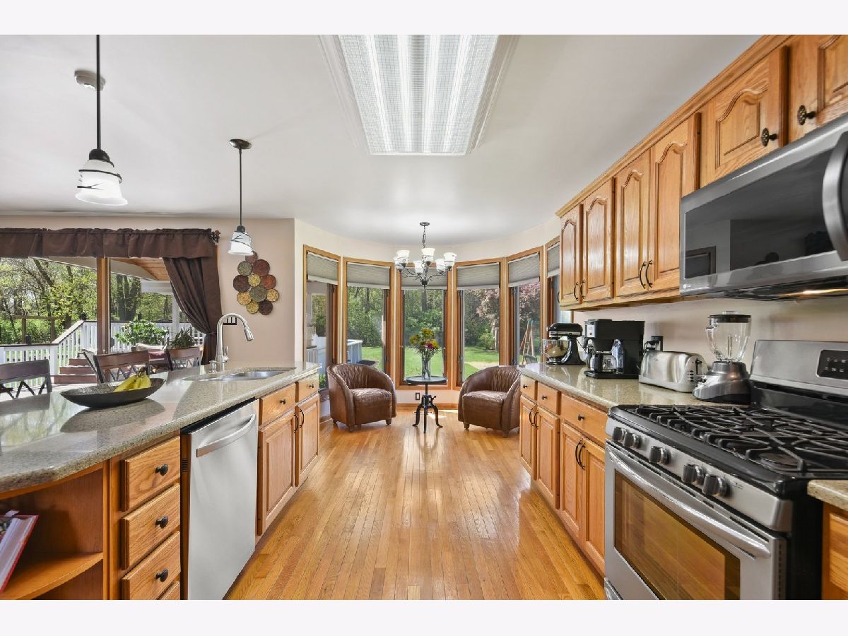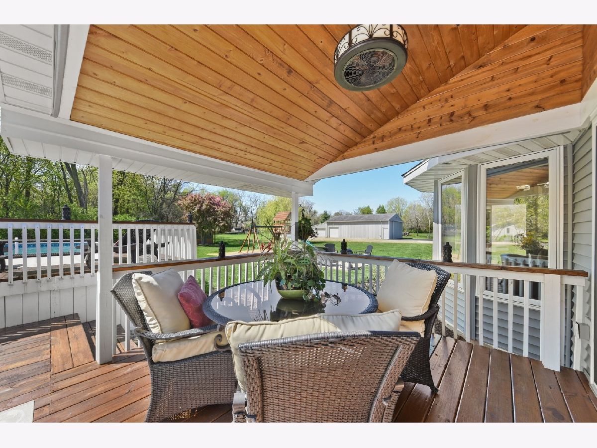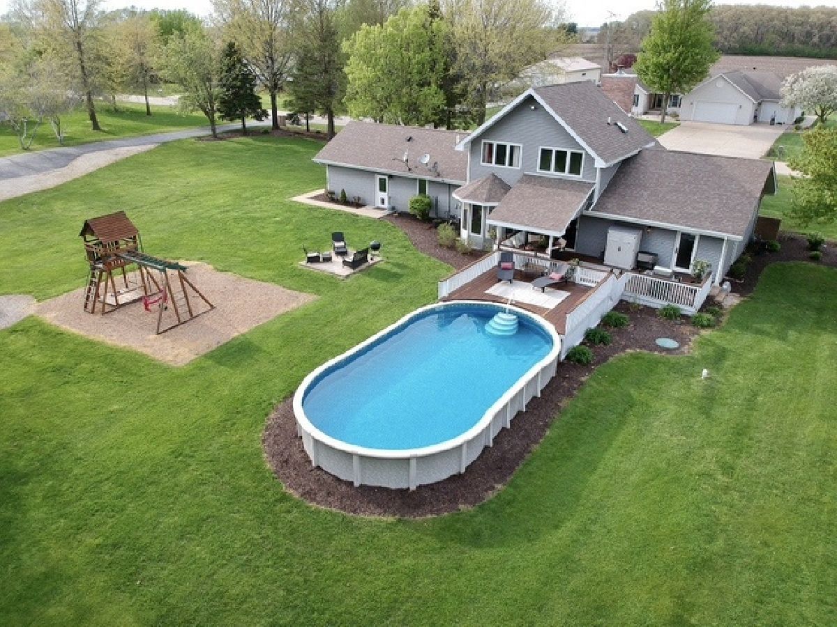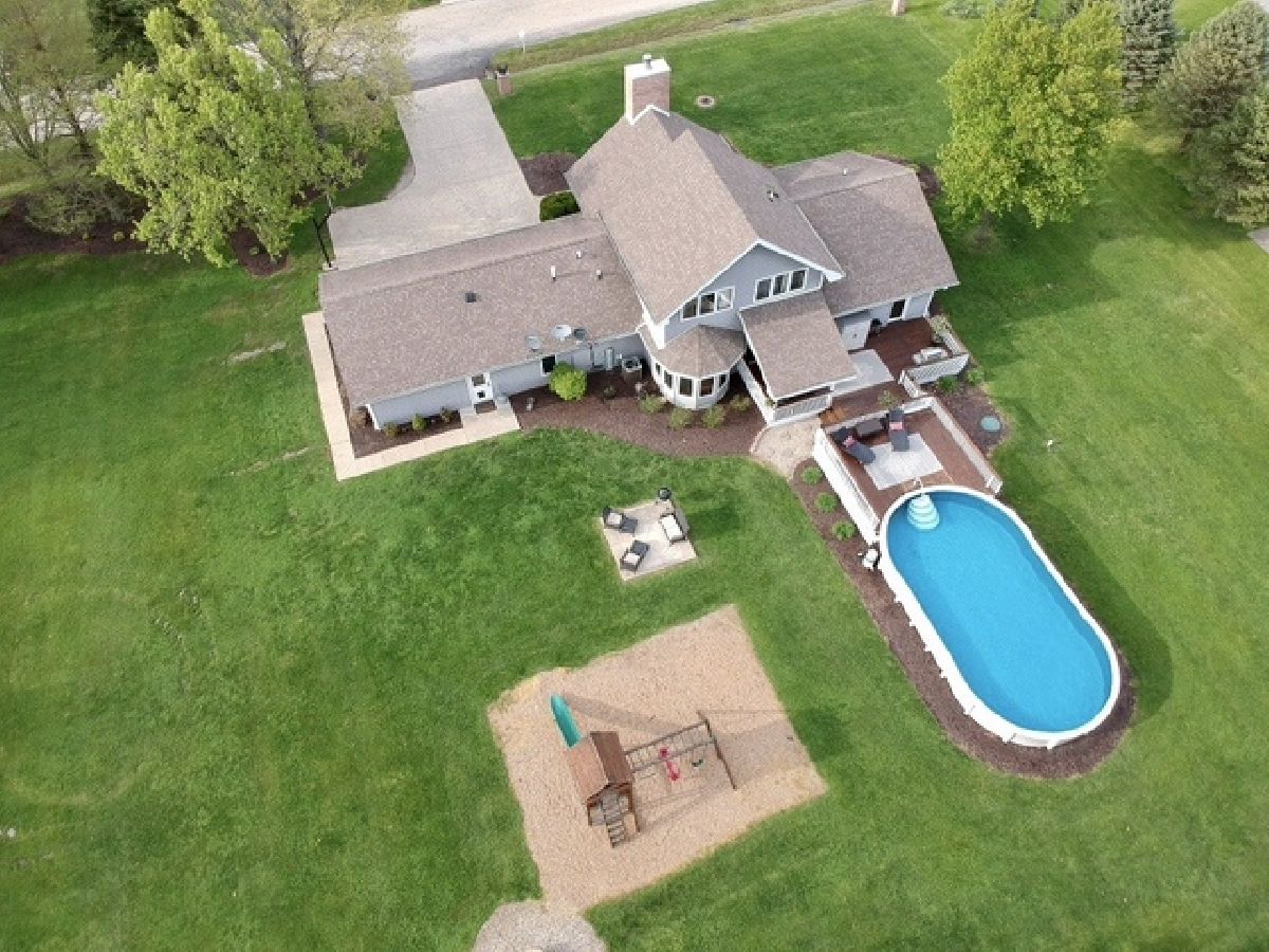 What a find in Bonfield! This can be your personal retreat! Located on a spacious 1.25 acre lot, this exceptional home has everything you could ask for including a very large living room with stoned wall fireplace and vaulted ceiling, hard wood floors and cabinets in kitchen with quartz counters, master bedroom with walk in shower and whirlpool tub, breakfast nook, sliding door to take you out onto the deck/patio area and above ground pool! Also boasting a 48x30 building, the possiblities are endless here! Other updates include newer tankless water heater, water softener, new siding, newer roof, interior paint, newer landscaping and pool liner! Wont last at this great price! Enter into great room w/fireplace & stoned wall. Master BR on 1st floor has sliders to a deck & pool area, whirlpool tub w/sep shower. Large kitchen w/breakfast bar & granite counters. Cozy area w/ sliders to 3season rm for those gatherings. Park like yard w/ picnic & garden area. 64 x 30 Morton bldg. 2011 updates include Roof, all carpet, HW refinished, Master bth remodeled, plus much more. Garage is heated.