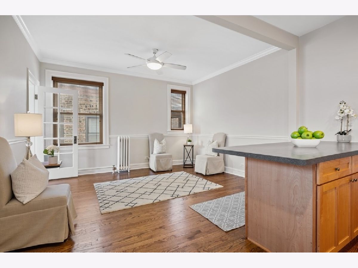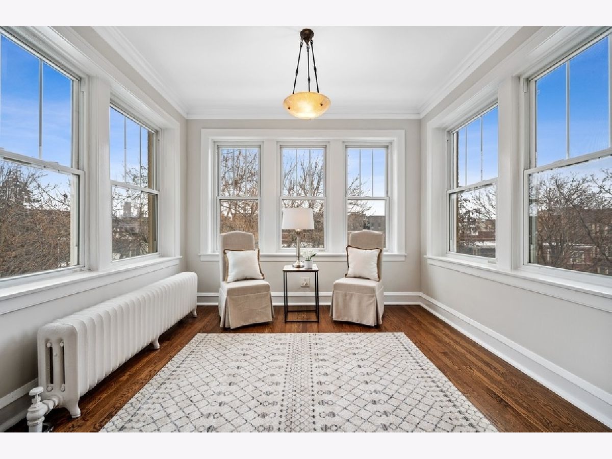 * AMAZING LIGHT FILLED, REFRESHED TOP FLOOR CONDO IN HIGHLY SOUGHT AFTER LINCOLN SQUARE LOCATION! * SPACIOUS 3 BEDROOM, 2 FULL BATH HOME Sparkles with Fresh Paint & REFINISHED Rich Hardwood Floors throughout! * ELEGANT Vintage Condo features Warm & Inviting Living Room, Decorative Fireplace framed by Charming BUILT-INS & original STAINED GLASS WINDOWS. * GORGEOUS GEM also boasts BRILLIANT SUN ROOM. * SUNNY KITCHEN OPENS to TERRIFIC DINING OR FAMILY RM. Separate South Facing Sitting Room - PERFECT FOR A HOME OFFICE! * Convenient In-Unit Laundry & Nice sized closets. * PRIVATE Back Porch - Great FOR GRILLING! * MASSIVE COMMON ROOFTOP DECK - FABULOUS Space for ENTERTAINING & DINING AL FRESCO! * Watch SUNSET VIEW over Lovely nearby PARK. * 1 Garage Parking Space included. * Outstanding Home is MOVE IN READY! * UPDATES include: NEW Hot Water Heater August 2021, NEW Boiler July 2020 * Central Air can be added to the Unit. * PREMIER LOCATION - JUST STEPS to all Lincoln Square has to offer -DINING, SHOPPING, SCHOOLS & TRANSPORTATION - 4 blocks to Rockwell Brown Line Station!