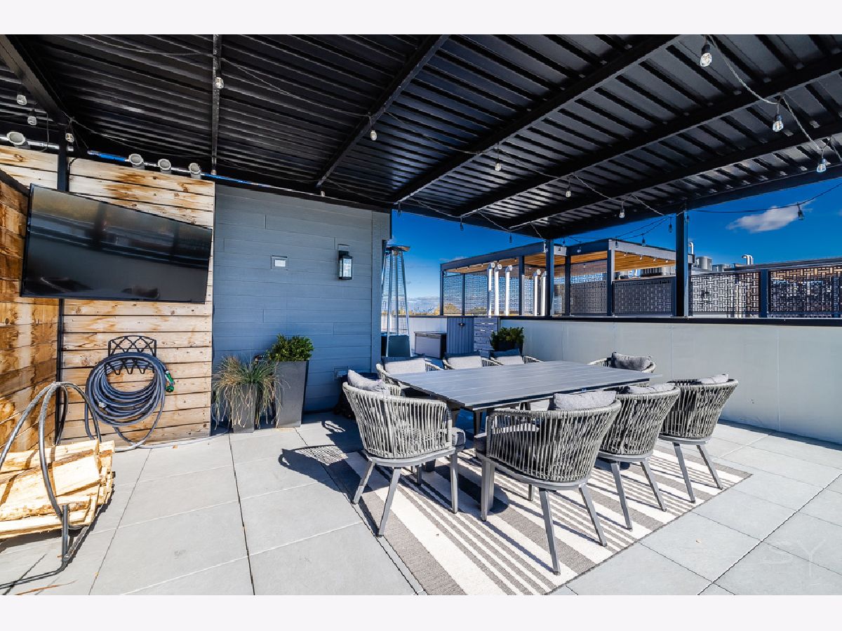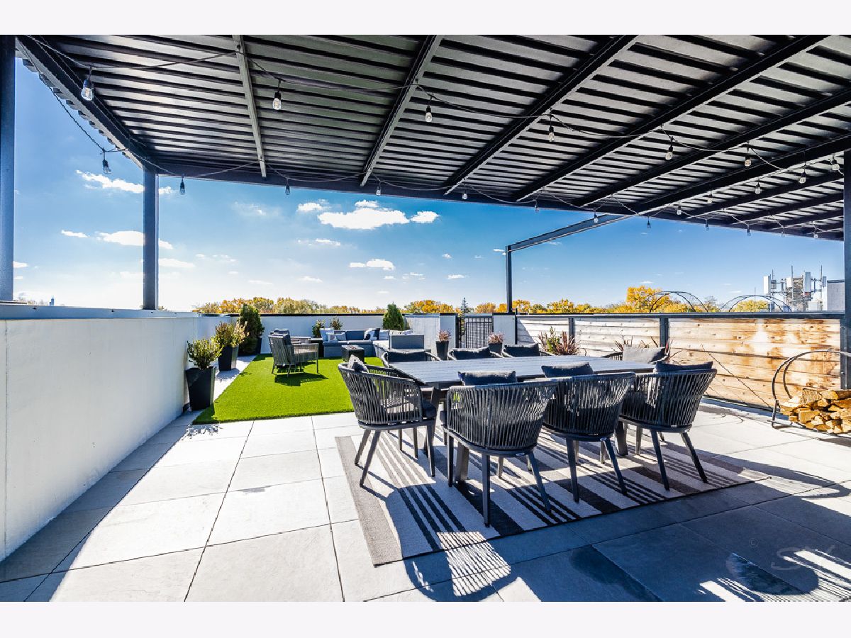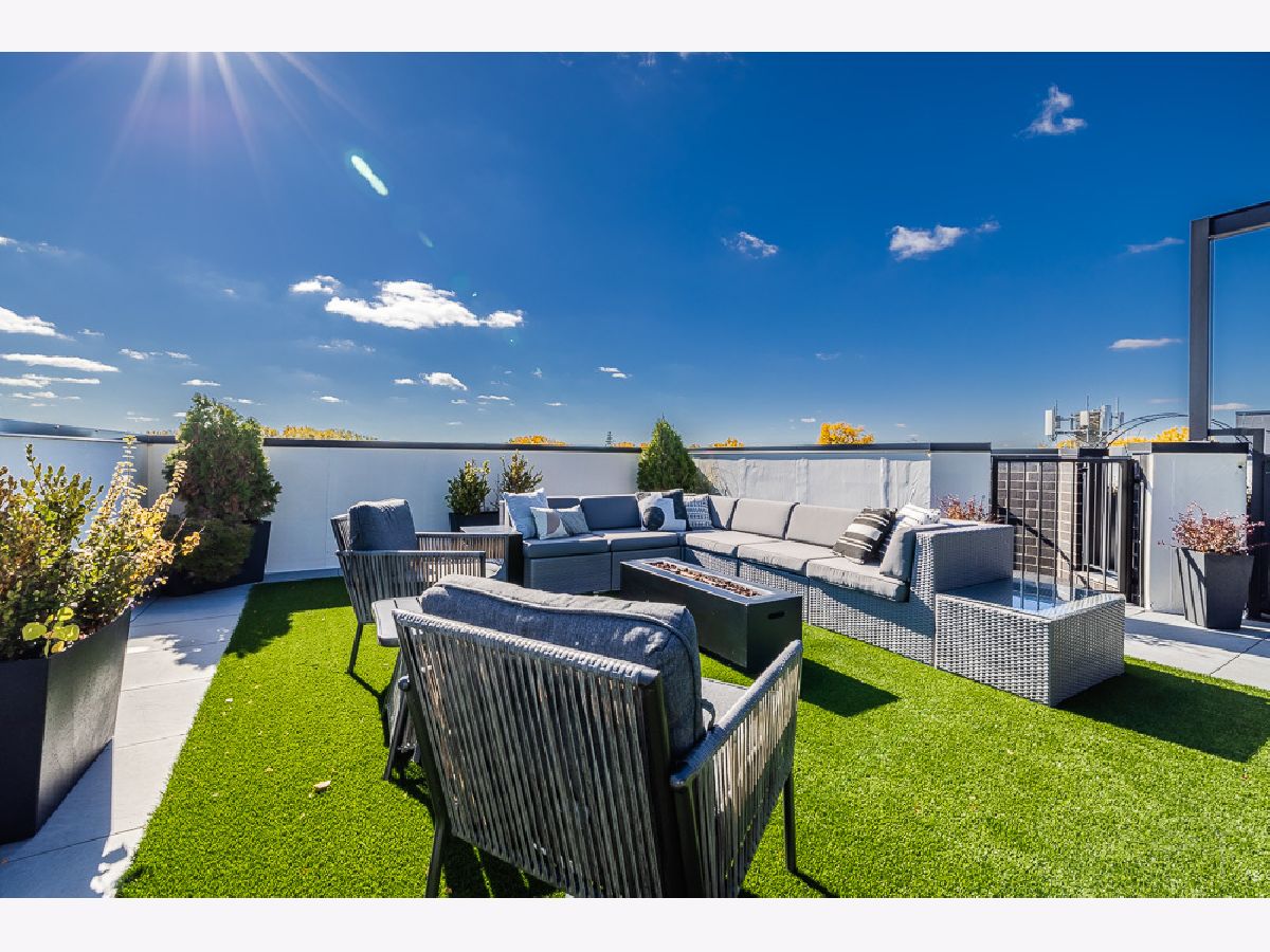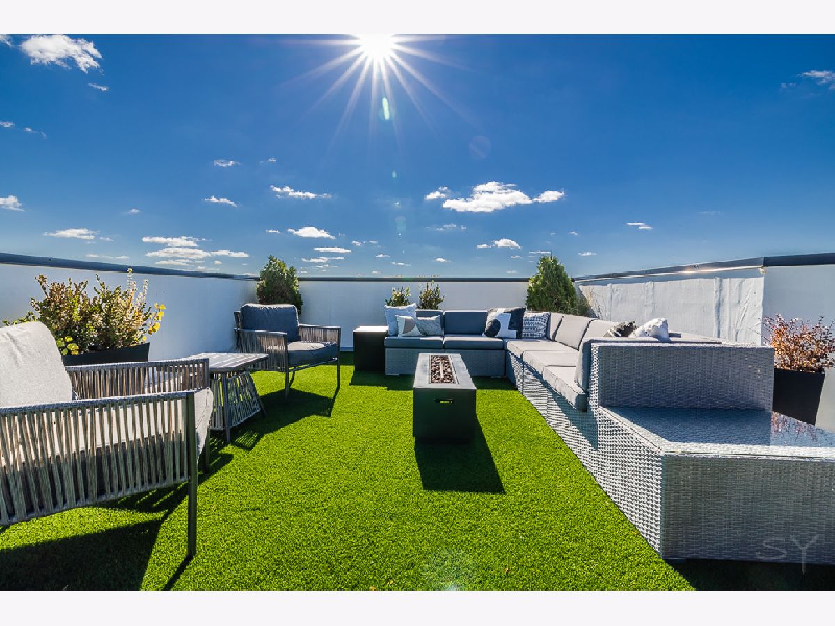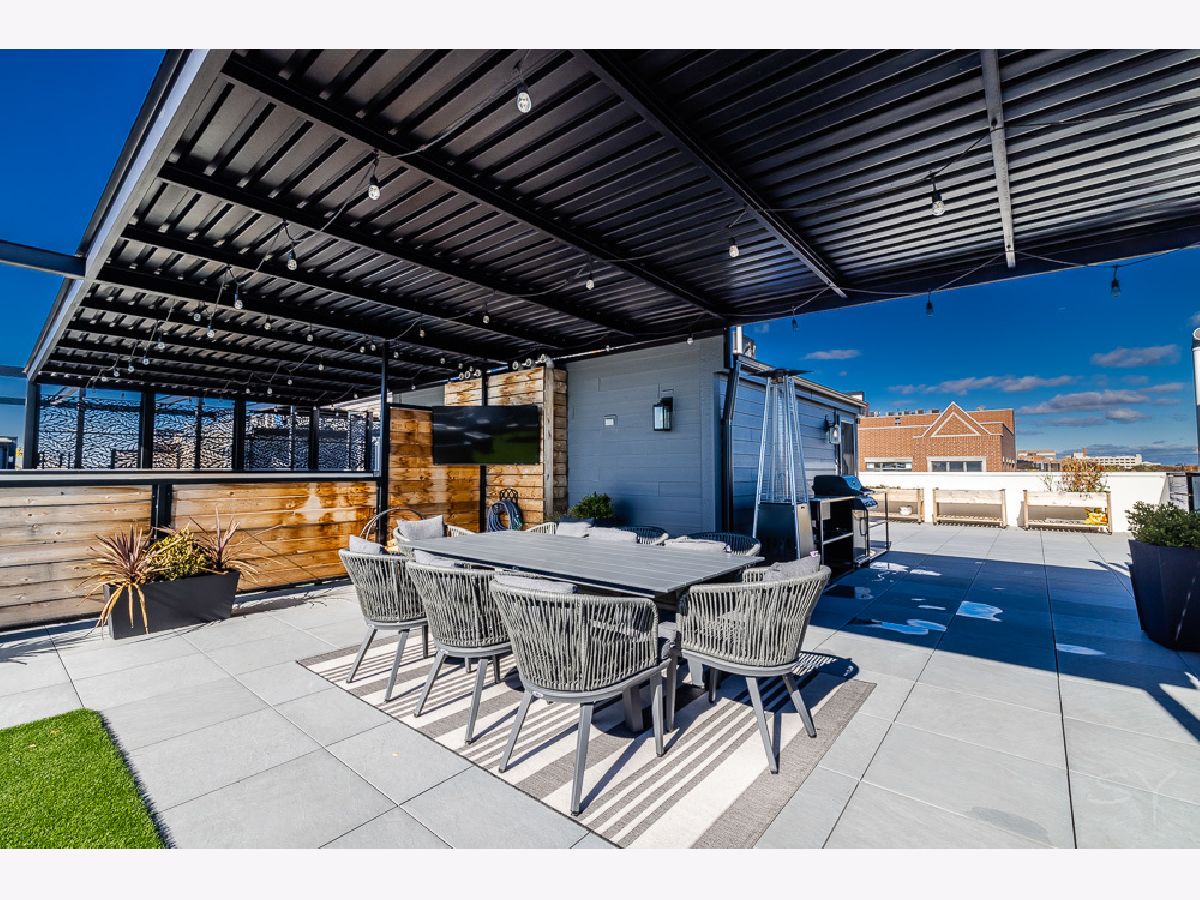 Almost new 3 bedroom 2 bathroom Penthouse featuring amazing outdoor space. Walk into an open Chef's Kitchen with large 10 foot waterfall quartz island. Custom kitchen cabinets and designer fixtures including Bosch and Fisher & Paykel appliances. Two Azure beverage fridges. Large living room with ventless gas fireplace. Separate dining room overlooks the front deck with trex decking. Interior access leads you to a dry bar and out to one of the nicest 1700 square foot private roof top decks you will ever see. The roof deck has porcelain tile pavers and custom turf inlay and custom steel pergola/veranda. Natural gas hookup on front and roof deck with water on the roof deck. The rest of the home is equally as impressive with 8 foot doors, white oak hardwood floors throughout and large bedrooms. Primary bedroom has dual walk in master closets and primary bath includes heated tile floors, double vanity, Mr Steam system, rain shower head, and HansGrohe shower fixtures. Entire home is wired for sound, and has Aprilaire whole home humidifier and de-humidifier systems. Pella windows and additional top level finishes show this builder's attention to detail. Private gate in the rear of building for safe and secure parking in your indoor garage. Nothing like it on the market. Steps to the Square, Trains, River Park, North Shore Channel Trail, the Galter Life Center, and everything the City has to offer.