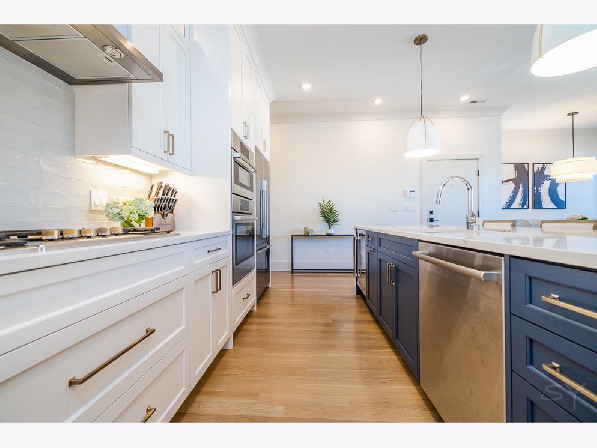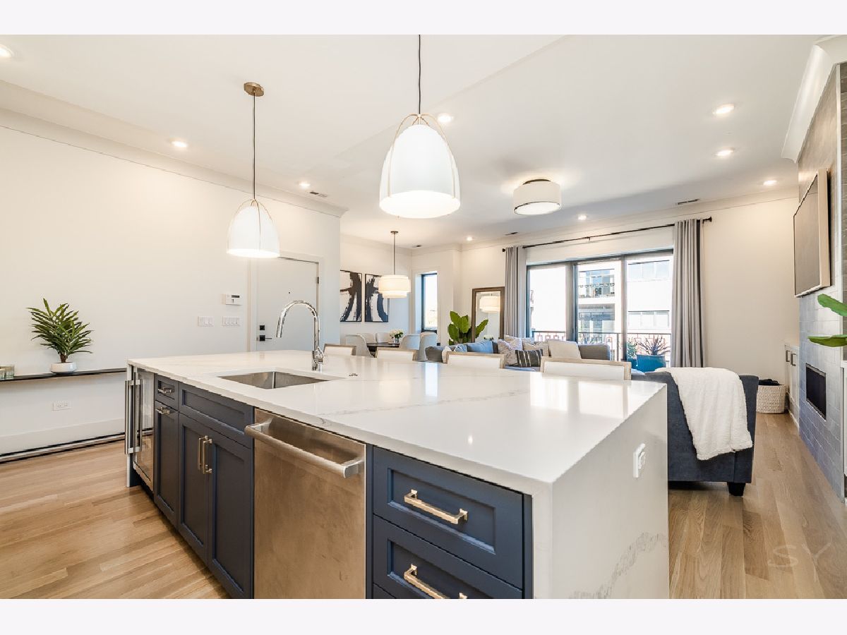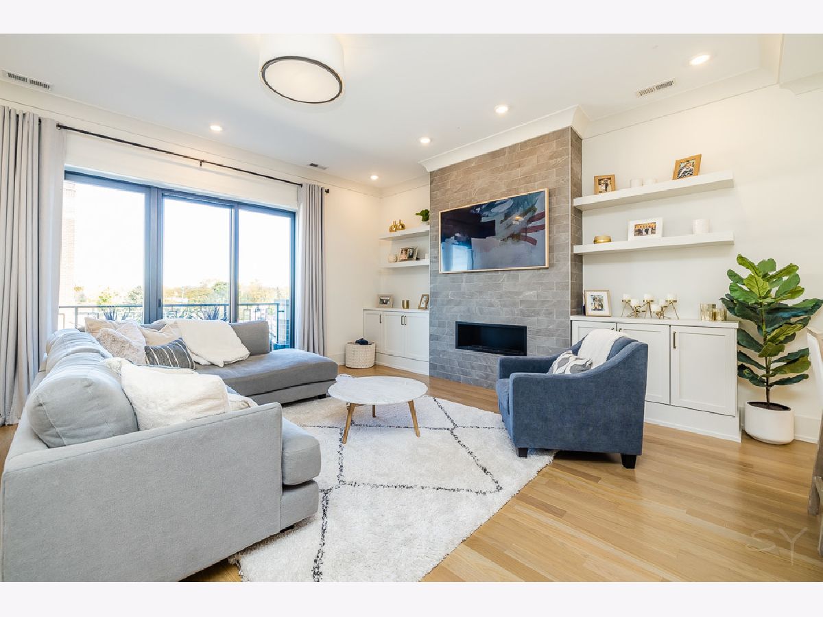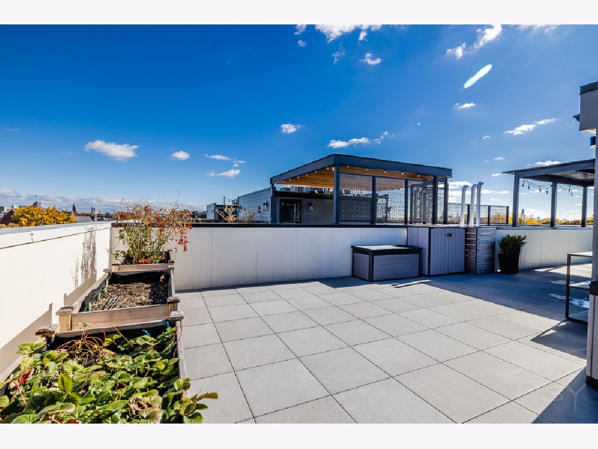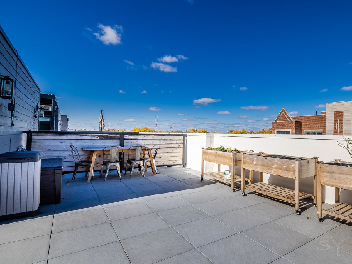 Almost new 3 bedroom 2 bathroom Penthouse featuring amazing outdoor space. Walk into an open Chef's Kitchen with large 10 foot waterfall quartz island. Custom kitchen cabinets and designer fixtures including Bosch and Fisher & Paykel appliances. Two Azure beverage fridges. Large living room with ventless gas fireplace. Separate dining room overlooks the front deck with trex decking. Interior access leads you to a dry bar and out to one of the nicest 1700 square foot private roof top decks you will ever see. The roof deck has porcelain tile pavers and custom turf inlay and custom steel pergola/veranda. Natural gas hookup on front and roof deck with water on the roof deck. The rest of the home is equally as impressive with 8 foot doors, white oak hardwood floors throughout and large bedrooms. Primary bedroom has dual walk in master closets and primary bath includes heated tile floors, double vanity, Mr Steam system, rain shower head, and HansGrohe shower fixtures. Entire home is wired for sound, and has Aprilaire whole home humidifier and de-humidifier systems. Pella windows and additional top level finishes show this builder's attention to detail. Private gate in the rear of building for safe and secure parking in your indoor garage. Nothing like it on the market. Steps to the Square, Trains, River Park, North Shore Channel Trail, the Galter Life Center, and everything the City has to offer.