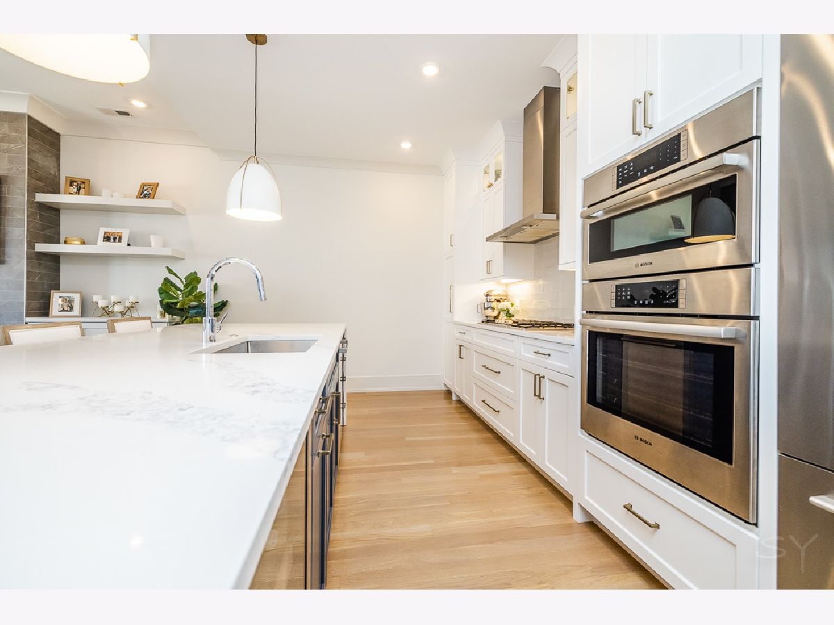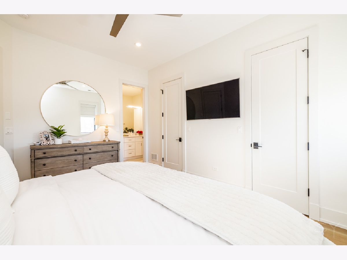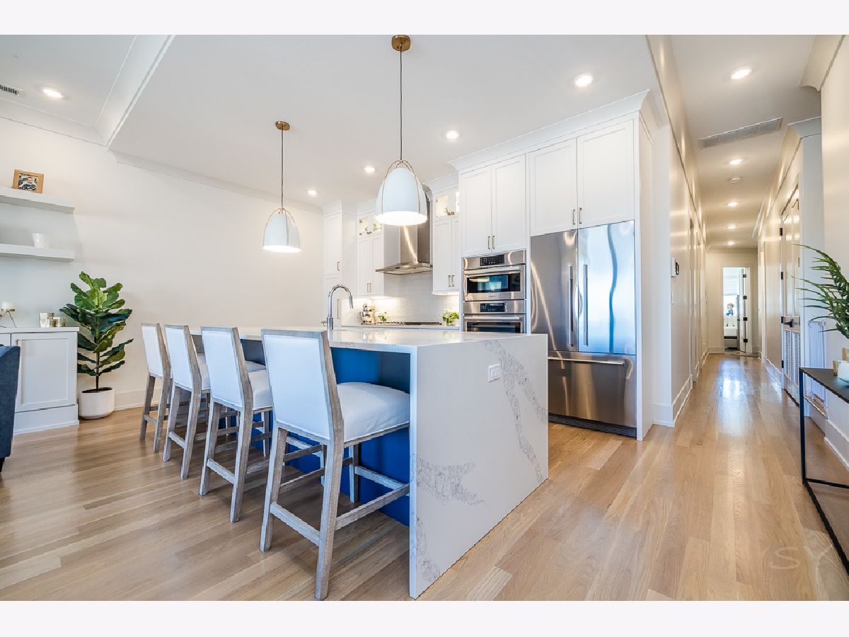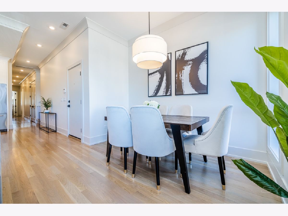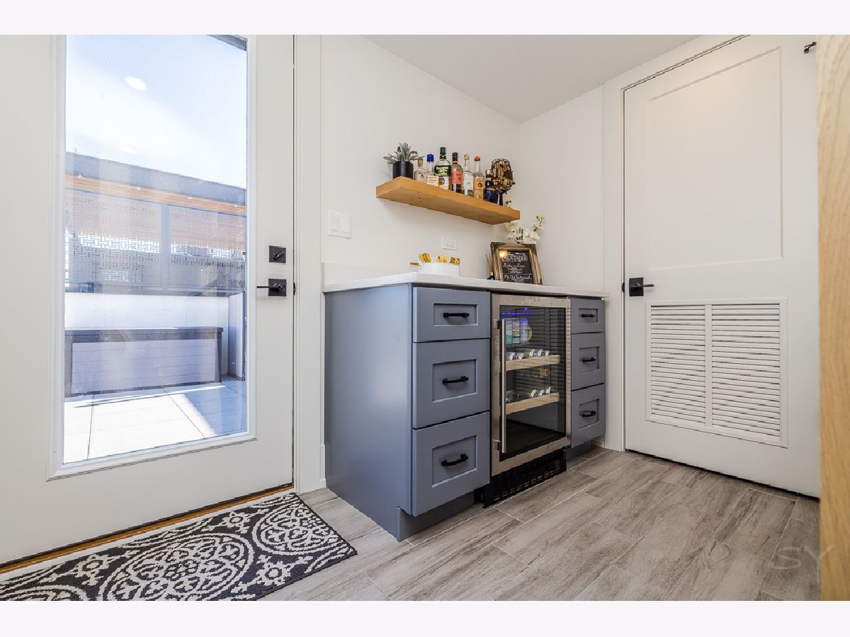 Almost new 3 bedroom 2 bathroom Penthouse featuring amazing outdoor space. Walk into an open Chef's Kitchen with large 10 foot waterfall quartz island. Custom kitchen cabinets and designer fixtures including Bosch and Fisher & Paykel appliances. Two Azure beverage fridges. Large living room with ventless gas fireplace. Separate dining room overlooks the front deck with trex decking. Interior access leads you to a dry bar and out to one of the nicest 1700 square foot private roof top decks you will ever see. The roof deck has porcelain tile pavers and custom turf inlay and custom steel pergola/veranda. Natural gas hookup on front and roof deck with water on the roof deck. The rest of the home is equally as impressive with 8 foot doors, white oak hardwood floors throughout and large bedrooms. Primary bedroom has dual walk in master closets and primary bath includes heated tile floors, double vanity, Mr Steam system, rain shower head, and HansGrohe shower fixtures. Entire home is wired for sound, and has Aprilaire whole home humidifier and de-humidifier systems. Pella windows and additional top level finishes show this builder's attention to detail. Private gate in the rear of building for safe and secure parking in your indoor garage. Nothing like it on the market. Steps to the Square, Trains, River Park, North Shore Channel Trail, the Galter Life Center, and everything the City has to offer.