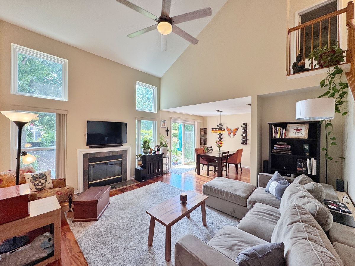 Welcome home to this charming townhome in a quiet, well-maintained subdivision in prime Itasca! This beautifully updated two-story residence offers the perfect combination of modern finishes, spacious design, and an abundance of natural light throughout. With 2 bedrooms, 2.5 bathrooms, and an office flexible space off the kitchen-ideal for a home office, study, or play area-this home is as functional as it is stylish. Enjoy the convenience of a heated, attached 2-car garage and a private back patio perfect for relaxing or entertaining. From the moment you arrive, you'll notice the tasteful exterior with modern, sharp colors that complement the entire subdivision. Step inside to find soaring 18-foot cathedral ceilings in the living room, anchored by a stunning centerpiece fireplace. The main level features new wood laminate flooring, a spacious kitchen with stainless steel appliances, and an abundance of pantry cabinetry. All windows have been replaced with high-efficiency Feldco windows, and an Andersen sliding glass door provides added comfort and energy savings year-round. The open-concept living and dining area flows seamlessly to the patio, creating an inviting atmosphere. A guest powder room and convenient laundry room with wash basin complete the main floor. Upstairs, the layout offers privacy with bedrooms on opposite sides. The spacious primary suite easily fits a king-sized bed and includes a walk-in closet with custom organizers, a second closet, a full en-suite bathroom with double sinks, a linen closet, and plenty of storage. A second full bathroom is located off the hall for ease of use from the second bedroom. Ideally located just minutes from the Itasca Metra station, major expressways, parks, shopping, and more, this home is perfectly situated in a desirable neighborhood. The well-managed association has recently completed exterior updates, offering both comfort and peace of mind. Improvements include: Kitchen appliances 7/2020, AC Compressor 7/2020, Siding 2021/22, Roof 2014, Driveways Replaced 2016/Resealed 2024, Windows 5/2013 Garage Door 2018. No Rental cap, Investors welcomed!