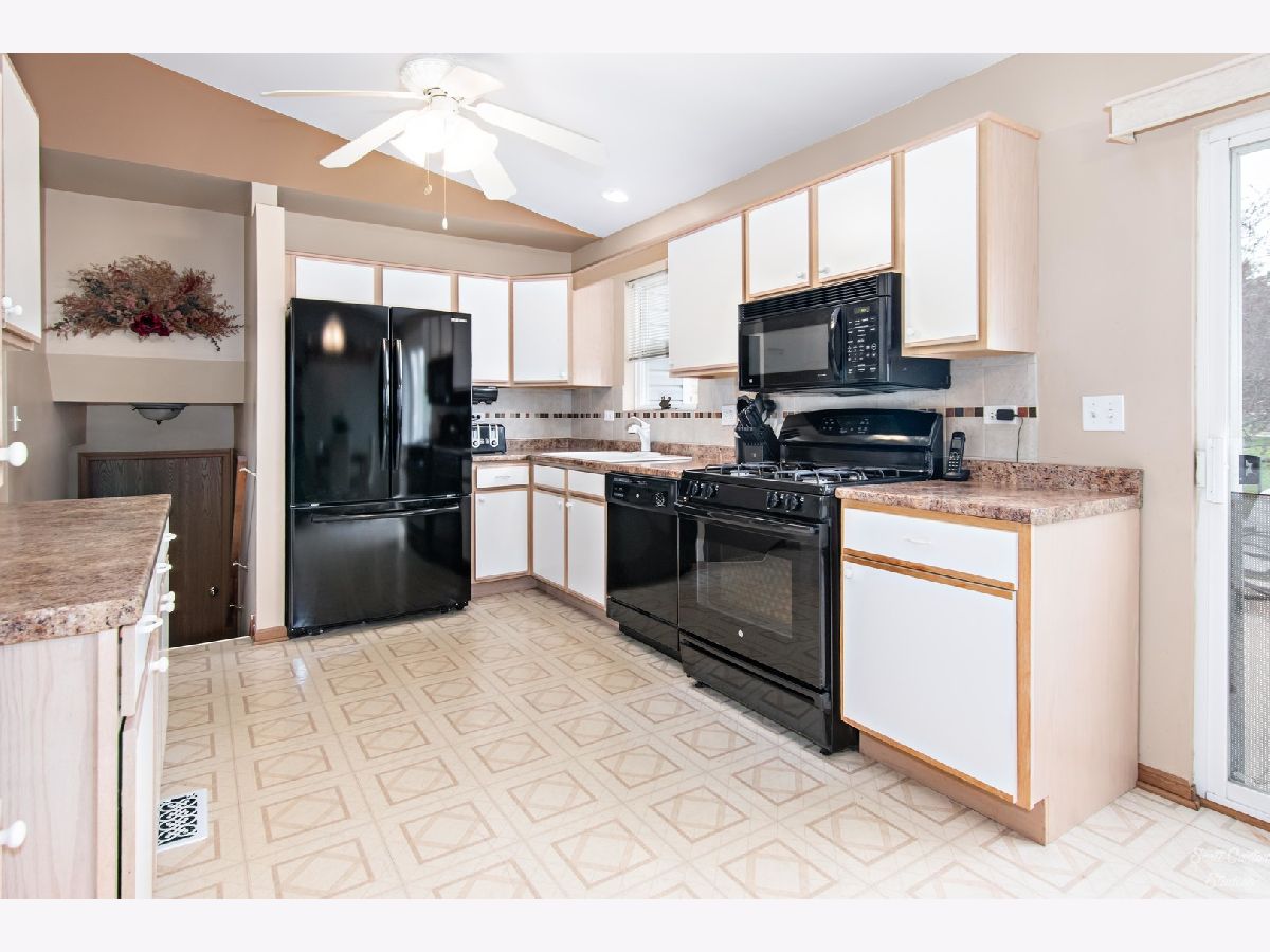 This fabulous-sized home is located in the desirable Meadowbrook Subdivision! Walking distance to Sunset Park! Excellent Huntley School district! This home is so spacious! Features vaulted ceilings in the living room and kitchen. Kitchen has tons of cabinets and an eat-in area that opens to the patio and yard! All appliances stay! A spacious primary bedroom with a large walk-in closet. An oversized family room with a wall of windows that lets in lots of natural light and opens to a den! Bonus basement with exhaust fans! Included in the basement is a pool table and shelved towers to show off your treasures, along with storage! Large fenced-in yard with professional landscaping! *WHAT'S NEW AND WHEN? 2020: New garage door with opener with keypad and 2 remotes. (includes MyQ wifi technology) *Dec 2020: WatchDog back-up battery. *November 2020: New water heater. *May 2020: New ejector pump. *October 2019: New furnace *2012: New roof/Vinyl siding.