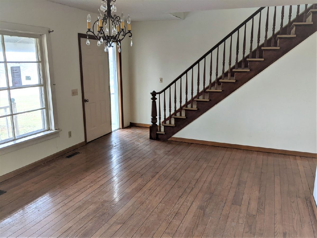 Country property - 3BR/2BA/2car resting on almost 3 acres. Lots of room for family fun and activities outdoors or relax on the large front porch. Hardwood flooring in the dining room, living room and 2 bedrooms. Lots of natural light, built-in bookcase in living room, updates to the kitchen and both bathrooms. Separate staircase in kitchen leads to master bedroom. Full unfinished basement with tall ceilings. Property to sell in as/is condition.