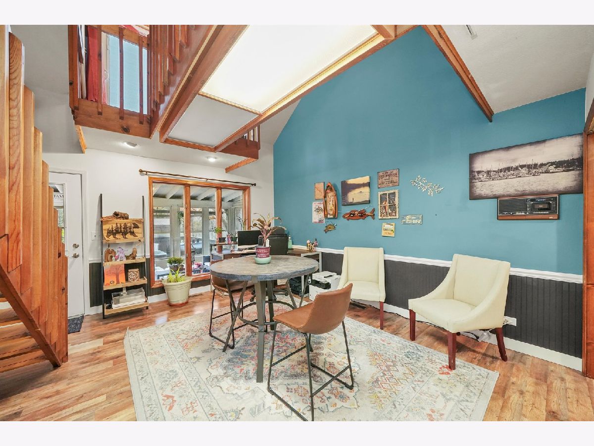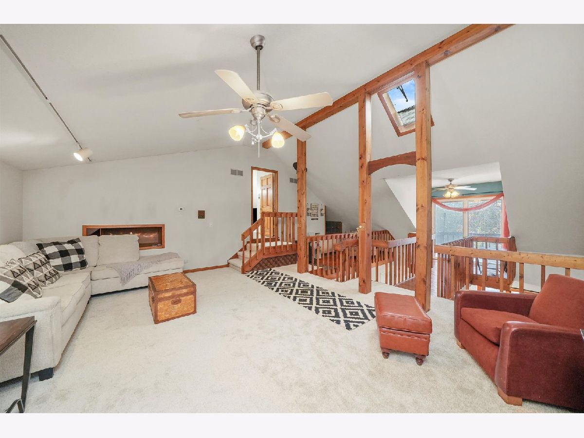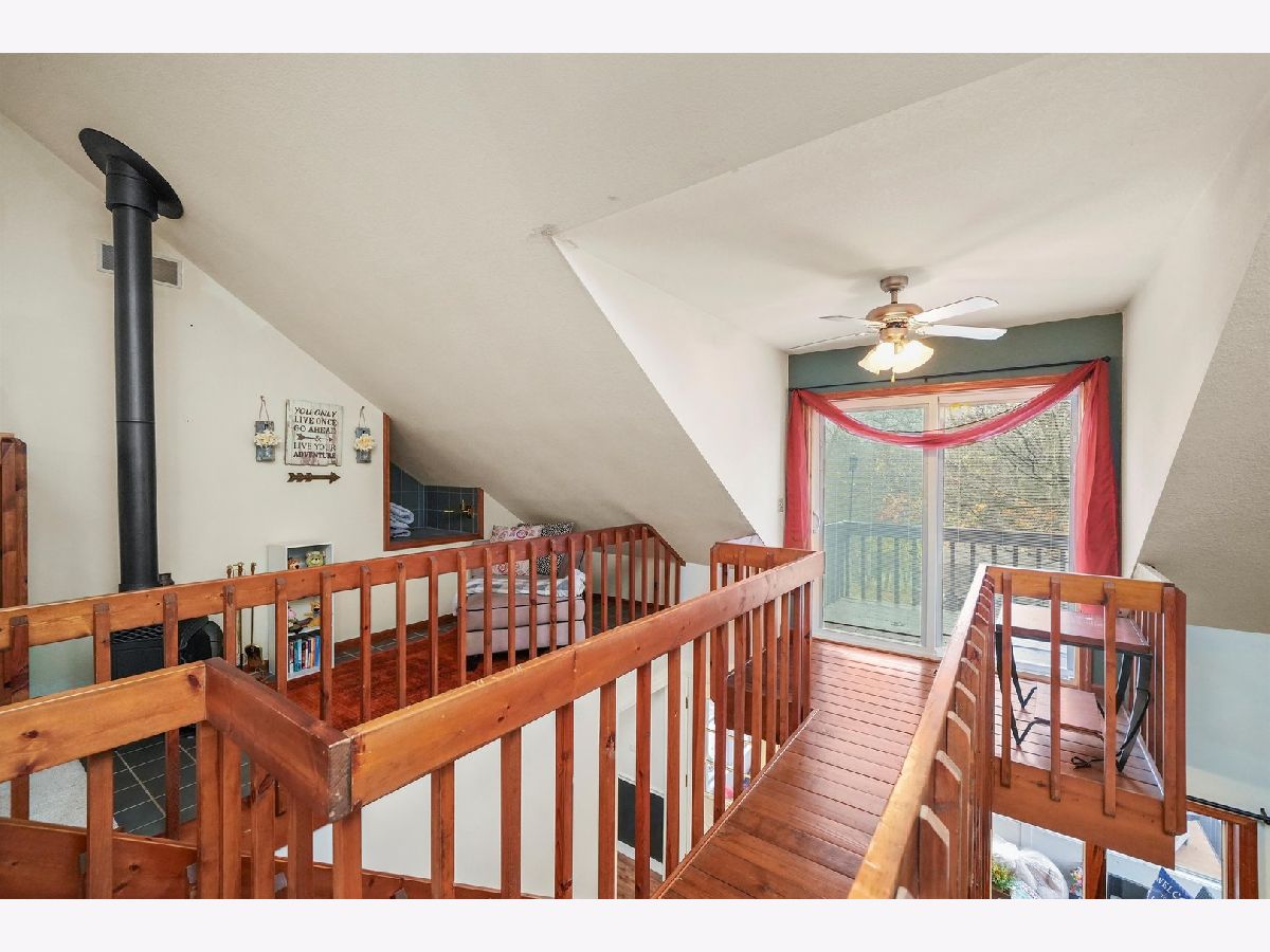 Enjoy wildlife in your own backyard! This UNIQUE 2-story, 7 room, 2 bedroom, 2 bath, renovated home, is surrounded by beauty and nature, overlooking Davis Creek (not on flood plain) on private cul-de-sac. It is situated on wooded .43 acre parcel and located in unincorporated area of Bourbonnais. The welcoming double entry doors have built-in blinds. The living and dining rooms have been opened up, by removing a wall, has 10' ceilings, crown molding, new light fixtures and vinyl flooring. The enhanced spacious kitchen, with open concept, canned lights, offers 10' ceilings, new porcelain flooring, fixtures, newer stainless steel kitchen appliances (refrigerator, oven & dishwasher). Also, the full bathroom has been modernized. In addition, the combination utility room//laundry room was updated and features newer vinyl flooring, washer, dryer, hot water tank and water softener. There is one bedroom on the main level. There is a large office (for remote work), with new vinyl flooring, light fixture and is located across an 8x16 enclosed screened porch, with amazing views of nature! The main floor oversized bedroom offers new carpeting and walk-in closet. On the second floor you will find a large family room with vaulted ceilings, a new ceiling fan and new carpeting, with easy access to a pine catwalk/walkway to a balcony. In addition, there is a cozy sitting area, with a Franklin stove, perfect for quiet time or reading. The distinctive custom master suite and master bathroom, features vaulted ceilings, a walk-in closet, new carpeting and a skylight. It also has a separate tiled area, around the Jacuzzi tub, with a toilet and vanity in a separate bathroom area. Upon driving up to this home, you will enter via a shared horseshoe asphalt driveway. There also is a concrete side drive/slab where boats and RV's can be parked. You can build a 1 car garage or the area is perfect for a boat or camper parking and or/parking for 7 cars. Relax in your backyard by sitting by the fire pit and/or entertaining on the large multi-tiered deck, which has lighting, using power outlets. For additional outdoor storage, or if you need a special area to work on projects, you will LOVE the detached 12x16 shed, with electric, loft and workbench, which is perfect for all your needs. In addition, there is an attached 10x10 storage shed, with a ramp, currently used for yard equipment and tools. This property has a shared well & septic, with an agreement, transferrable to new owners. Per the shared agreement, the owners of this home are responsible to take care of the septic system every 4 years. The septic was cleaned in 2024. New roof in 2021. Move in condition. Embrace peaceful country living and make this your dream home!