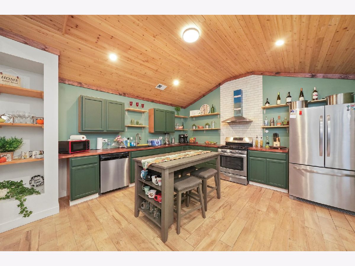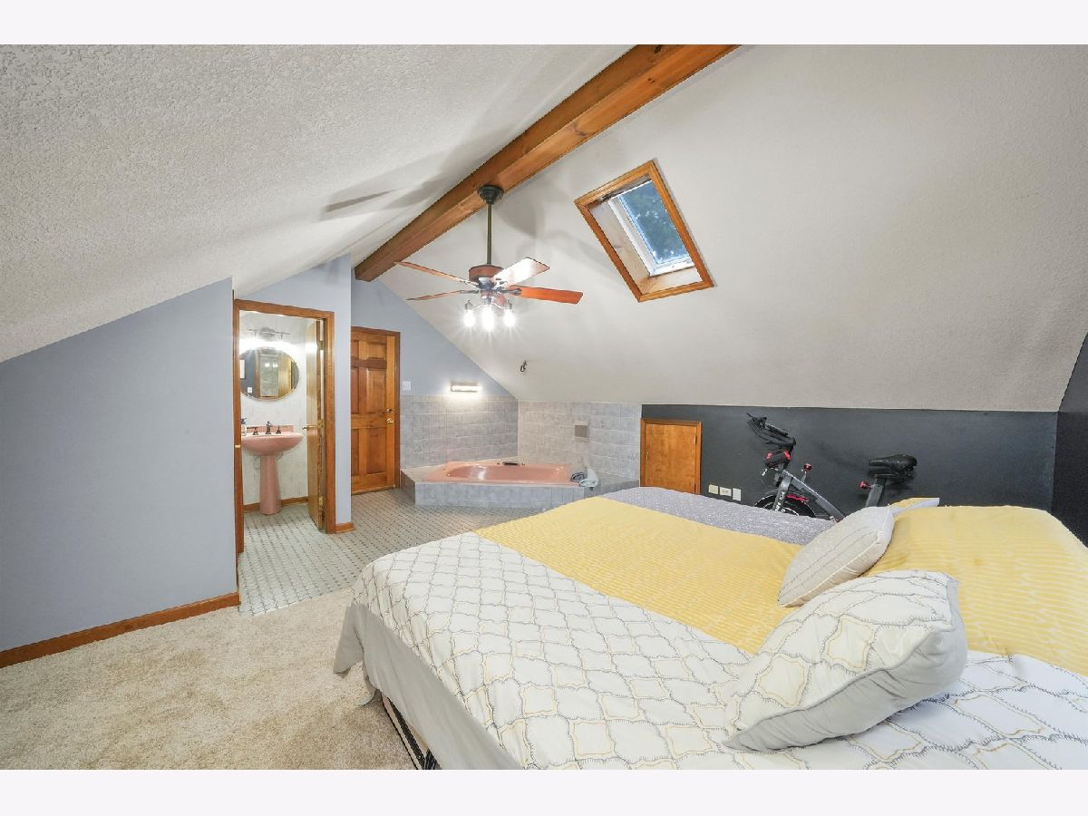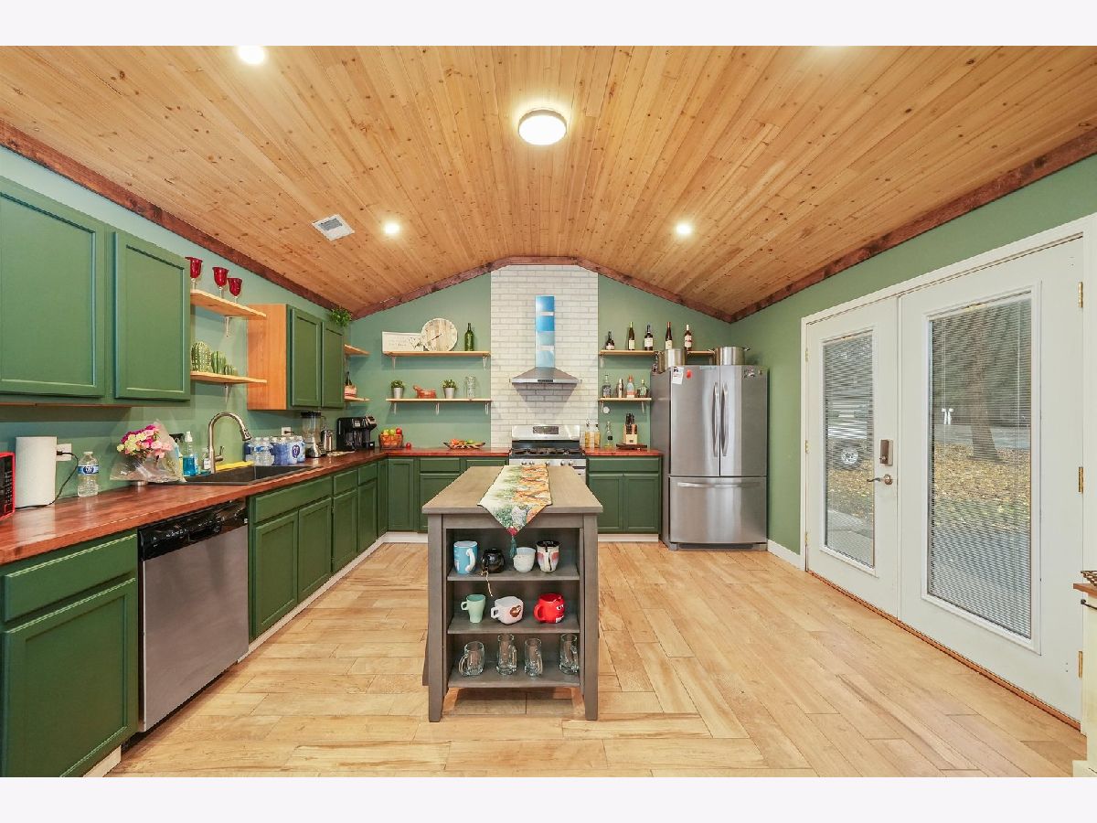 Enjoy wildlife in your own backyard! This UNIQUE 2-story, 7 room, 2 bedroom, 2 bath, renovated home, is surrounded by beauty and nature, overlooking Davis Creek (not on flood plain) on private cul-de-sac. It is situated on wooded .43 acre parcel and located in unincorporated area of Bourbonnais. The welcoming double entry doors have built-in blinds. The living and dining rooms have been opened up, by removing a wall, has 10' ceilings, crown molding, new light fixtures and vinyl flooring. The enhanced spacious kitchen, with open concept, canned lights, offers 10' ceilings, new porcelain flooring, fixtures, newer stainless steel kitchen appliances (refrigerator, oven & dishwasher). Also, the full bathroom has been modernized. In addition, the combination utility room//laundry room was updated and features newer vinyl flooring, washer, dryer, hot water tank and water softener. There is one bedroom on the main level. There is a large office (for remote work), with new vinyl flooring, light fixture and is located across an 8x16 enclosed screened porch, with amazing views of nature! The main floor oversized bedroom offers new carpeting and walk-in closet. On the second floor you will find a large family room with vaulted ceilings, a new ceiling fan and new carpeting, with easy access to a pine catwalk/walkway to a balcony. In addition, there is a cozy sitting area, with a Franklin stove, perfect for quiet time or reading. The distinctive custom master suite and master bathroom, features vaulted ceilings, a walk-in closet, new carpeting and a skylight. It also has a separate tiled area, around the Jacuzzi tub, with a toilet and vanity in a separate bathroom area. Upon driving up to this home, you will enter via a shared horseshoe asphalt driveway. There also is a concrete side drive/slab where boats and RV's can be parked. You can build a 1 car garage or the area is perfect for a boat or camper parking and or/parking for 7 cars. Relax in your backyard by sitting by the fire pit and/or entertaining on the large multi-tiered deck, which has lighting, using power outlets. For additional outdoor storage, or if you need a special area to work on projects, you will LOVE the detached 12x16 shed, with electric, loft and workbench, which is perfect for all your needs. In addition, there is an attached 10x10 storage shed, with a ramp, currently used for yard equipment and tools. This property has a shared well & septic, with an agreement, transferrable to new owners. Per the shared agreement, the owners of this home are responsible to take care of the septic system every 4 years. The septic was cleaned in 2024. New roof in 2021. Move in condition. Embrace peaceful country living and make this your dream home!
