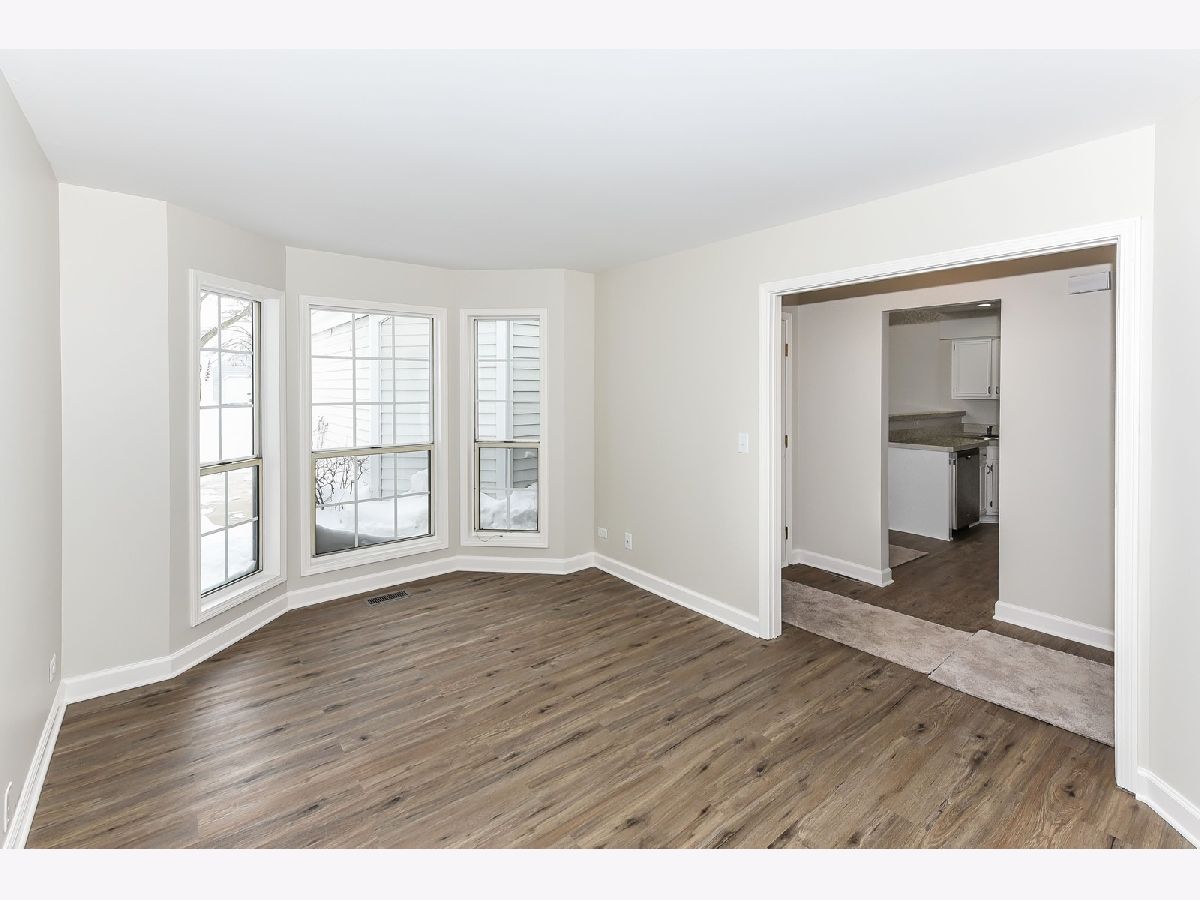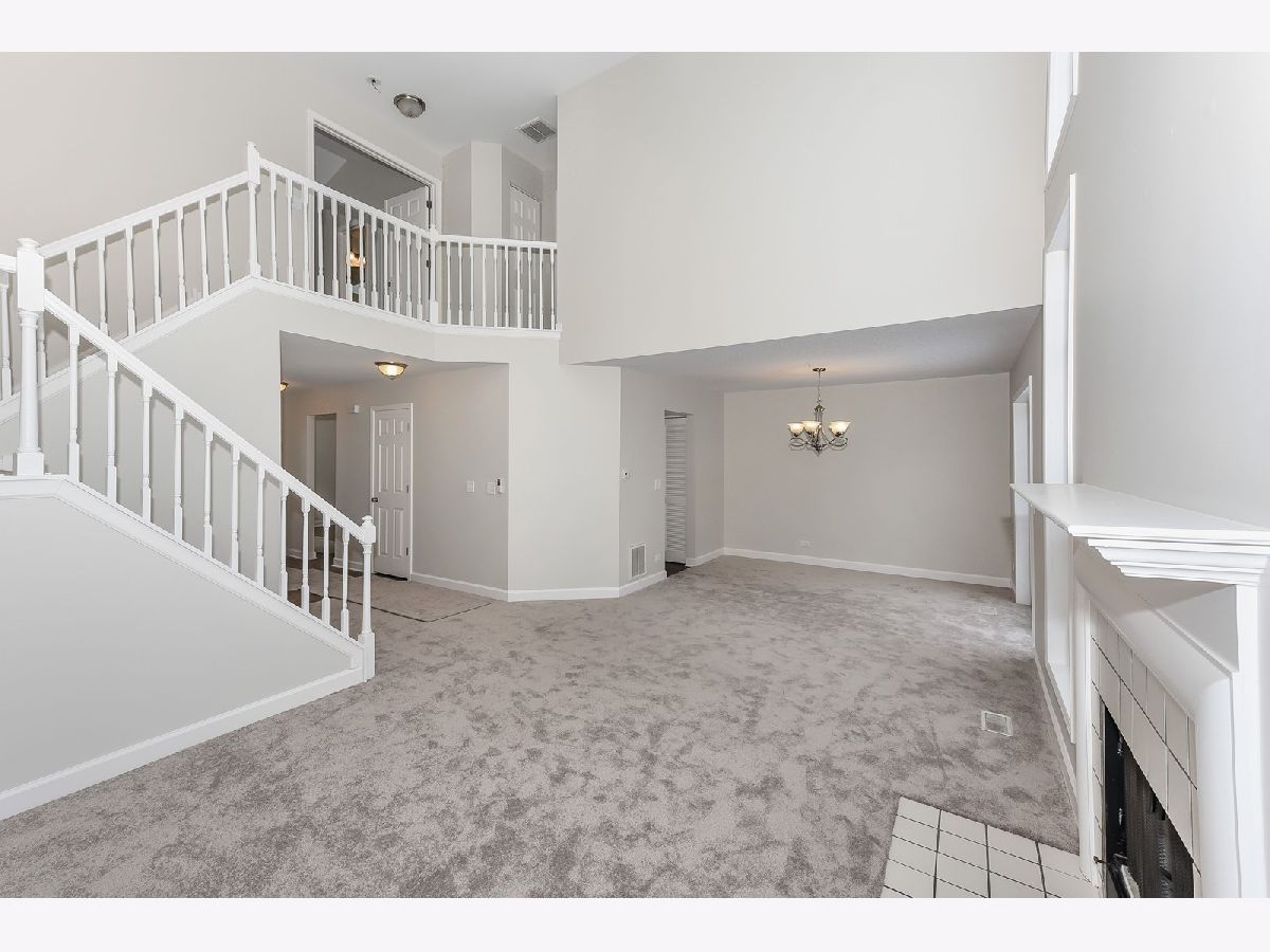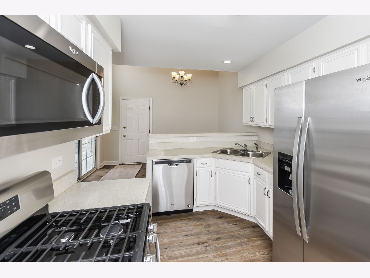 REHABBED TOWNHOME in desirable Lakepointe Subdivision with lake access to Bangs Lake; LOTS NEW INCLUDING: SS KITCHEN APPLIANCES - refrigerator, oven, dishwasher, garbage disposal, microwave and sink; New Carpeting throughout and vinyl wood-like plank flooring; New paint throughout; New toilets and mostly new lighting; New vanity top with double sink in Master Bath; TWO CAR DIRECT ENTRY GARAGE; Extra room for an office/den; Roomy eating area in Kitchen area; Outside patio for summer use and grilling; Amenities include community pool, beach, walking path near lake, snow removal, outside maintenance. In a great area with restaurants, conservation area and a dog park nearby. Located on cul-de-sac street. Extra parking in middle of street. Being sold "as" because the home is owned by a trust company, but per contract terms buyer may have an inspection. A very nice townhome in a great location!!!