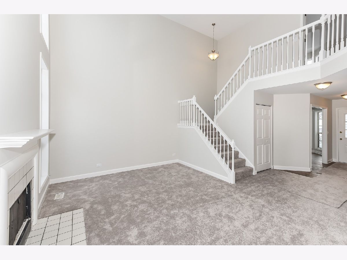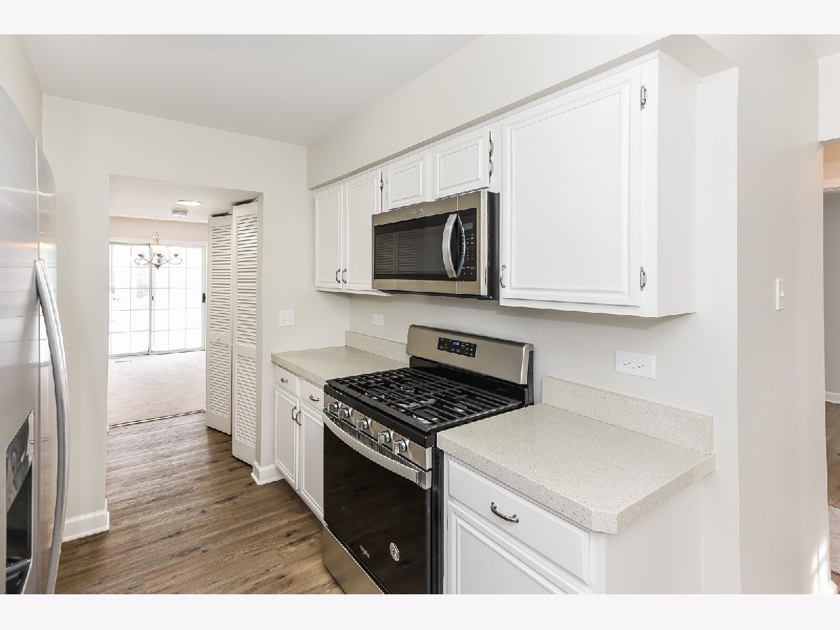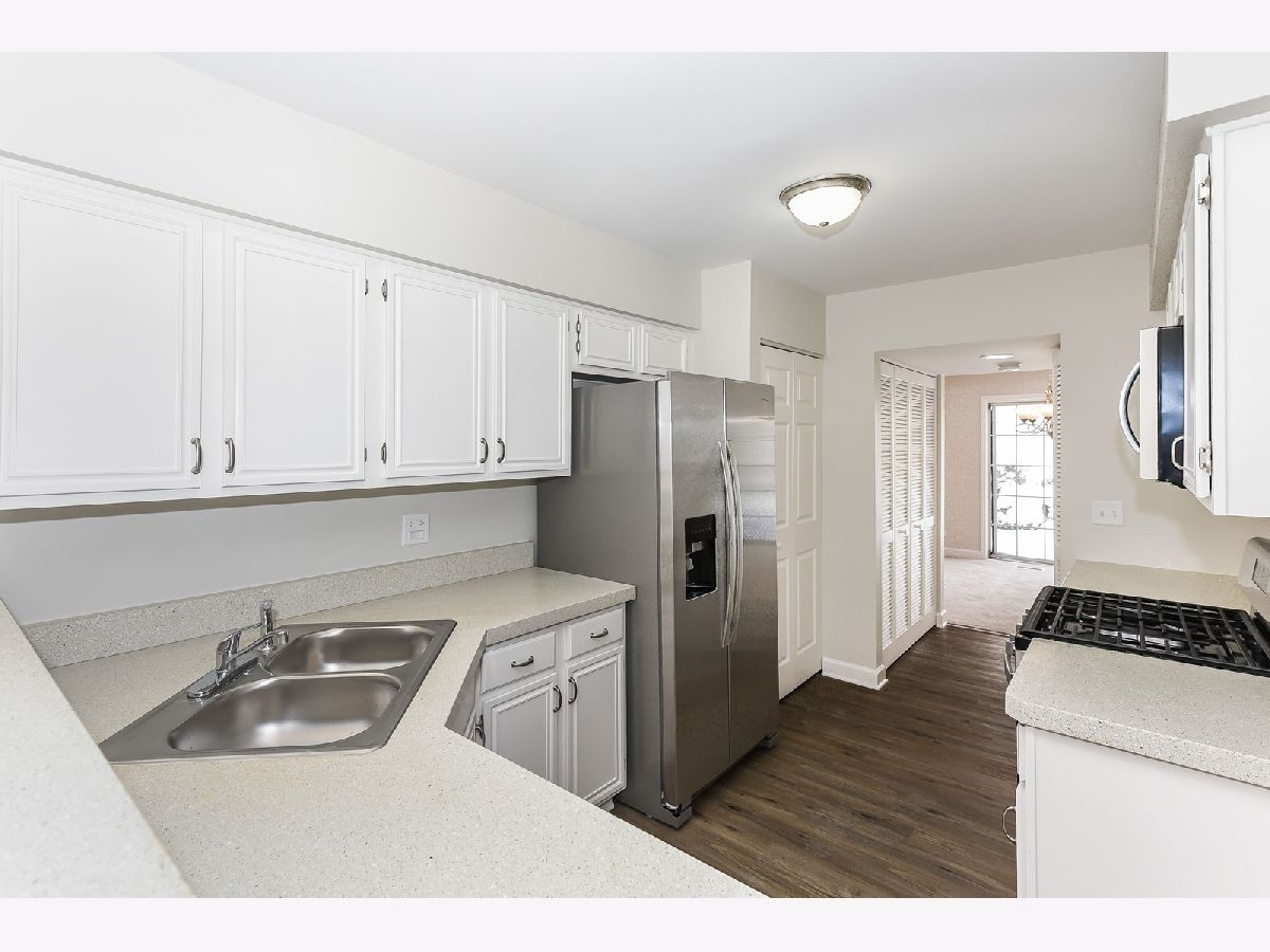 REHABBED TOWNHOME in desirable Lakepointe Subdivision with lake access to Bangs Lake; LOTS NEW INCLUDING: SS KITCHEN APPLIANCES - refrigerator, oven, dishwasher, garbage disposal, microwave and sink; New Carpeting throughout and vinyl wood-like plank flooring; New paint throughout; New toilets and mostly new lighting; New vanity top with double sink in Master Bath; TWO CAR DIRECT ENTRY GARAGE; Extra room for an office/den; Roomy eating area in Kitchen area; Outside patio for summer use and grilling; Amenities include community pool, beach, walking path near lake, snow removal, outside maintenance. In a great area with restaurants, conservation area and a dog park nearby. Located on cul-de-sac street. Extra parking in middle of street. Being sold "as" because the home is owned by a trust company, but per contract terms buyer may have an inspection. A very nice townhome in a great location!!!