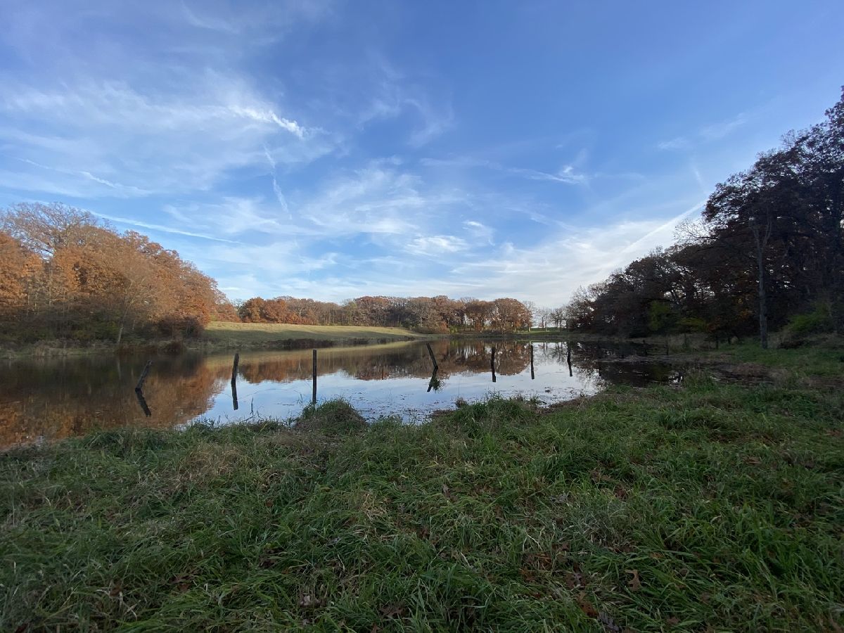Looking for peaceful country living? ALL BRICK RANCH sits on 2.5 wooded ACRES and has 170' of WATERFRONT small private lake in unincorporated Crete! This home offers hardwood floors throughout with beautiful views from all sides allowing natural light, and provides excellent entertaining space! The living room has a large bay window and flows into the dining area and eat-in kitchen which also has a bow window. The kitchen has white, hardwood soft close cabinetry, Quartz countertops and stainless steel appliances. Main level laundry room with utility sink includes washer and dryer. Cozy MAIN LEVEL FAMILY ROOM with woodburning FIREPLACE! 4 bedrooms include master suite with walk-in closet, master bath with soaker tub & separate shower. 3 additional bedrooms include potential RELATED LIVING wing with bedroom, 2nd full bath & separate entrance! 3rd full bath with skylight! Finished basement with SECOND FIREPLACE! Cedar closet in entry foyer, extra large concrete crawl space, plenty of extra storage, central vac, reverse osmosis system and more! Oversized 2.5 car HEATED garage, large metal car/truck port with power. Swimming pool sold as-is; owner has never used it. MOVE IN READY to welcome you home!