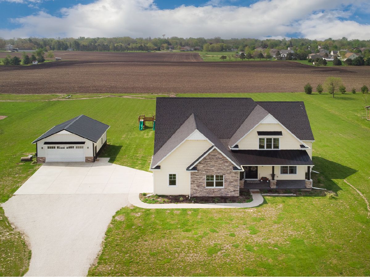 Absolute stunning property! 3 bedroom 2.5 bath house built in 2019 right on the edge of El Paso that sits on 2 acres. Main floor has cathedral ceilings, an office, laundry and master bedroom with a huge walk in shower and dual sink vanity. Upstairs are 2 additional bedrooms, a bathroom with dual sink vanity, a loft, a playroom/office and a bonus room with hidden access, come see for yourself. The basement is ready to be finished with 2 egress windows and a bathroom rough in. Along with the side load 2 car garage there is a 24x32 detached insulated garage/shed with floor drain.