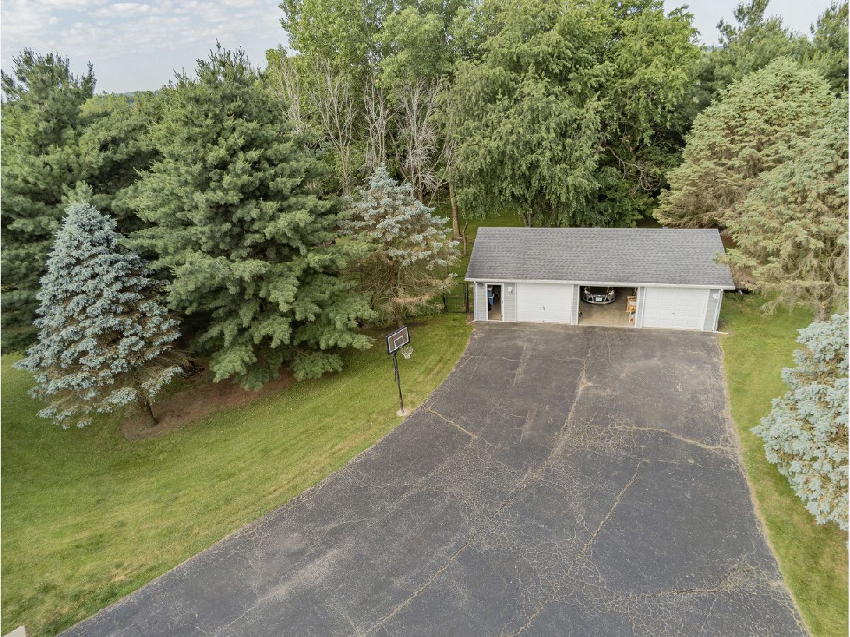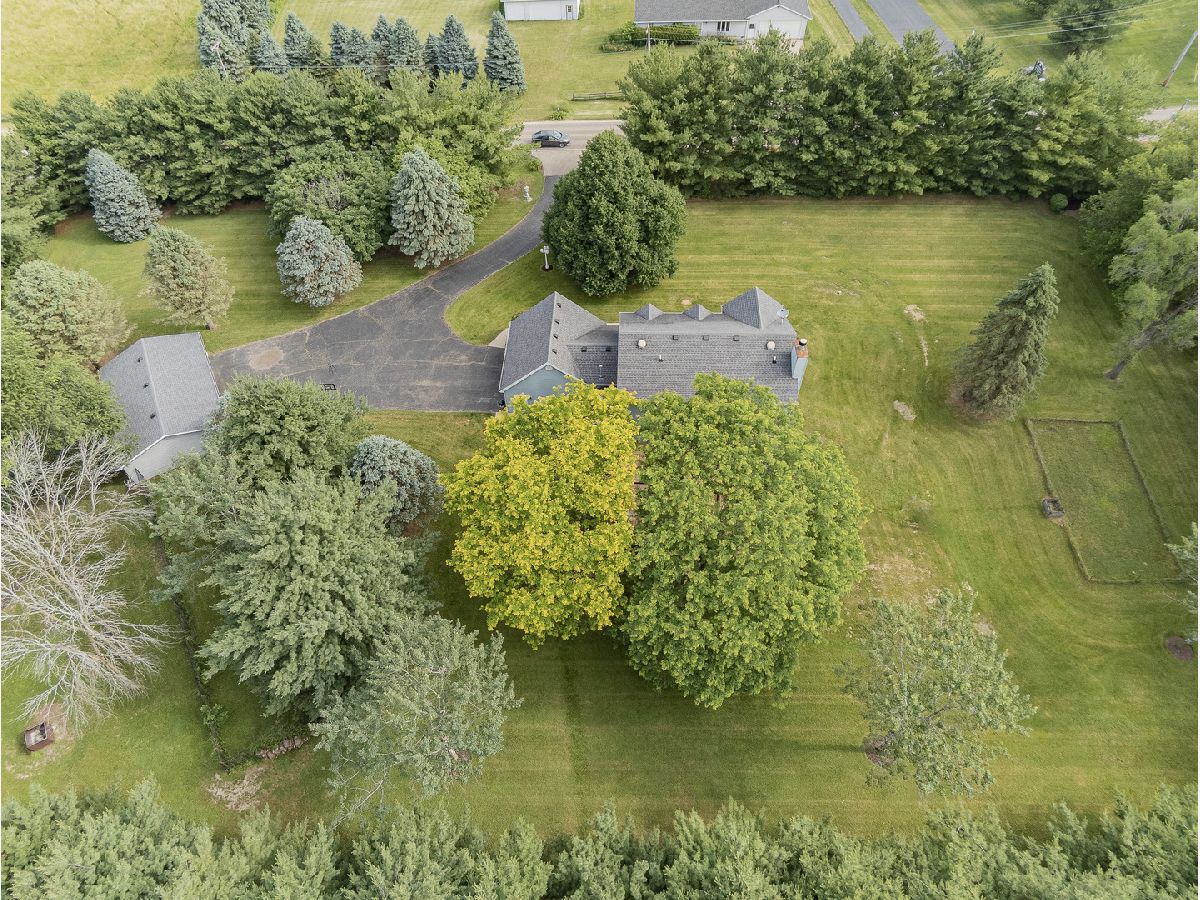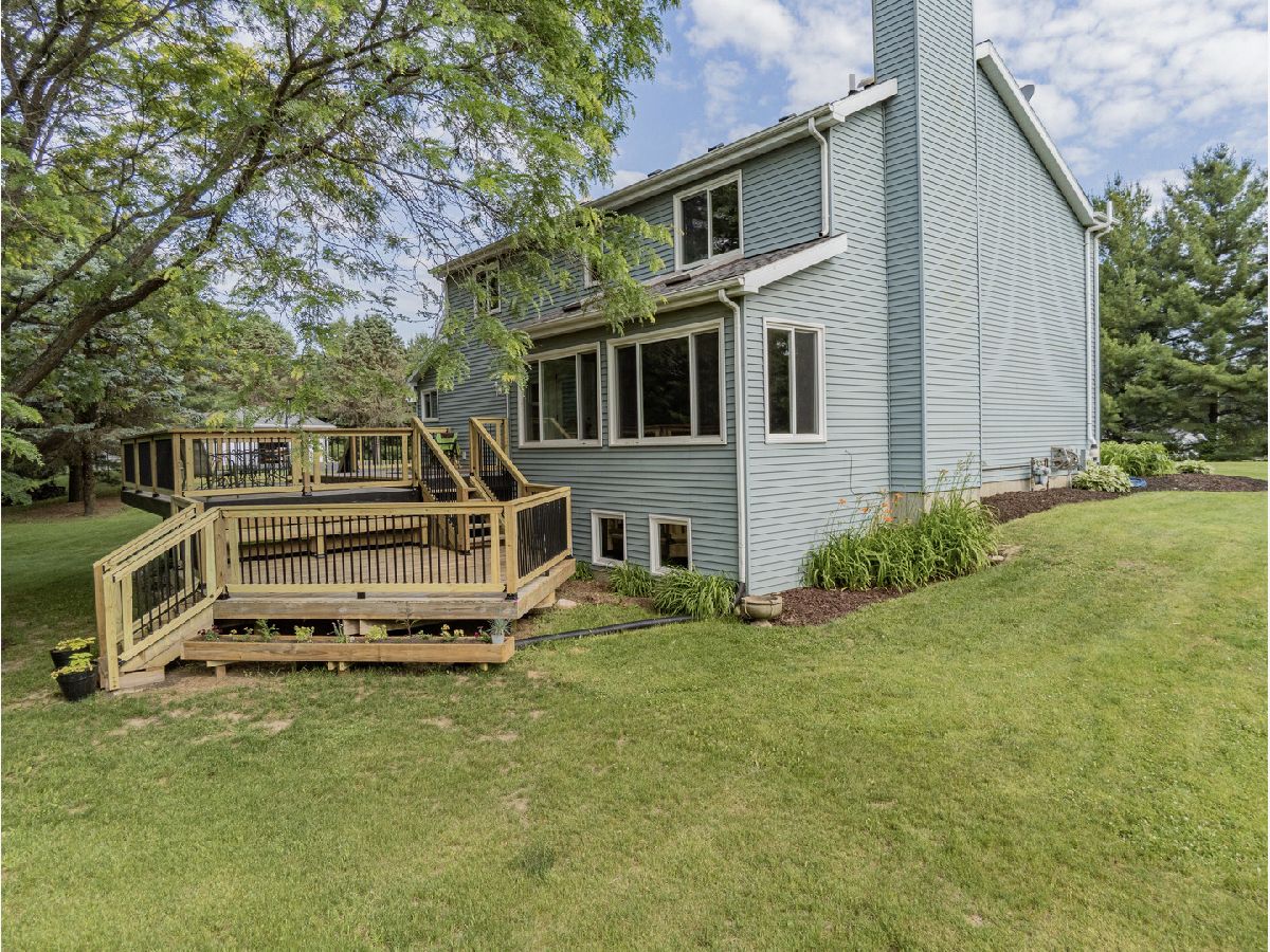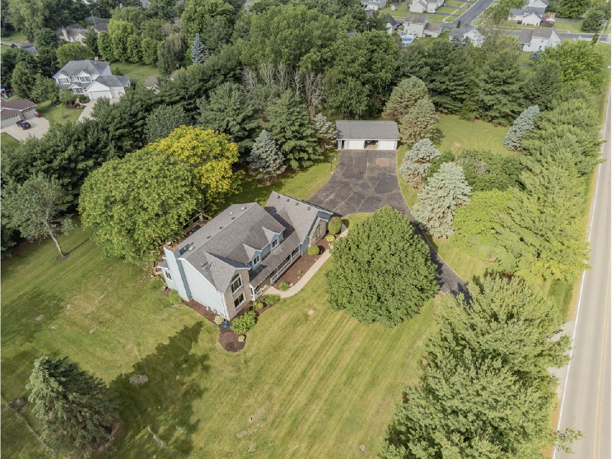 Your very own 2.63 Acre Personal Paradise! Driving up to the lot you notice the mature trees that provide complete privacy despite its convenient location near dinning shopping and more. Between the three car detached and deep two car attached garage there is ample parking. Inside you notice the open main level flooded with natural light from the new Feldco windows. Large chefs kitchen with newer stainless appliances and granite counter tops. The main floor laundry adds to the convenience of the home. Out back is the brand new 700 sq ft deck perfect for entertaining. Upstairs are three spacious bedrooms and two full baths. Down stairs is a beautifully finished basement with fourth bed and private half bath. All carpets were recently professionally cleaned, hvac 2012, septic pumped 2 years ago, radon mitigation system already installed. Nothing to do but move in and enjoy!!