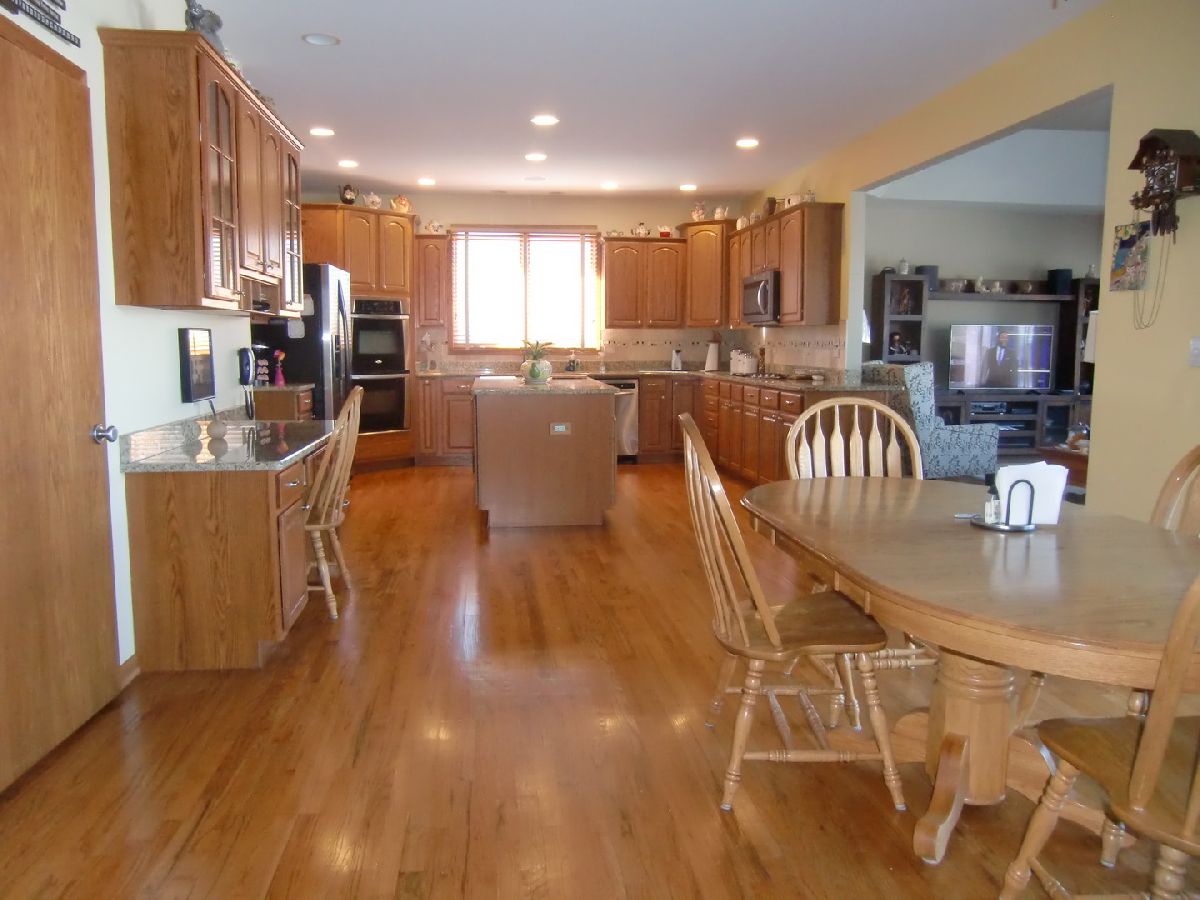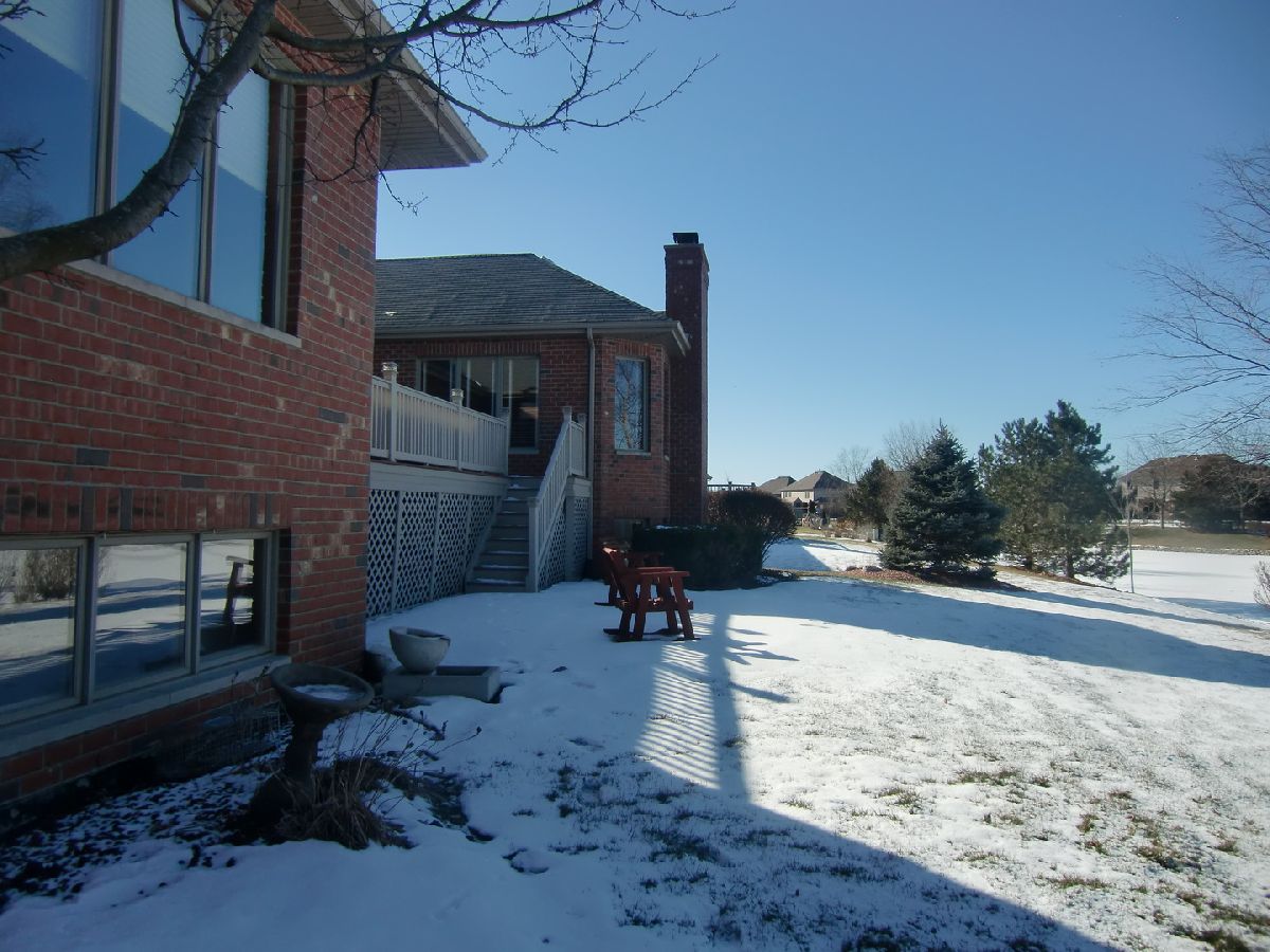 Magnificent custom oversized true ranch with a finished look out basement. This full brick home is one of the largest in the area. Village of New Lenox Certificate of Occupancy states 3158 Sq. Ft and 2027 Sq. Ft in the Basement. Just loaded with xtras. Feature sheet to follow. Owners paid $35K in upgrades. Note the 9 ft celiings upon entry. Many rooms have special designed tray/vaulted ceilings. So spacious with tons of closet and cabinet storage. Some noted xtras are the 75 gal hot water tank, the Elevation C that includes brick quion corners, brick gables, a front porch with post & railings. Also additional hardwood flooring was added, an xtra dig out for the basement and so much more. The enormous kitchen has high end stainless appliances, granite counters, a desk area and a 6ft by 3ft island. All bedrooms have walkin closets.The professionally finished basement pours in direct sunlight and has its own fireplace ,bar area, 3/4 bath and possible 4 th bedroom. With another walk in closet, work shop area , mechanical room and added crawl. You'll never be short of storage. Outside relax on your most spacious and private main free composite deck that overlooks a large pond .Theres also a sprinkling system. Homes like this are rarely available. Make it your dream home.